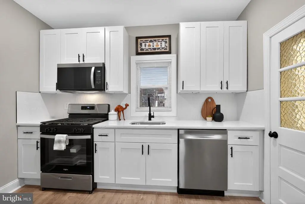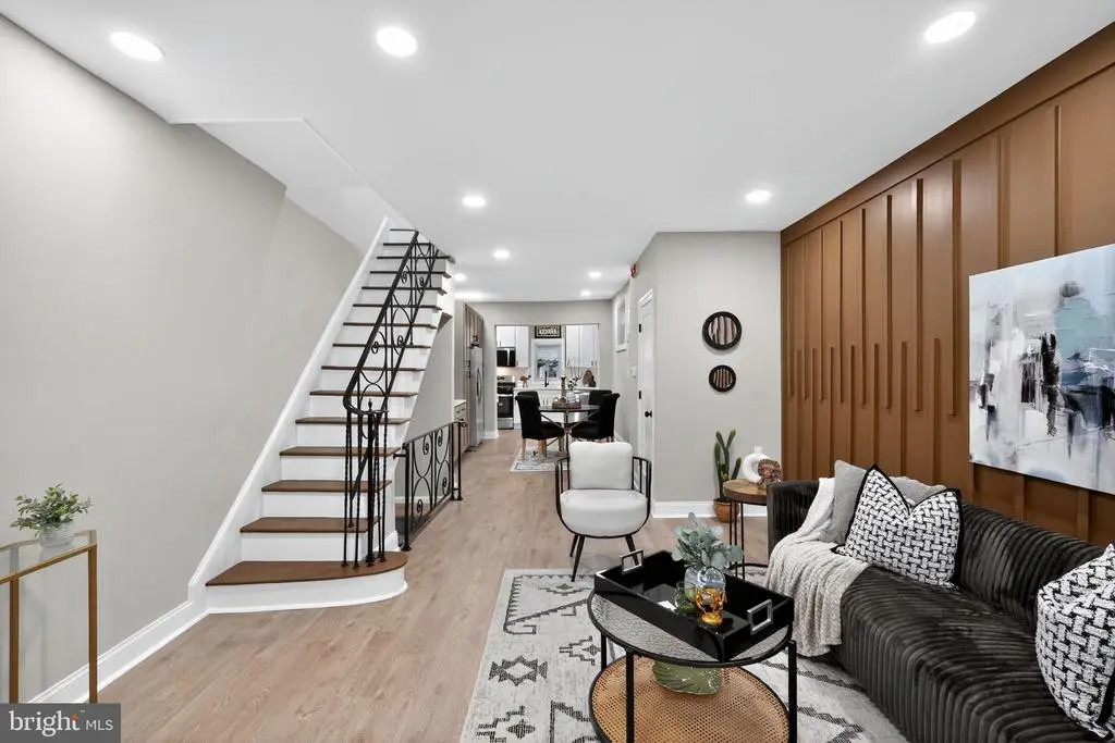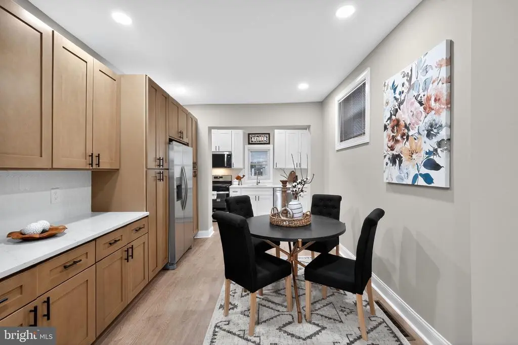 Welcome to 325 Rosemary Street in Philadelphia, 19148 — a beautifully updated three-bedroom, one-and-a-half-bath home offering nearly 1,000 square feet of modern living space. The main level features brand-new laminate wood flooring that flows through the living room, dining room, and kitchen. The fully renovated kitchen showcases a stylish mixed-cabinet design: one section features warm wood-tone shaker cabinets (both upper and lower), while another section is finished with clean white shaker cabinets (also upper and lower). Both sets are topped with granite countertops and complemented by stainless steel appliances and designer hardware. A newly remodeled half bathroom completes the first floor. Upstairs, the second level includes three comfortable bedrooms and a fully updated full bathroom with a new vanity, commode, ceramic tile flooring, and a ceramic tile shower surround. The home also includes brand-new central air conditioning for year-round comfort. Modern, thoughtfully updated, and move-in ready, this 990-square-foot home is a great opportunity in South Philadelphia.