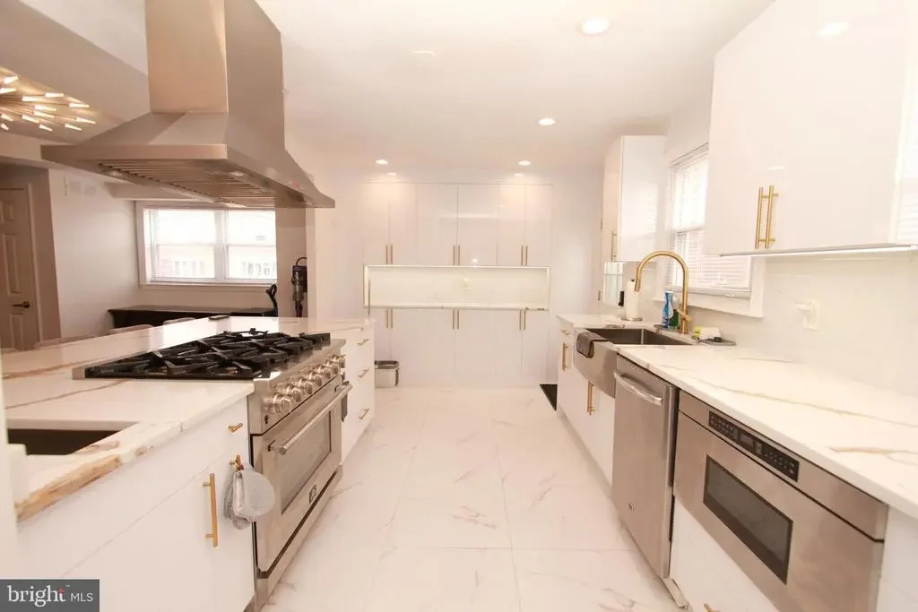 Welcome to 2738 Axe Factory Rd. This modernized corner twin home blends luxury, comfort and convenience. Featuring 3beds and 2 ½ bath. Living room features an open floor plan with updated hardwood flooring, custom built/designed picture frame wall with an undermount functional electric fireplace. The open floor plan flows seamlessly into the dining room section and into a spectacular gourmet kitchen island that can accommodate 5-6 seating. Updates in this kitchen include: Carrera design floor tiles; 36” stainless steel range with an over-the-top exhaust fan. Modernized kitchen cabinetry with Level 5 quartz countertop. For those who love cooking & spending time in the kitchen, this is what you’ve been waiting for. Newer appliances (dishwasher, refrigerator, etc.). No expenses spared in this kitchen upgrade. Other amenities in this property include: HVAC central Air/Heat; 75-Gallon hot water tank; recess lighting; ceiling fans throughout; updated carpeting in bedrooms. Second floor master bedroom features a double closet with a double glass French door leading you into the large master bath you’re going to fall in love with: jacuzzi, modernized tiled bath, wainscoting designed walls giving you that welcome home feel. Lower-level finished basement with built in bar, pellet stove, separate laundry room and walkout entrance to a double Two-car garage. Lower level provides walkout access to (larger than usual) rear yard featuring a custom brick barbecue grill, pergola, tiki bar and swing set for children. Located within walking distance to Winchester Park and Pennypack Park, this property combines suburban tranquility with city convenience – close to all major amenities and without the suburban traffic. Come and enjoy all that Northeast Philadelphia has to offer. Call to schedule your private showing today!!!!