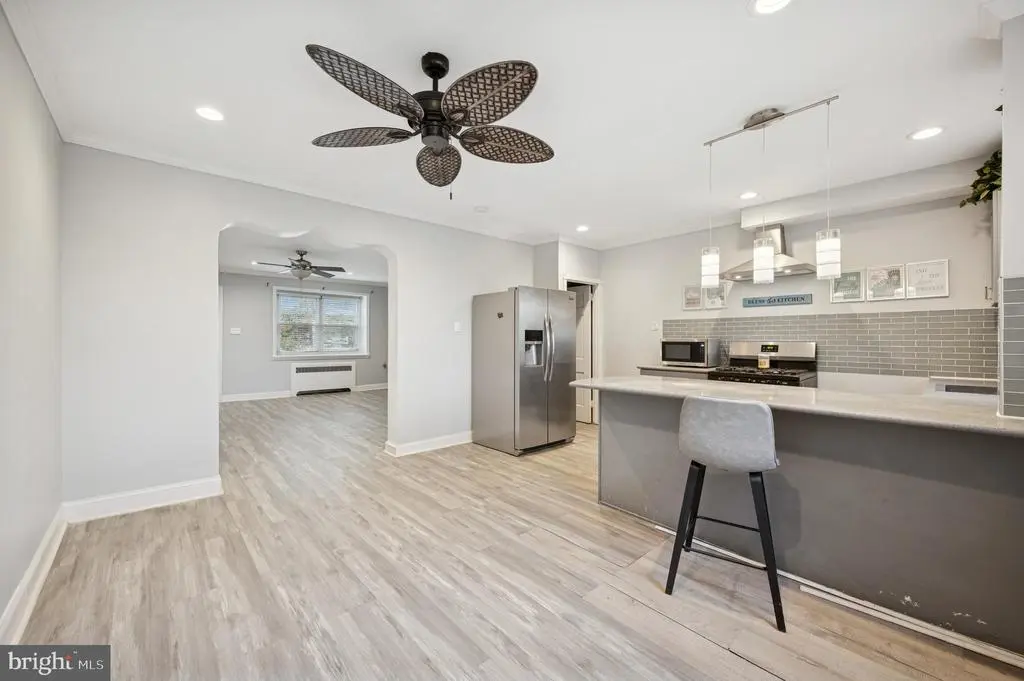 Just Start Packing and move into this home on the edge of LaSalle University. Enter the vestibule and through the glass paned door into the spacious living room with recessed lighting and ceiling fan. Wiring for a surround sound speaker system is already in place. There's a coat closet and cute nooks on either side of the entrance to the dining room. The dining room and kitchen are an open concept with space for both and natural light pouring through the windows. The updated kitchen has an island, stainless steel refrigerator, range/oven and exhaust hood along with recessed lights and stylish pendants hanging over the island. Upstairs you'll find 3 nice sized bedrooms with closets. The full bath has been updated and includes a linen closet. The full basement is partially finished and includes a half bath and washer/dryer hookups. The garage was turned into additional basement space. In the rear, there is room to park up to 4 cars if you use the yard space across from the back door that belongs to this lot. In addition to being a primary residence, this home would also be great as an income producing rental property with rents up to $2100. LaSalle is a 5 minute walk down the street so you can rent to students or the general public. Come take a look and see for yourself!