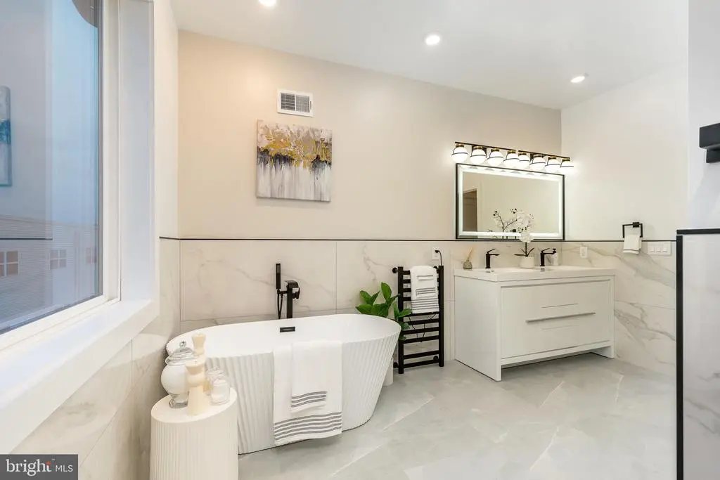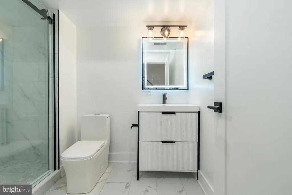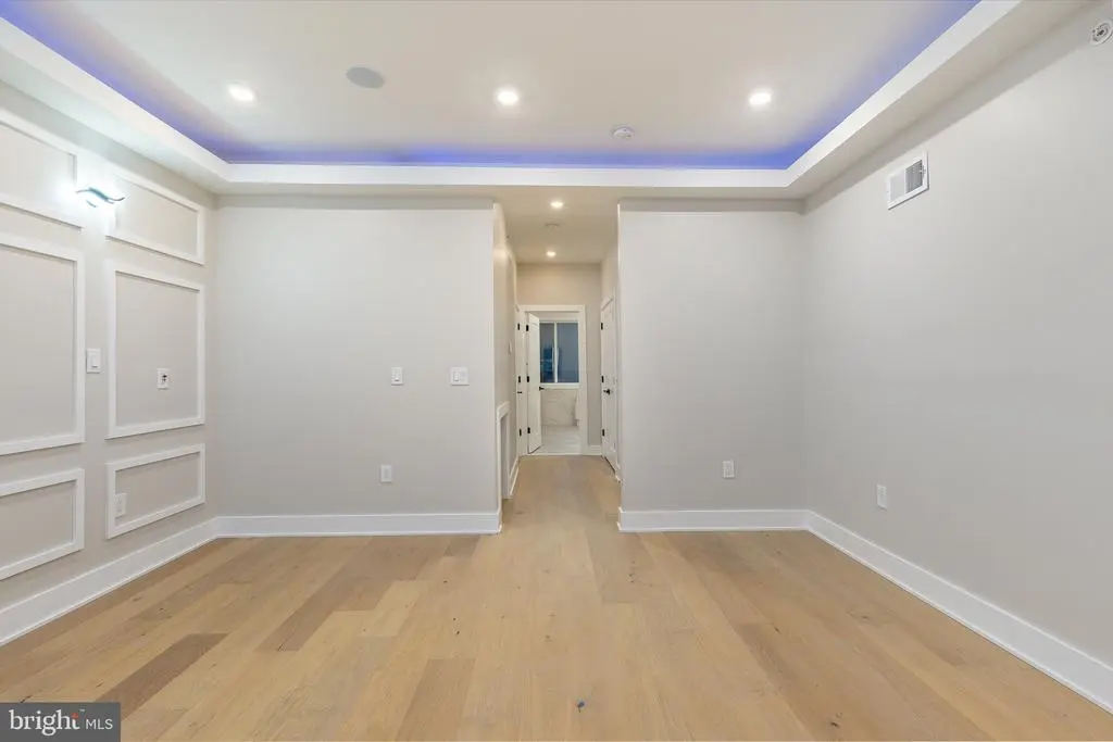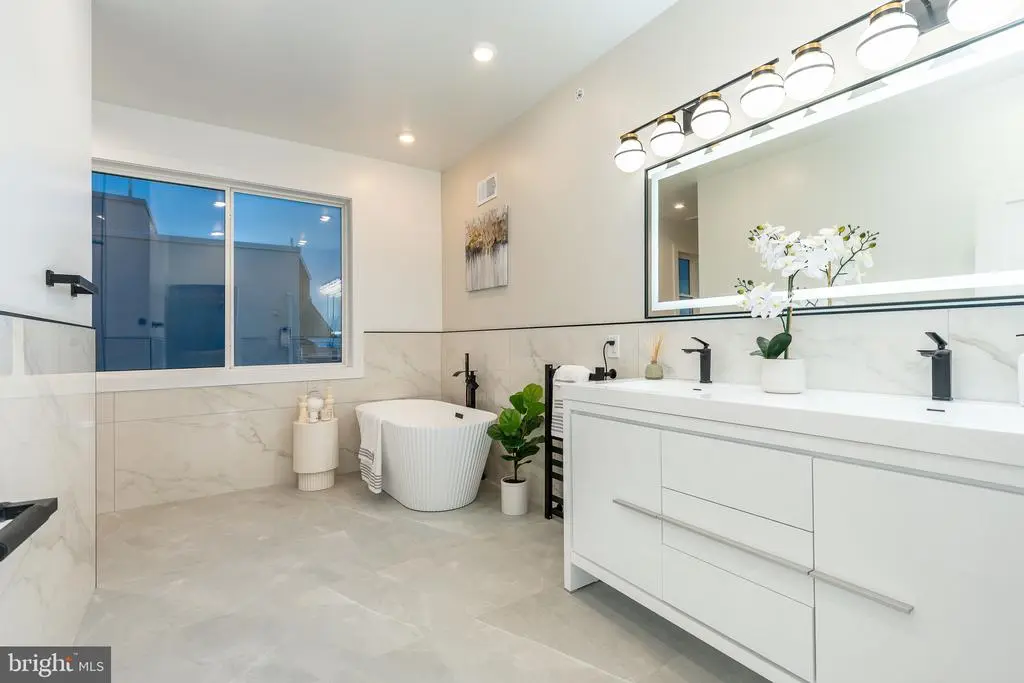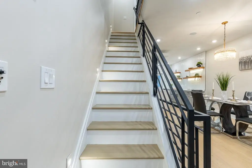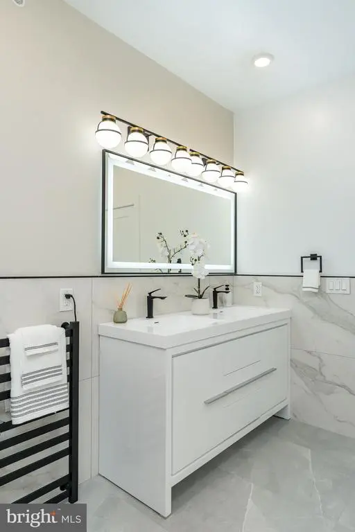This modern new construction comes with a 10 year tax abatement and 1 year builder's warranty. Welcome to your dream home in the heart of Dickinson Narrows! This stunning new construction residence offers 4 bedrooms, 3 full bathrooms, and a perfect blend of modern luxury and thoughtful design. Step inside to find an open-concept layout featuring beautiful hardwood floors, custom railings, and built-in speakers in both the living room and primary suite. The spacious living area also showcases an electric fireplace, creating the perfect ambiance for relaxing or entertaining. The chef’s kitchen is a showstopper — complete with a large island featuring a quartz waterfall countertop, built-in microwave, and wine cooler. Above the gas range you will find a pot filler, and an impressive tiled backsplash. The Samsung stainless steel appliances, abundant storage, elegant floating shelves, and two-tone shaker cabinetry make this kitchen both stylish and functional. From the kitchen, step out to your private backyard — an ideal space for grilling or enjoying quiet evenings outdoors. The finished basement offers incredible flexibility, featuring a full bedroom, full bathroom, and a bonus room perfect for a home office, gym, or playroom. Upstairs, the second floor includes two spacious bedrooms with generous closets and a beautifully designed bathroom with a walk-in shower and built-in bench. At the top of the third floor, you’ll find a convenient wet bar with a second wine cooler — perfect for entertaining or preparing drinks before heading up to the rooftop deck. The primary suite is a private retreat, offering a spacious bedroom with built-in speakers, dual closets, and a spa-inspired bathroom complete with a soaking tub, double vanity, and expansive walk-in shower. Enjoy panoramic views of the city and neighborhood from your roof deck, the perfect spot for relaxing or hosting gatherings. Additional features include a white brick exterior, security system with exterior cameras, and high-end finishes throughout. Located in desirable Dickinson Narrows, this home combines modern comfort, convenience, and timeless style — just minutes from neighborhood favorites, parks, and everything South Philadelphia has to offer.