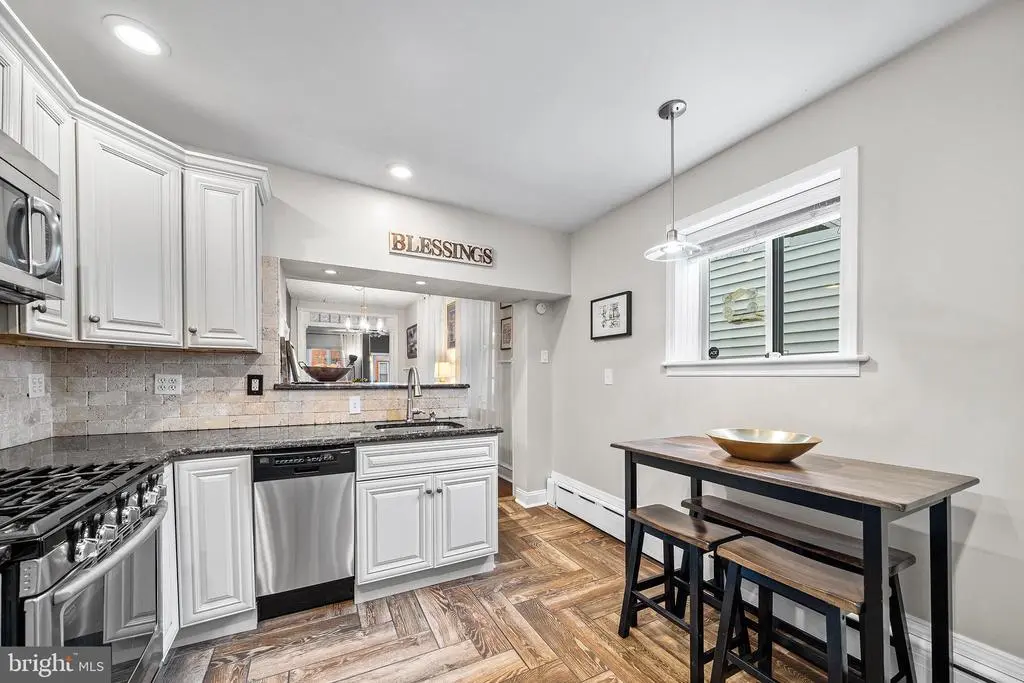 ***Open house canceled, offer accepted***Welcome to 3116 Chatham Street — a unique brick row home on a 15x95 lot that beautifully blends classic character with modern upgrades. Located in the heart of Port Richmond, this sunny abode offers 3 bedrooms, 1.5 baths, and an open layout perfect for everyday living. The inviting front porch, adorned with slate tiles, leads into a bright living room featuring a large bay window. The adjoining dining area includes custom millwork, a wall of windows, built-in shelving, and a cozy nook ideal for crafting cocktails or spinning records. Flowing off the dining room, the modern kitchen boasts stainless steel appliances, white shaker cabinets, granite countertops, and a peninsula for casual dining. A charming powder room is conveniently tucked away on the first floor. Step out from the kitchen to the expansive backyard — a gardener’s delight and the perfect space for nights around the firepit or weekend barbeques. Make your way up the staircase, with its distinctive retro metal railing, to the large landing leading in to the primary bedroom featuring a bay window and two closets. Down the hall are two additional bedrooms. The middle bedroom works beautifully as a home office, music studio, or nursery, while the third bedroom comfortably fits a queen-size bed and includes a custom desk nook. The hall bath is equipped with a tub/shower combo, beadboard paneling, and custom picture-frame cabinetry — a detail you’ll want to see in person. The well-kept unfinished basement has a laundry area, offers abundant storage, and includes a workshop space. Located in one of Port Richmond’s most walkable spots, you’re just steps from Gaul & Co., Ellie and Bird Coffee, Her Daughters Café, the Stokely Playground, Polka Deli, and much more. You won't want to miss this Port Richmond gem, schedule your visit today!