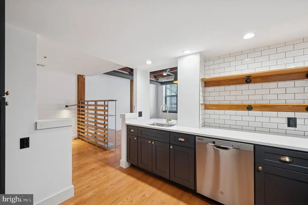 Enjoy city living in this stylish industrial loft space, located in a boutique condominium in the heart of Old City. At over 600 sq ft and with a smart footprint, this oversized studio has a layout perfect for a separated bedroom space and feels like a spacious one bedroom home. The loft features hardwood floors, 11 ft ceilings, exposed beams, a newly renovated kitchen, modern bathroom, and excellent storage. Oversized windows fill the living space with natural light, and the chef's kitchen showcases custom cabinetry and open shelving, tiled backsplash, gorgeous quartz counters, stainless steel appliances, and a convenient breakfast bar. A hallway with four full-sized double closets and washer/dryer, leads to the sleek full bath with glass-enclosed shower and custom built-in storage. The WireWorks is a pet-friendly condominium in a historically certified building, and offers secured entry, basement storage, and bicycle storage room. Perfectly located in Old City, this home is steps away from historic Philadelphia landmarks, the best of boutique shopping, art galleries, coffee shops, restaurants + more, and is convenient to major highways and public transit.