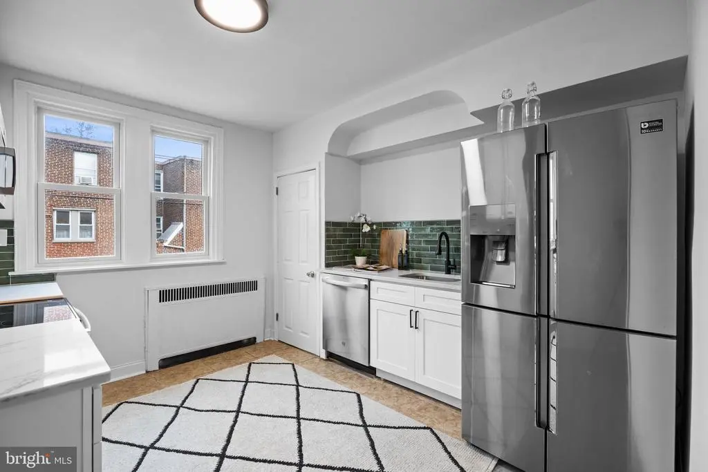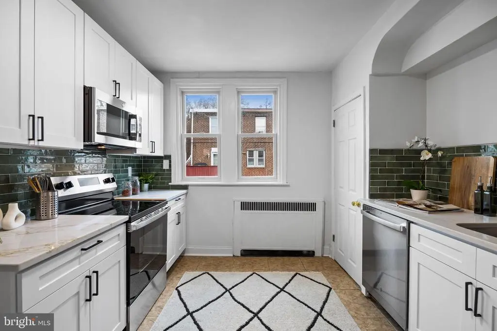 Introducing 7859 Michener Avenue! Situated on a charming block, this charming and recently updated rowhome impresses on every level. Enter to an open and spacious living room with restored wood banister and staircase, oversized bay window, and preserved vestibule. The main level flows seamlessly from living room, through dining room, and into modern kitchen at the back of the home. Upstairs are three spacious bedrooms and a charmingly preserved full bathroom. The home presents at a southwestern exposure which brings natural light into the front primary bedroom (and the entire main level via that bay window). In the basement, you'll find laundry, garage, and a partially finished den (which the previous owner used for a pool table). Fenced back patio for parking. Convenient and accessible. Schedule your private showing today!