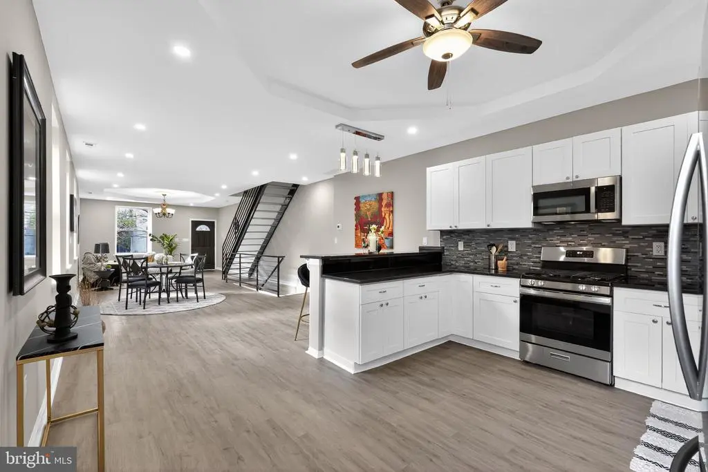 Welcome to 5335 Wakefield Street, a stunning fully renovated detached home in the heart of Germantown offering incredible space, modern finishes, and thoughtful design throughout. This impressive three-story, five-bedroom, three-and-a-half-bath property delivers nearly every feature today’s buyers look for, including a fully finished basement, and a large fenced backyard. Step inside to an open main level wrapped in brand-new laminate wood flooring that flows seamlessly through the living room, dining room, and gorgeous chef-style kitchen. The custom floating-tread staircase with open risers becomes an architectural centerpiece, bringing a contemporary, airy feel to the entire home. The kitchen is all-new with sleek white shaker cabinets, rich dark granite countertops, and stainless steel appliances. A convenient half bathroom is located on the main level, perfectly placed just off the kitchen. The second floor features three spacious bedrooms, including a true primary suite complete with its own fully renovated full bathroom. An additional large hallway bathroom—also fully remodeled—serves the other bedrooms on this level. Continue to the third floor to find two more generous bedrooms and yet another beautifully updated full bathroom, giving the home a total of three full bathrooms across the upper levels. The fully finished basement expands the living space even further with brand-new flooring, a separate laundry room, and endless possibilities for a media room, home gym, office, or playroom. Outside, enjoy a large private backyard surrounded by a brand-new fence, ideal for relaxing, entertaining, or pets. The home also features new HVAC with central air, offering year-round comfort and peace of mind. With its unique architectural touches, modern finishes, and rare amount of space, 5335 Wakefield Street is a special opportunity in Germantown. Schedule your showing today to experience this exceptional home in person.