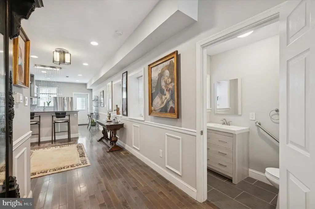 Beautifully renovated South Philadelphia townhouse featuring 3 bedrooms, 1.5 baths, and modern upgrades throughout. Bright living room with great natural light, open eat-in kitchen with granite countertops, custom cabinets, and a spacious center island. Rear door leads to a private enclosed patio perfect for BBQs and entertaining. Second floor offers three bedrooms with ample closet space and a modern tiled hall bath with a large rainfall shower. Spacious primary bedroom with tons of natural light. Finished basement provides additional living space including a small reading room/study, enclosed washer/dryer which showcases custom-painted doors by local street artist Shane Angelo Jones. Renovations in 2018 were; new electrical, plumbing, heating, kitchen, and baths. Hardwood floors throughout. New Front and rear, full view glass storm doors. Located just a few blocks from Two Eagles Cafe, and Nick's Roast Beef. Easy access to Broad Street and Washington Avenue provides convenient public transit options. The walkable neighborhood puts shops, cafes, and dining just steps from your door.