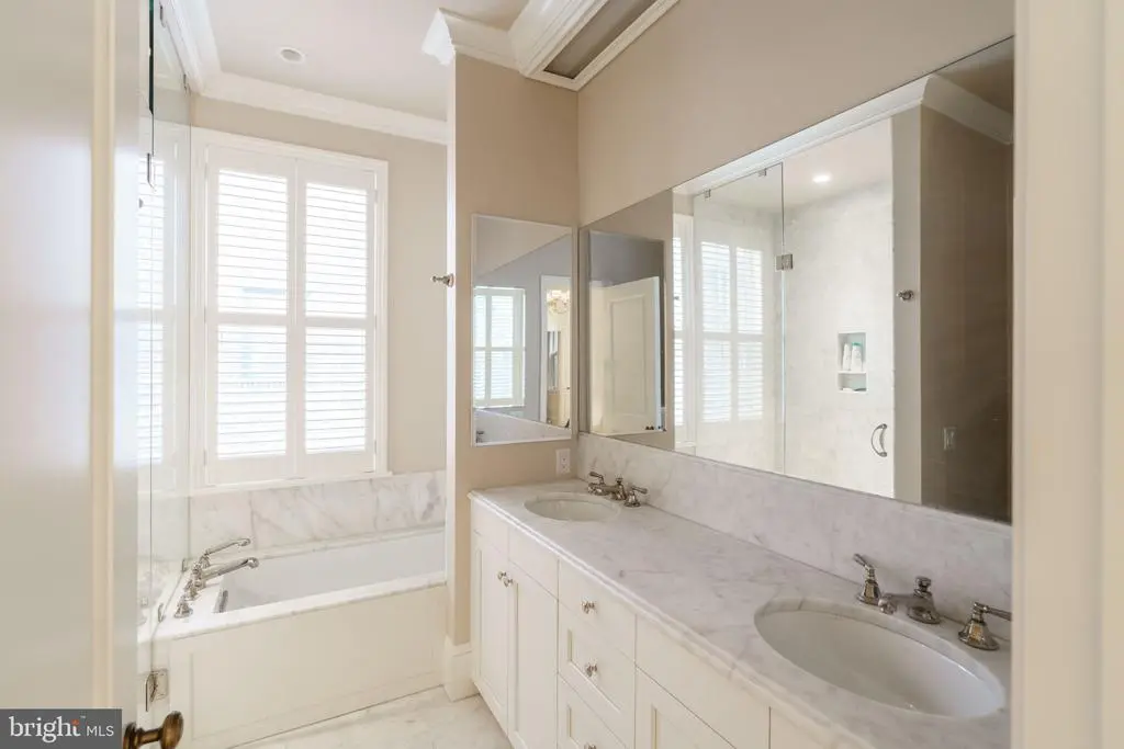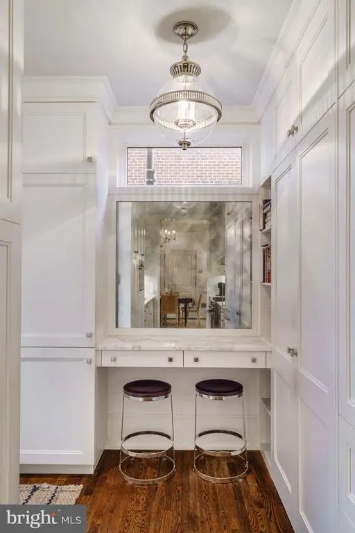 Historic, stately home built in 1860 and situated on one of Philadelphia’s most prestigious blocks, 1831 Delancey is the epitome of townhome living. Completely renovated 10 years ago, this impressive property boasts beautifully restored architectural details alongside modern updates, all while maintaining the integrity of the original design. With five bedrooms and five and a half bathrooms, an elevator, secure carport, finished basement and large roof deck, this home is as functional as it is beautiful. Enter through the oversized, hand restored original front door through a marble vestibule into the welcoming entry hall. An oversized living room, with windows looking onto Delancey Street and a gas fireplace with marble surround, is ideal for entertaining. The formal dining room can accommodate a table for twelve, offers a china closet, wall of glass doors out to the garden, and leads into the chef’s kitchen through a set of pocket doors that can remain open or be closed for privacy. The kitchen is a culinary masterpiece, outfitted with professional-grade appliances including a Wolf six-burner gas range and convection oven, Sharp microwave drawer, Sub-Zero paneled refrigerator, Miele dishwasher, and wine refrigerator. Sleek marble surfaces and backsplashes extend throughout the space. The ample cabinet and pantry space is well thought out for maximum efficiency. A curved staircase with original mahogany banister and mother of pearl “mortgage button,” as well as a five stop Savaria elevator, connects the levels of this house. The second level offers a powder room, luxurious guest bedroom suite and wood paneled family room or home office with wet bar and restored wall of bookcases original to the home. There is another gas fireplace in this room. The luxurious primary suite is a serene retreat with incredible natural light, multiple wall closets including a cedar closet, a walk-in closet/dressing room, built-ins with a hidden mini fridge and microwave and the home’s third gas fireplace. The ensuite bathroom is appointed in marble with a double vanity and walk-in shower with six rain heads and handheld options. There are three additional generously sized bedrooms, one with an ensuite bathroom and the other two with a shared jack-n-jill bath. All the closets are fitted out by California Closets and all bathrooms are appointed in marble. A 420 square foot Trek deck with lighting and storage completes the top level. The finished lower level is complete with two entertaining or gym spaces, a kitchenette, full bathroom, storage/mechanical room and low storage space that runs half the length of the house. There are stunning hardwood floors adding warmth and sophistication throughout the home. Additional highlights include magnificent moldings, archways and millwork; 4th floor custom observatory skylight, washing many of the levels with natural light; a laundry closet with Electrolux washer and dryer; three zone HVAC; thoughtfully integrated storage solutions; and a carport with automatic door, shed and direct access into mud room. Located in the desirable Rittenhouse Square neighborhood in walking distance to University City and the Market Street office corridor. Steps to Rittenhouse Square restaurants, retail and Philadelphia's theaters and cultural institutions.
