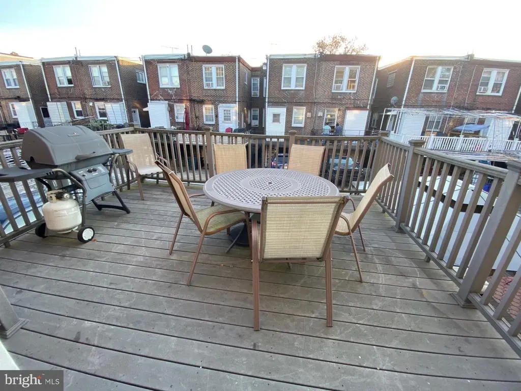 A must-see charming 3-bedroom row Mayfair beauty in a desirable location on a tree-lined street. You will walk thru the Vestibule entrance to a large living room with a bow window, that leads you into the dining room with a modern eat in kitchen. Kitchen has wood cabinets, custom Formica countertops, ceramic tile floor, recessed lighting, and an acoustic tile ceiling. Off of the kitchen is also sliding doors that you can exit to a Trex deck that is 16x13 Second floor semi-modern 4-piece bathroom with ceramic tile, splash wall with ceramic floor, and staul shower. 3 spacious bedrooms with ample closet space, full unfinished basement with toilet in basement laundry room with glass block basement windows. Single wash tub in laundry room with washer and dryer. All exterior wood work maintenance free. Vinyl replacement windows throughout. Cement driveway