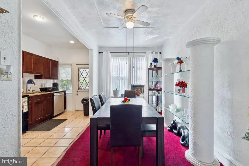 Sun-filled Kingsessing Victorian-style rowhome with open front exposure, covered porch, and flexible lower level. Set in a peaceful residential setting, this move-in-ready 3-bedroom, 1.5-bath home offers a comfortable, practical layout for everyday living. The open front exposure brings in excellent natural light and a more spacious streetscape feel, while the covered front porch functions as an outdoor living room—perfect for morning coffee, evening unwinding, or seasonal décor. Inside, the main level flows naturally from a generous living room into a dedicated dining room, creating an easy setting for weeknight dinners and weekend gatherings. The upgraded kitchen features soft-close cabinetry, modern appliances, and electric cooking, giving you a functional workspace for everyday meals and larger entertaining. Upstairs, three well-sized bedrooms and a full bath with glass shower enclosure and skylight provide a bright, comfortable retreat. The layout offers practical bedroom spacing and privacy across the upper level, ideal for separating sleep, work, and relaxation zones. The full basement adds valuable versatility with an existing bathroom, laundry area, ample storage, and direct walkout access to the backyard—well positioned for future expansion into a family room, guest space, home office, or workshop. Outside, the finished concrete backyard delivers low-maintenance outdoor living, with room for grilling, container gardening, pets, or a simple lounge setup. This Kingsessing location offers excellent neighborhood convenience with easy access to Bartram’s Garden, Cobbs Creek Park, Kingsessing Recreation Center, local shops and restaurants, SEPTA trolley and bus lines, University City, Center City, and major commuter routes. Showings available—schedule your tour today. Select photos, including exterior images, have been digitally enhanced or virtually staged for marketing purposes.