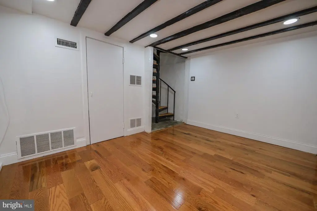 Welcome to 617 S 7th Street, Unit C — a beautifully renovated bi-level townhome tucked away in the heart of Bella Vista, just steps from the vibrant South Street corridor. A private brick-paved walkway leads you to your own entrance, setting the tone for the charm and privacy this home offers. Inside, you’ll find warm hardwood floors, recessed lighting, and a thoughtfully updated interior throughout. The spacious eat-in kitchen features crisp white cabinetry, generous storage, stainless steel appliances, granite countertops, and a modern subway-tile backsplash. A stacked washer and dryer are conveniently located on this level. A striking spiral staircase brings you to the second level, where you’ll find the first bedroom and a beautifully updated full bath. The bathroom showcases a sleek sliding-glass shower, quartz-top vanity with storage, and fresh white tile work for a clean, modern feel. The third floor offers a bright and airy second bedroom with vaulted ceilings and its own private half bath — an ideal layout for guests, roommates, or a dedicated work space. The fully finished lower level is a standout feature of this home, offering additional living space with hardwood flooring, recessed lighting, a brick accent wall, and exposed wood beams for added character — perfect for a media room, home office, gym, or lounge. Located in one of Philadelphia’s most desirable neighborhoods, this home places you moments from beloved cafés, restaurants, parks, boutiques, and convenient transit options. A rare blend of charm, updates, and location, this is city living at its best. Schedule your private showing today!