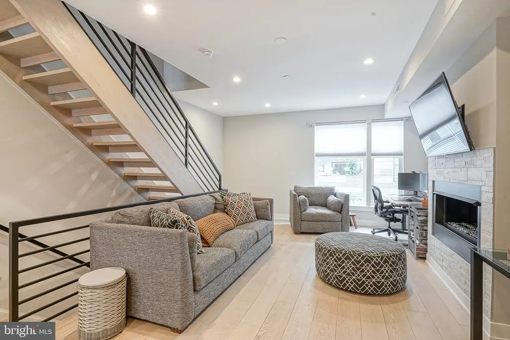 ** Ask for link to VIDEO TOUR ** Location. Lifestyle. Luxury. Perfectly positioned right by Fishtown, this stunning contemporary townhome offers the ultimate blend of urban sophistication and convenience. Nestled within a rare and exclusive, gated community called Blair Gardens. This exquisite residence offers approximately 4 years of remaining of full tax abatement, garage parking (EV charging available), two outdoor spaces, and access to a well designed common area. Experience unparalleled walkability to Fishtown’s vibrant nightlife, acclaimed restaurants, cozy cafés, lush parks, and eclectic boutiques. Commuting is effortless with quick access to I-95 North & South, New Jersey bridges, Philadelphia International Airport, and the Market–Frankford Blue Line connecting you to Old City, Center City, University City, and beyond. This home is equipped with hard wired CAT6 for internet, security system with cameras (interior and exterior), integrated home speaker system on multiple levels, newer roof with 30 year warranty, etc. Sunlight floods the interior through oversized windows, accentuating the 9-foot ceilings, rich hardwood flooring, and custom designer finishes throughout. The entry level features a versatile bedroom or home office, a stylish full bath, and convenient garage access. The oversized garage offers sizable storage space. A finished lower level features home theater, with incredible surround sound. This additional space ideal for a media room, gym, or play area. Upstairs, the open-concept main living level is an entertainer’s dream. The chef’s kitchen is appointed with an island, subway tile backsplash, generous storage space and premium appliances. The sliding glass doors invite desirable fresh air into your living space. Step onto your private deck for morning coffee, weekend grilling, or intimate outdoor dining. The living room centers around a striking stone-accented gas fireplace, creating the perfect balance of warmth and style. Retreat to your primary suite, a serene sanctuary boasting oversized windows, custom built-ins for storage and a beautiful en-suite bath. A convenient hallway laundry area and a guest suite with a private bath complete the upper level. Entertain effortlessly on your rooftop deck, where city skyline views set the backdrop for evening cocktails or weekend gatherings. The spacious layout accommodates both lounging and dining with ease. Residents also enjoy access to the landscaped outdoor common area, ideal for casual get-togethers and friendly neighborhood connections. Do not miss out on this rare opportunity.
