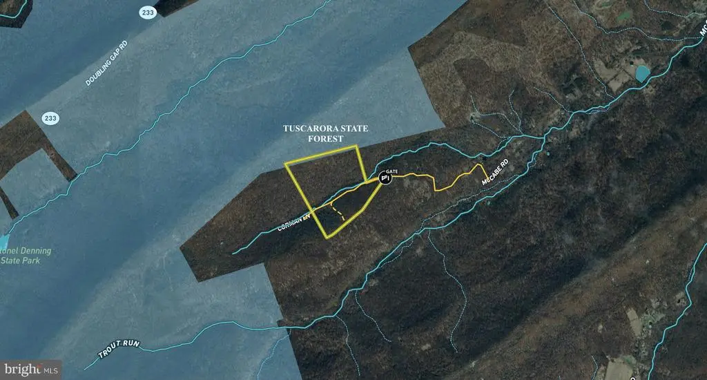 Discover 100 acres of pure serenity and outdoor adventure. This property, bordering the Tuscarora State Forest (52,000+ Acres), offers a peaceful escape with the McCabe Run Stream flowing through its center. It's a haven for outdoor enthusiasts, with impressive whitetail deer sightings and successful harvests. Whether you're seeking the perfect hunting or recreational retreat, a site for your dream home or cabin, or a solid investment opportunity, this property offers endless possibilities with extreme privacy and seclusion. Recent timber estimates the timber value at approximately $750/acre, roughly $75,000 back in your pocket if you choose to cut it! Trees have been marked already for future harvesting—timber rights do convey with the sale as do oil, gas and mineral rights. The seller will need at least 45 days to close to finalize the subdivision from the larger 200+ acre tract but the surveyor is standing by ready! Flexible acreage adjustments are available to meet your specific needs if you desire more than 100 acres, seller possibly willing to sell up to 125 acres. The property has mostly slightly sloped and flat, with very little steep slope areas. There is plenty of forest level browse from green brier to maple saplings along the property great for holding whitetails. Small pockets of open areas would allow great opportunity to make some improvements such as food plots or TSI (timber stand improvements) to really ramp up the hunting on site. New owner will share the road with the seller and one other land owner who visits very frequently, thus having a great amount of privacy to yourself with one way in and a secured gate. Conveniently, power is located at the gated entrance, ensuring easy access to utilities. Property does carry a McCabe address, however, is access through a private drive off Cornman Lane. Interested parties need to be accompanied by a licensed realtor to see the property. Don’t miss this exceptional opportunity to own a piece of nature's finest!