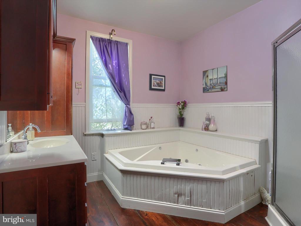 Bathroom - Jetted Tub, Stall Shower, CeilngFan(s), Upgraded Countertops, Wood Floors