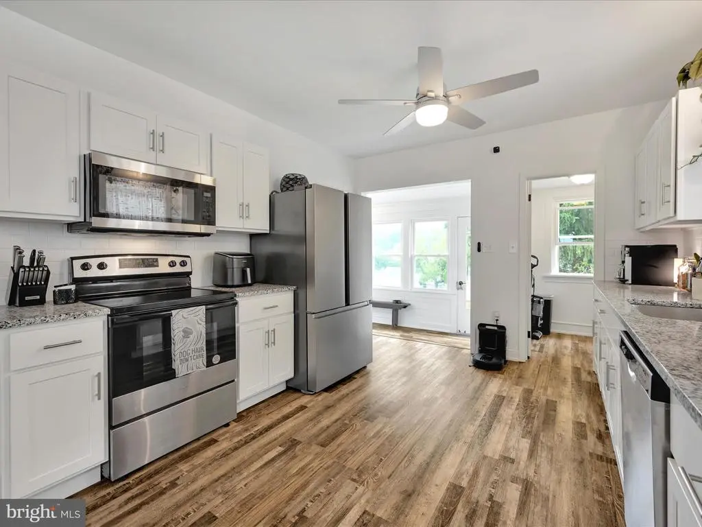 WELCOME HOME!! Inviting and Charming Craftsman Style Cape Cod. It's deceivingly LARGE inside with 4 bedrooms 2.5 baths and has SO MUCH to offer. This beautiful home has been completely remodeled in 2024. All new windows, completely new kitchen and completely new full baths. There is so much space -- Main floor offers open concept Living Room, Dining Room, Kitchen with walk in pantry, a sunroom, bedroom and full bathroom. 2nd floor offers Primary Bedroom with MASSIVE Walk-in Closet and full bath plus 2 additional bedrooms. There is even ADDITIONAL storage areas in the walk-in closet. Outside features a gorgeous RELAXING front porch, nice sized yard and a detached garage with an additional space above the garage for a WORKSHOP or whatever your hobbies include! Garage & Workshop have electric, and garage has a charging port for electric car! Come see what all this home has to offer!
