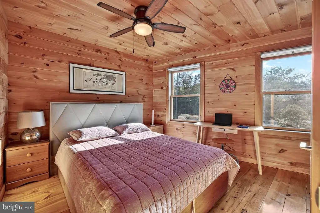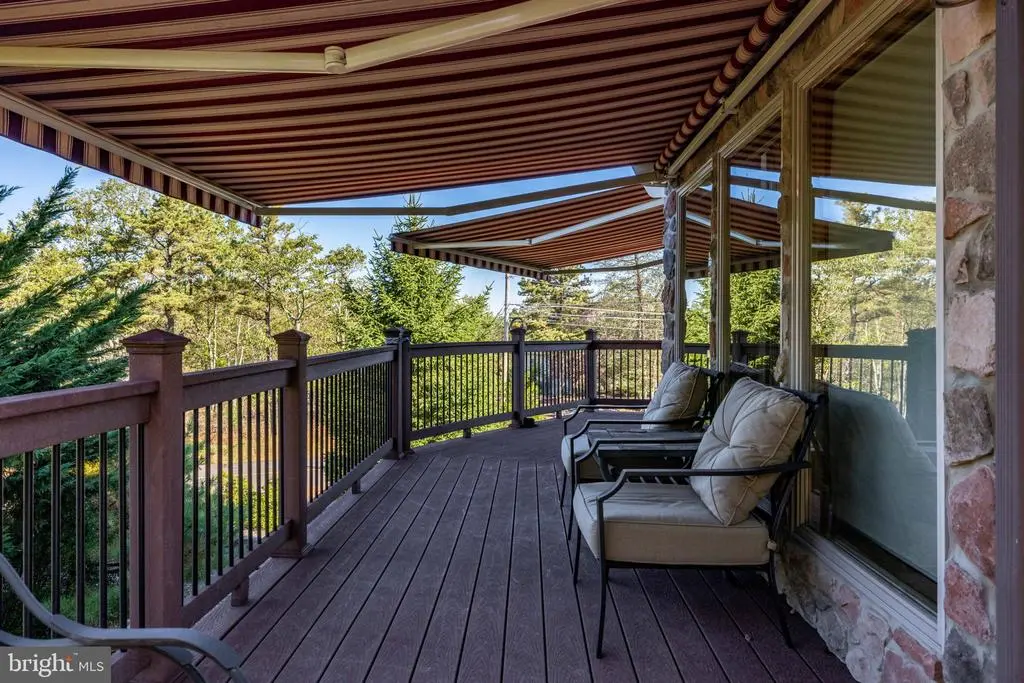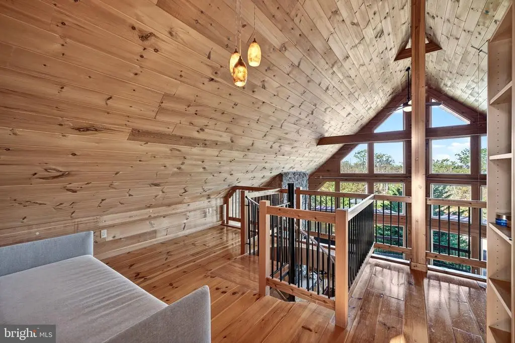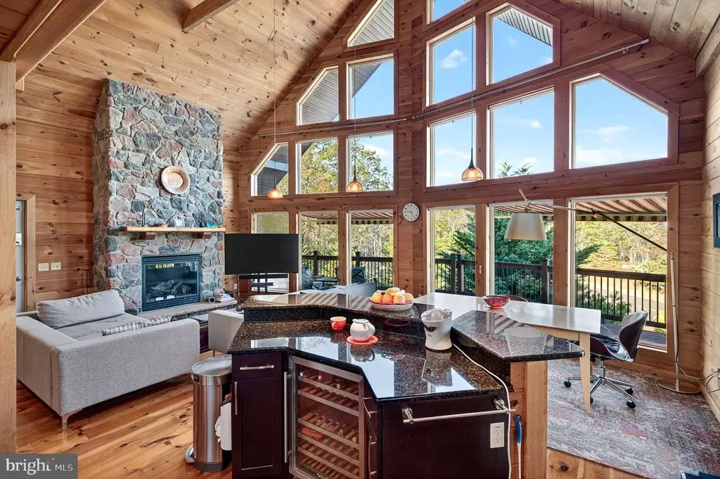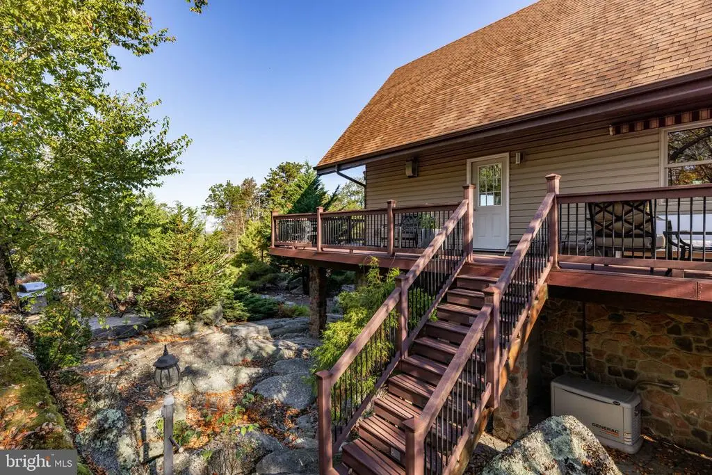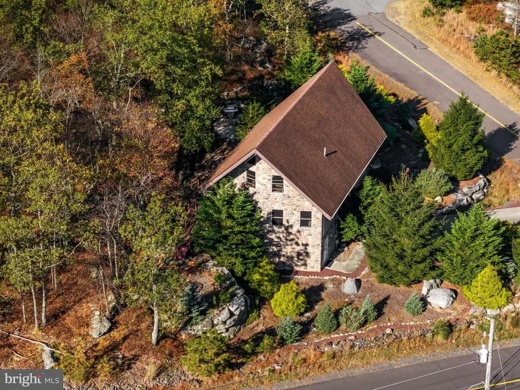 Escape to Eagle Rock Resort to a world of rustic luxury in this breathtaking chalet, where every detail invites relaxation and connection with nature. Enjoy your .91 acres of land. The moment you step inside, you'll be captivated by the soaring, vaulted ceilings and a stunning wall of windows that flood the space with natural light. The warm pine tongue and groove walls flows througout the home, creating a cohesive and inviting atmosphere. The open concept living area, and majestic stone fireplace, is the perfect backdrop for cozy gatherings and memorable moments. This home is designed for comfort and privacy. A sculptural spiral staircase with sleek metal railings and warm wood treads elegantly connects the main floor to the upper loft, where a primary bedroom with a full ensuite bathroom awaits. Two additional bedrooms and another full bathroom on the main level provide ample space for the family or guests. The gourmet kitchen, complete with modern appliances and a large breakfast bar, is an entertainer's dream. Imagine sipping your morning coffee on the expansive wrap-around deck, where three electric awnings provide shade at the touch of a button. For those who work from home or desire a quiet retreat, the finished lower level provides a versatile and private space. Bathed in the same beautiful wood as the main level, it's the perfect dedicated home office but could also serve as a cozy den or recreation room. Venture outside to find your personal sanctuary. A private, stone-walled patio awaits below, complete with an area for a barbecue grill and plenty of room for al fresco dining. Just steps away, a secluded hot tub is nestled among natural rock formations, offering the ultimate spot to unwind under the stars. This home has a whole-home generator and central air conditioning ensure comfort no matter the season. This chalet isn't just a place to live; it's a lifestyle, offering a peaceful sanctuary with all the modern comforts. Beyond the home, a world of amenities awaits. This property is nestled within a community that offers a truly exceptional lifestyle. 24/7 security where all guests must check-in. Enjoy year-round recreation with two golf courses - an 18-hole Arnold Palmer designed course and a 9-hole Executive course. Take a dip in one of the three outdoor pools or head to the Aquatic Center, which features three additional pools and a hot tub. The community lake is perfect for fun with a sandy beach, barbecue, picnic areas, and paddle boats. For snow lovers, winter brings the thrill of snow tubing and skiing. The Equestrian Center offers horseback riding and boarding, and you can stay active on the tennis, pickleball, volleyball, bocce, and cornhole courts. After a day of activity, relax at the on-site clubhouse restaurant and bar or unwind at the full-service spa with a gym and sauna. A vibrant calendar of social events is held throughout the year, ensuring there's always something to do. All measurments are estimates.