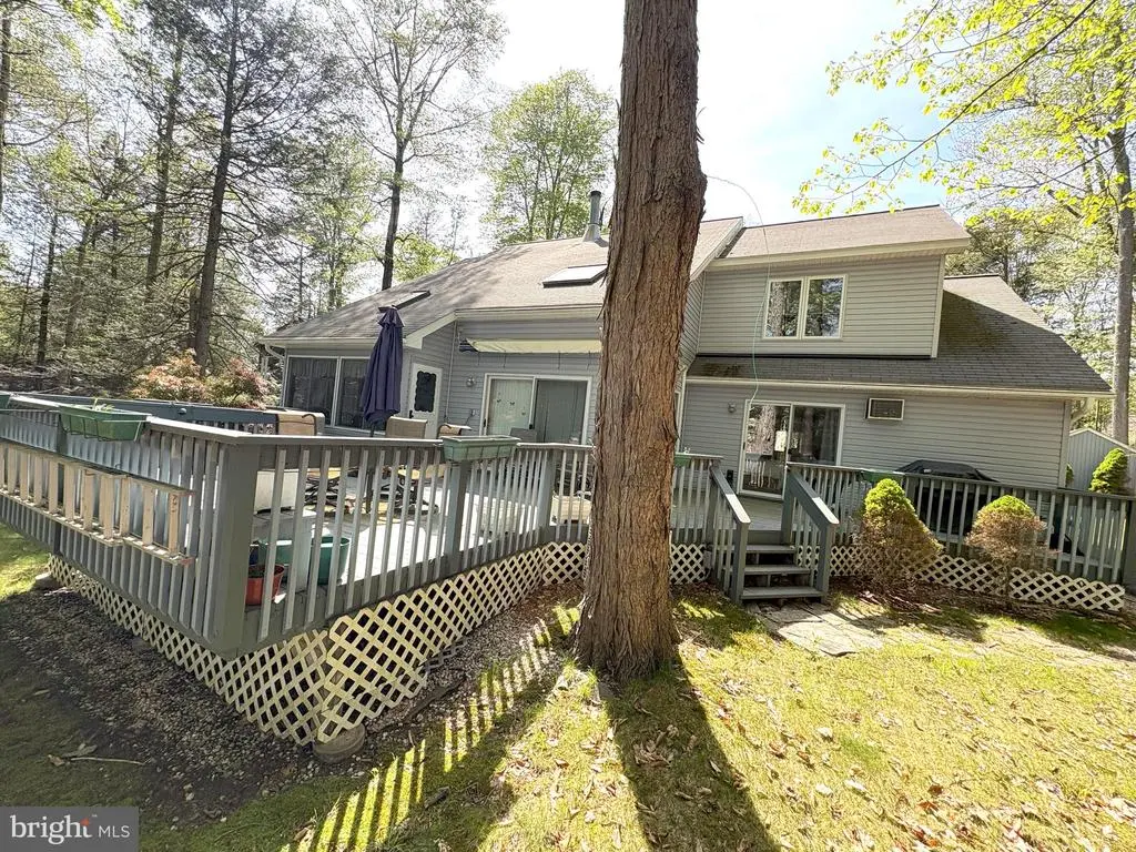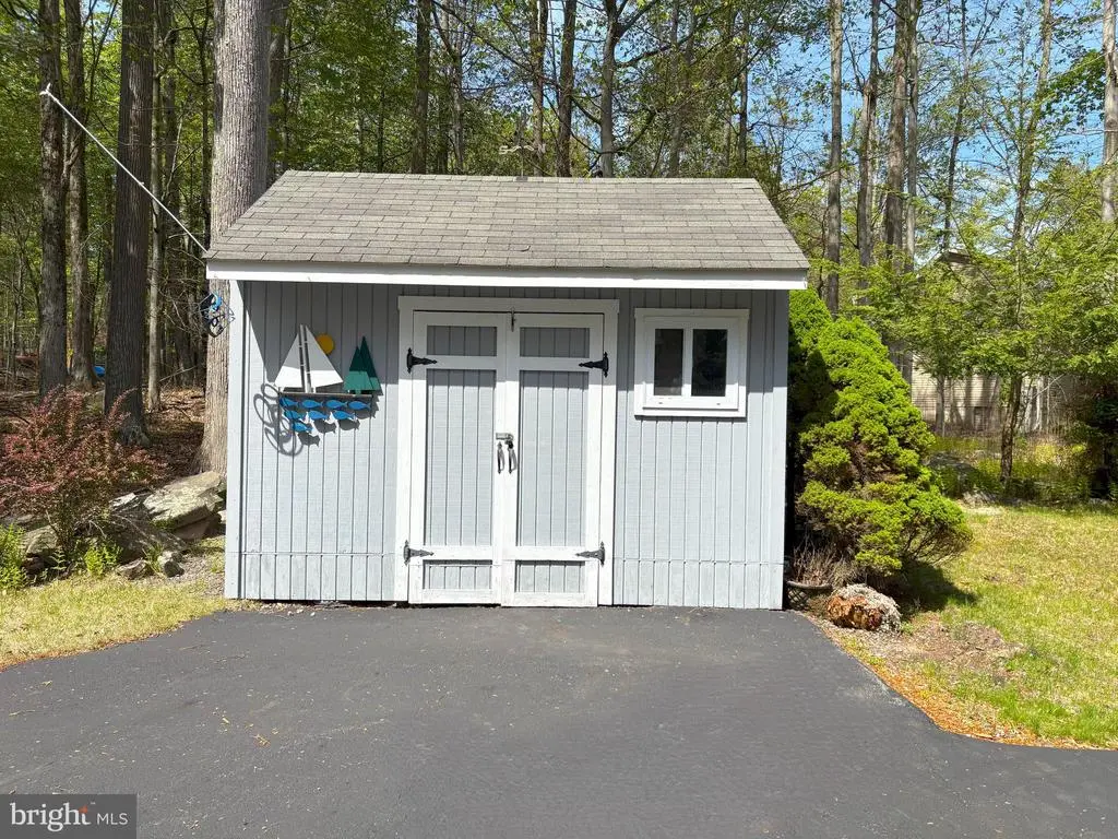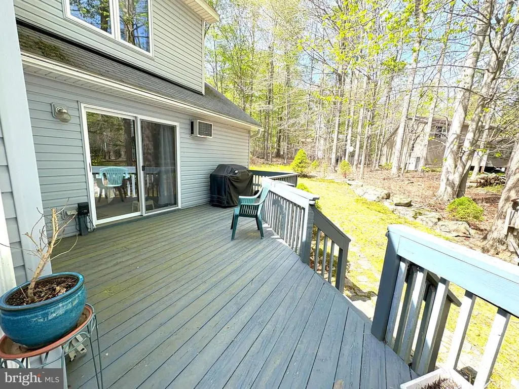 Offering both comfort and elegance, this residence sits on .51 acres, providing ample space for outdoor enjoyment. The property features a spacious paved driveway leading up to an attached garage, ensuring convenience and storage options. Inside, gleaming hardwood floors create a warm and inviting ambiance, complemented by a beautiful double-sided propane fireplace, adding charm to multiple living areas. The primary bedroom, conveniently located on the main floor, boasts an en-suite bathroom. Enjoy the changing seasons year-round in the bright four-seasons room, which seamlessly flows onto an expansive deck with a retractable awning, ideal for entertaining or unwinding outdoors. The home also includes a versatile loft and three additional bedrooms, offering ample space for family, guests, or a home office. Outside is a separate shed that provides extra storage for tools and equipment, making this property as practical as it is picturesque. Located at the quiet end of a cul-de-sac, it offers both privacy and serenity. Enjoy all the amenities the Wallenpaupack Lake Estates community has to offer. You have privileges to access 2 private lakes, beaches, 2 outdoor pools, an indoor pool & gym, dog park, lodges & game room as well as access to the private community marina on the big lake, Lake Wallenpaupack! The community dues cover the water, sewer and trash bills too! You’re not just buying a house; you’re treating yourself to a resort-like lifestyle!