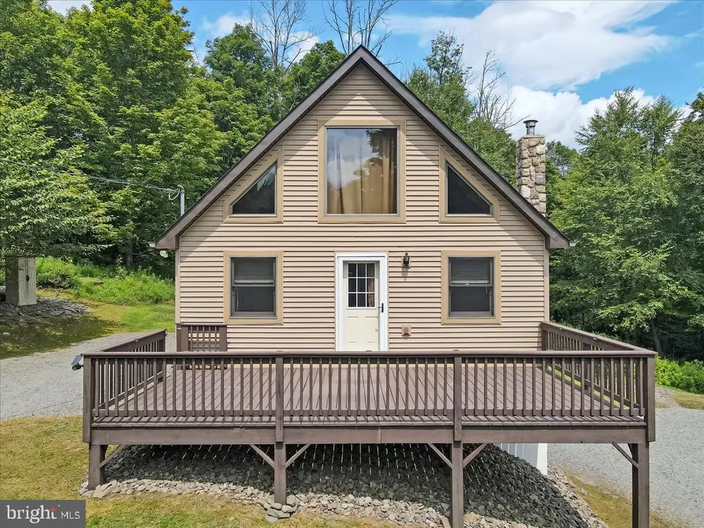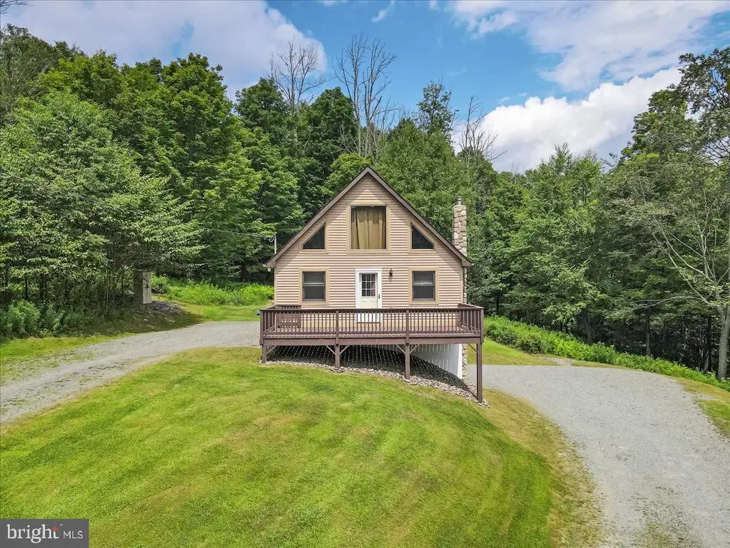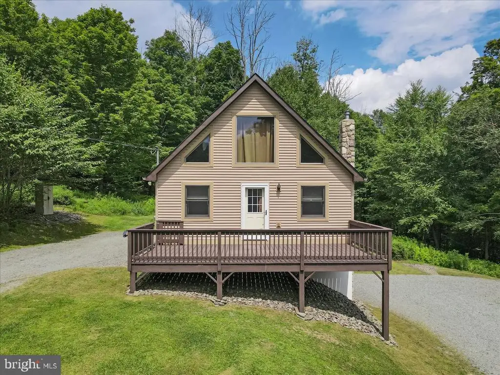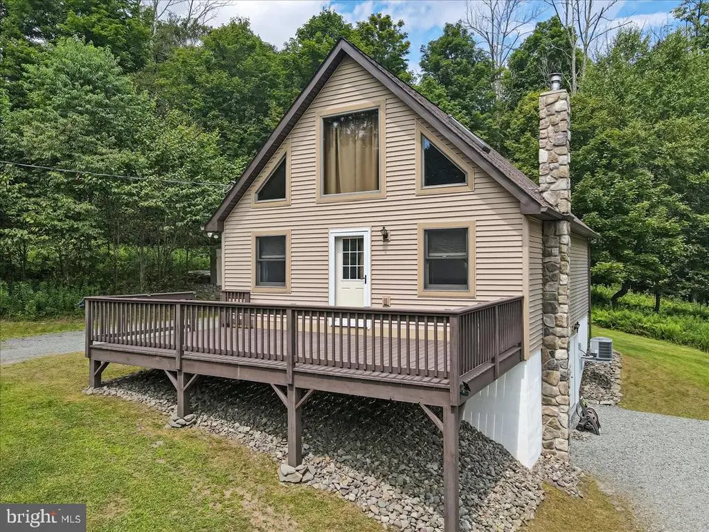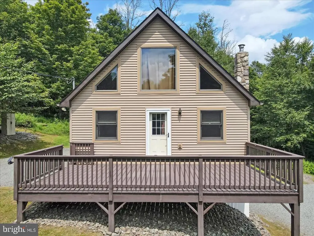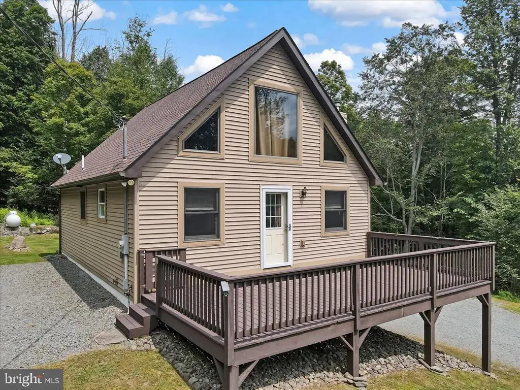 Discover the perfect mountain escape at 193 Highland Trail, a beautifully designed A-frame Chalet tucked into nearly 3 pristine acres of private woodland in sought-after Pleasant Mount. With its striking architectural lines, dramatic vaulted ceilings, and thoughtfully curated interiors, this 2-bedroom, 1-bath retreat offers the ideal balance of rustic elegance and modern convenience. Step inside to an open, airy great room featuring floor-to-ceiling windows that frame tranquil views of the forest and flood the space with natural light. The flowing floor plan connects seamlessly to a charming dining area and a well-equipped kitchen with ample prep space, and a welcoming layout perfect for entertaining or quiet nights in. The main level features two inviting bedrooms and a stylish full bath, providing comfort and convenience all on one floor. A versatile loft space upstairs serves as a third sleeping area, creative studio, or cozy lounge—ideal for guests or a private work-from-home hideaway. The home is being offered almost fully furnished, allowing you to enjoy an effortless move-in or begin hosting immediately if used as a short-term rental or seasonal retreat. Step outside onto the sprawling wraparound deck, where outdoor living becomes effortless—morning coffee, afternoon reading, or evening cocktails are all framed by serene nature views. For those craving adventure, the property includes a 12-ft Lowe Jon boat with oars and a kayak, ready for nearby lakes and ponds. The unfinished lower level offers incredible storage flexibility with wide double doors—ideal for storing large equipment like an ATV, snowmobile, or riding mower. This unfinished space also houses a backup wood-burning furnace capable of heating the entire home, and offers plenty of potential for a workshop, gear room, or future expansion. Perfectly positioned just minutes from Elk Mountain, ATV and snowmobile trails, state lakes, and over 9,000 acres of state game lands, this location is a haven for outdoor enthusiasts. The private community also features a secluded mountain pond—ideal for peaceful reflection or casting a line. With fiber optic internet available, and tasteful design throughout, this luxurious yet laid-back chalet offers the lifestyle you've been dreaming of. Whether you’re looking for a stylish mountain home, a weekend retreat, or a savvy investment, 193 Highland Trail is an exceptional find.