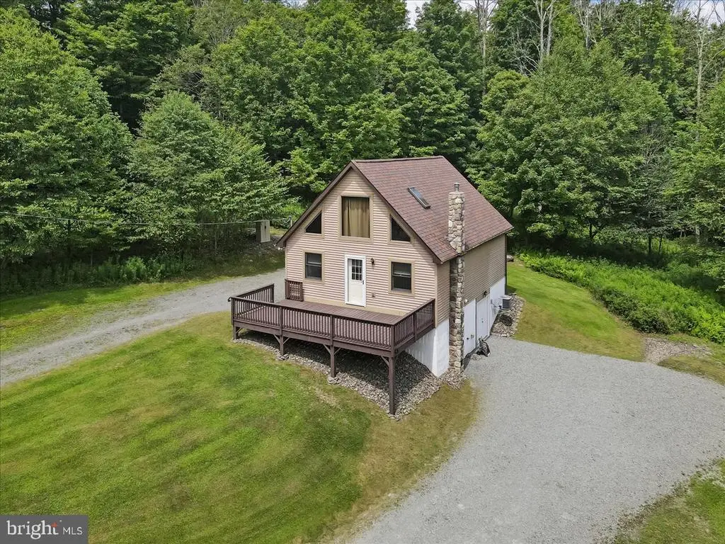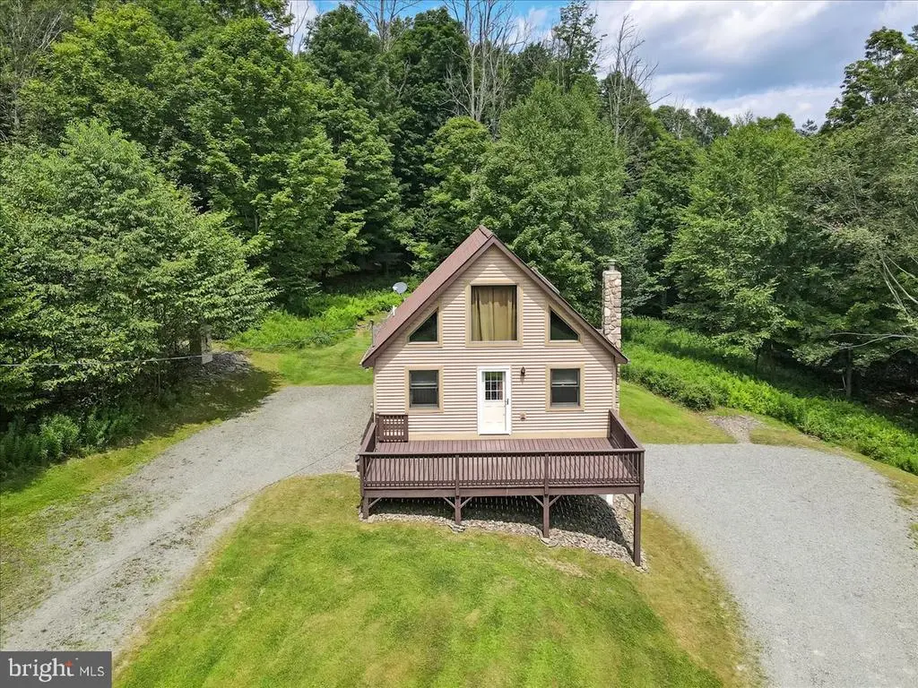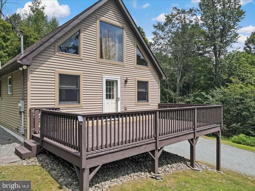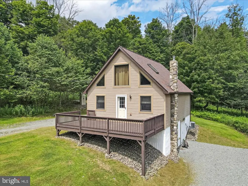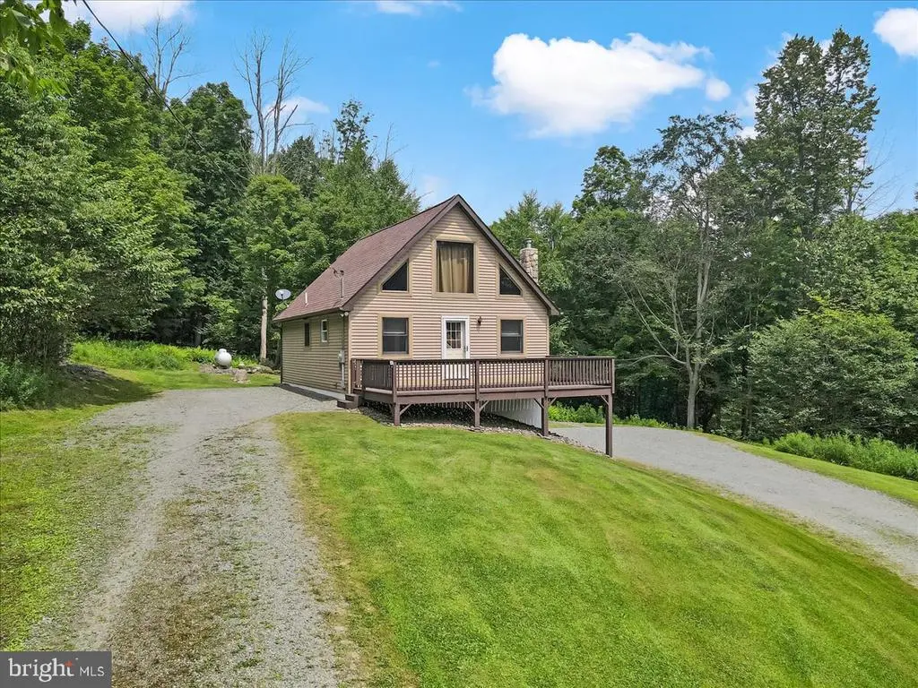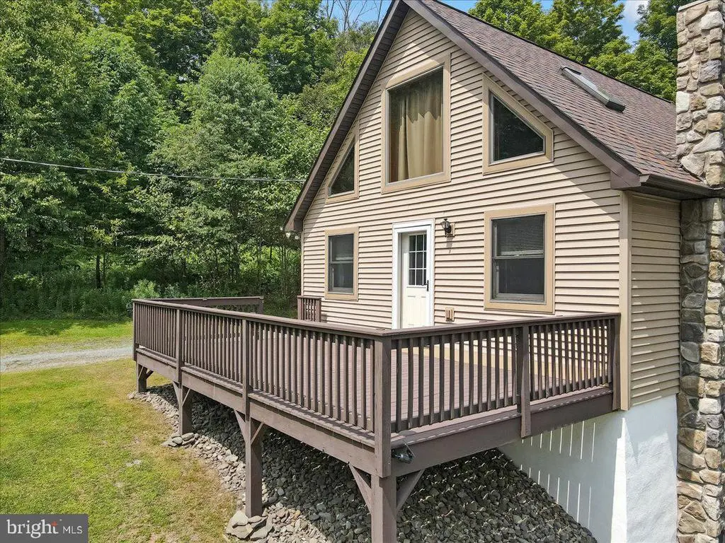 Discover the perfect mountain escape at 193 Highland Trail, a beautifully designed A-frame Chalet tucked into nearly 3 pristine acres of private woodland in sought-after Pleasant Mount. With its striking architectural lines, dramatic vaulted ceilings, and thoughtfully curated interiors, this 2-bedroom, 1-bath retreat offers the ideal balance of rustic elegance and modern convenience. Step inside to an open, airy great room featuring floor-to-ceiling windows that frame tranquil views of the forest and flood the space with natural light. The flowing floor plan connects seamlessly to a charming dining area and a well-equipped kitchen with ample prep space, and a welcoming layout perfect for entertaining or quiet nights in. The main level features two inviting bedrooms and a stylish full bath, providing comfort and convenience all on one floor. A versatile loft space upstairs serves as a third sleeping area, creative studio, or cozy lounge—ideal for guests or a private work-from-home hideaway. The home is being offered almost fully furnished, allowing you to enjoy an effortless move-in or begin hosting immediately if used as a short-term rental or seasonal retreat. Step outside onto the sprawling wraparound deck, where outdoor living becomes effortless—morning coffee, afternoon reading, or evening cocktails are all framed by serene nature views. For those craving adventure, the property includes a 12-ft Lowe Jon boat with oars and a kayak, ready for nearby lakes and ponds. The unfinished lower level offers incredible storage flexibility with wide double doors—ideal for storing large equipment like an ATV, snowmobile, or riding mower. This unfinished space also houses a backup wood-burning furnace capable of heating the entire home, and offers plenty of potential for a workshop, gear room, or future expansion. Perfectly positioned just minutes from Elk Mountain, ATV and snowmobile trails, state lakes, and over 9,000 acres of state game lands, this location is a haven for outdoor enthusiasts. The private community also features a secluded mountain pond—ideal for peaceful reflection or casting a line. With fiber optic internet available, and tasteful design throughout, this luxurious yet laid-back chalet offers the lifestyle you've been dreaming of. Whether you’re looking for a stylish mountain home, a weekend retreat, or a savvy investment, 193 Highland Trail is an exceptional find.