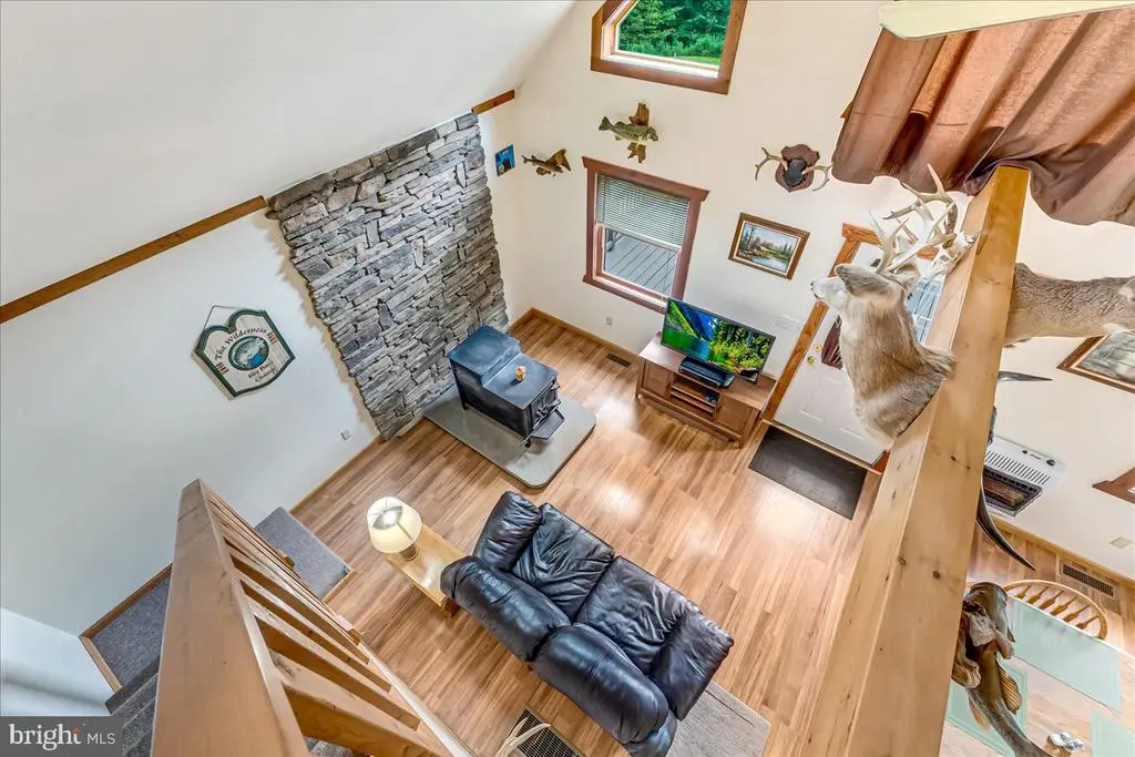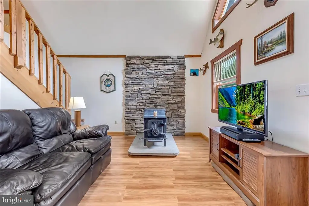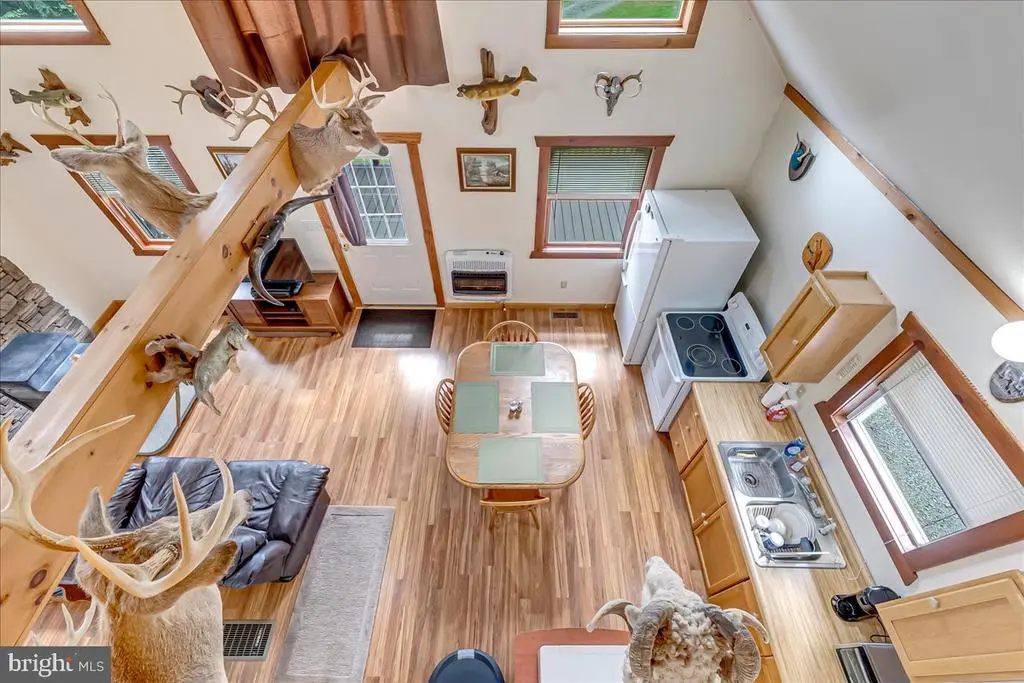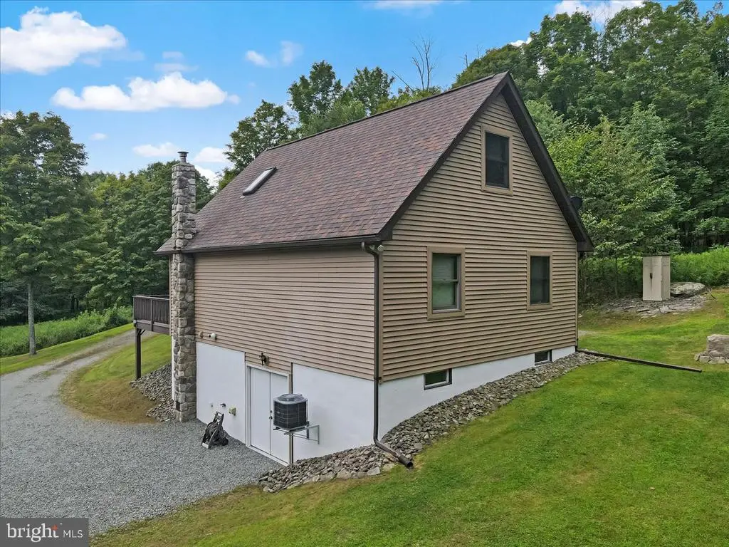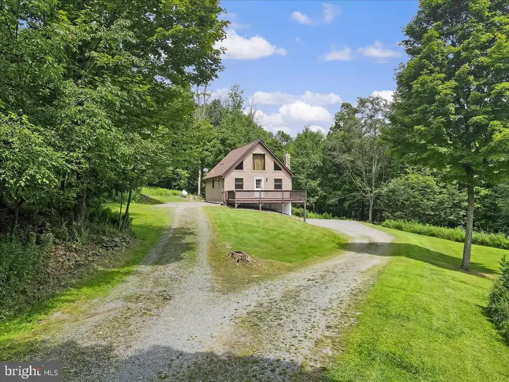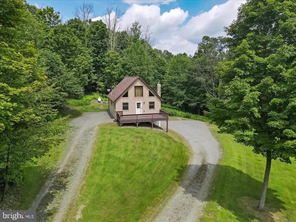 Discover the perfect mountain escape at 193 Highland Trail, a beautifully designed A-frame Chalet tucked into nearly 3 pristine acres of private woodland in sought-after Pleasant Mount. With its striking architectural lines, dramatic vaulted ceilings, and thoughtfully curated interiors, this 2-bedroom, 1-bath retreat offers the ideal balance of rustic elegance and modern convenience. Step inside to an open, airy great room featuring floor-to-ceiling windows that frame tranquil views of the forest and flood the space with natural light. The flowing floor plan connects seamlessly to a charming dining area and a well-equipped kitchen with ample prep space, and a welcoming layout perfect for entertaining or quiet nights in. The main level features two inviting bedrooms and a stylish full bath, providing comfort and convenience all on one floor. A versatile loft space upstairs serves as a third sleeping area, creative studio, or cozy lounge—ideal for guests or a private work-from-home hideaway. The home is being offered almost fully furnished, allowing you to enjoy an effortless move-in or begin hosting immediately if used as a short-term rental or seasonal retreat. Step outside onto the sprawling wraparound deck, where outdoor living becomes effortless—morning coffee, afternoon reading, or evening cocktails are all framed by serene nature views. For those craving adventure, the property includes a 12-ft Lowe Jon boat with oars and a kayak, ready for nearby lakes and ponds. The unfinished lower level offers incredible storage flexibility with wide double doors—ideal for storing large equipment like an ATV, snowmobile, or riding mower. This unfinished space also houses a backup wood-burning furnace capable of heating the entire home, and offers plenty of potential for a workshop, gear room, or future expansion. Perfectly positioned just minutes from Elk Mountain, ATV and snowmobile trails, state lakes, and over 9,000 acres of state game lands, this location is a haven for outdoor enthusiasts. The private community also features a secluded mountain pond—ideal for peaceful reflection or casting a line. With fiber optic internet available, and tasteful design throughout, this luxurious yet laid-back chalet offers the lifestyle you've been dreaming of. Whether you’re looking for a stylish mountain home, a weekend retreat, or a savvy investment, 193 Highland Trail is an exceptional find.