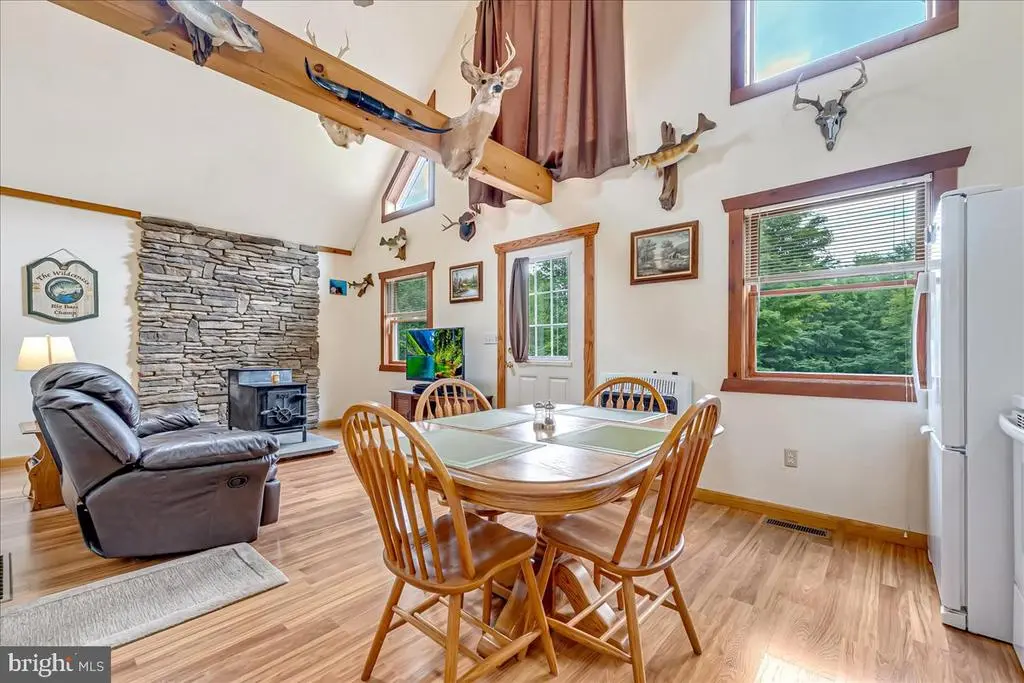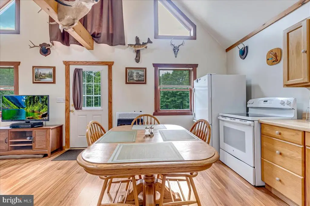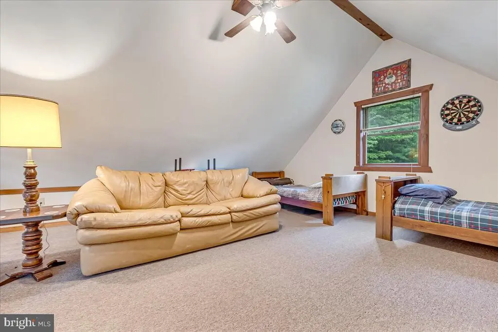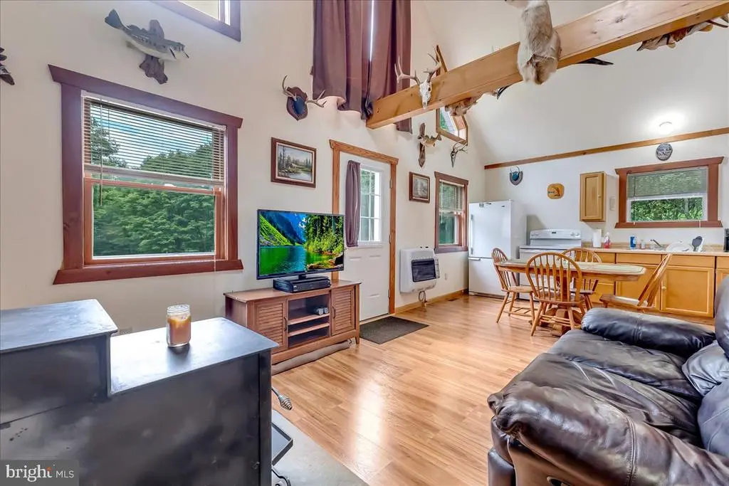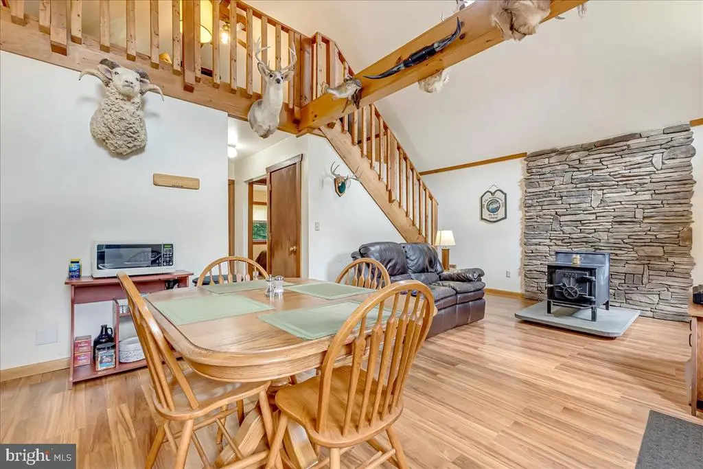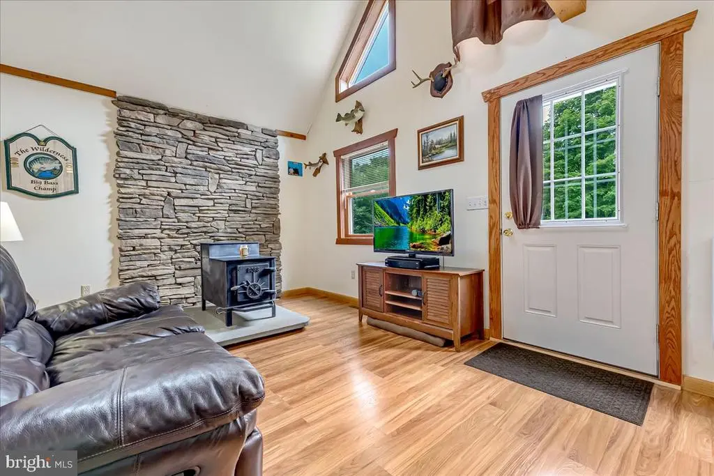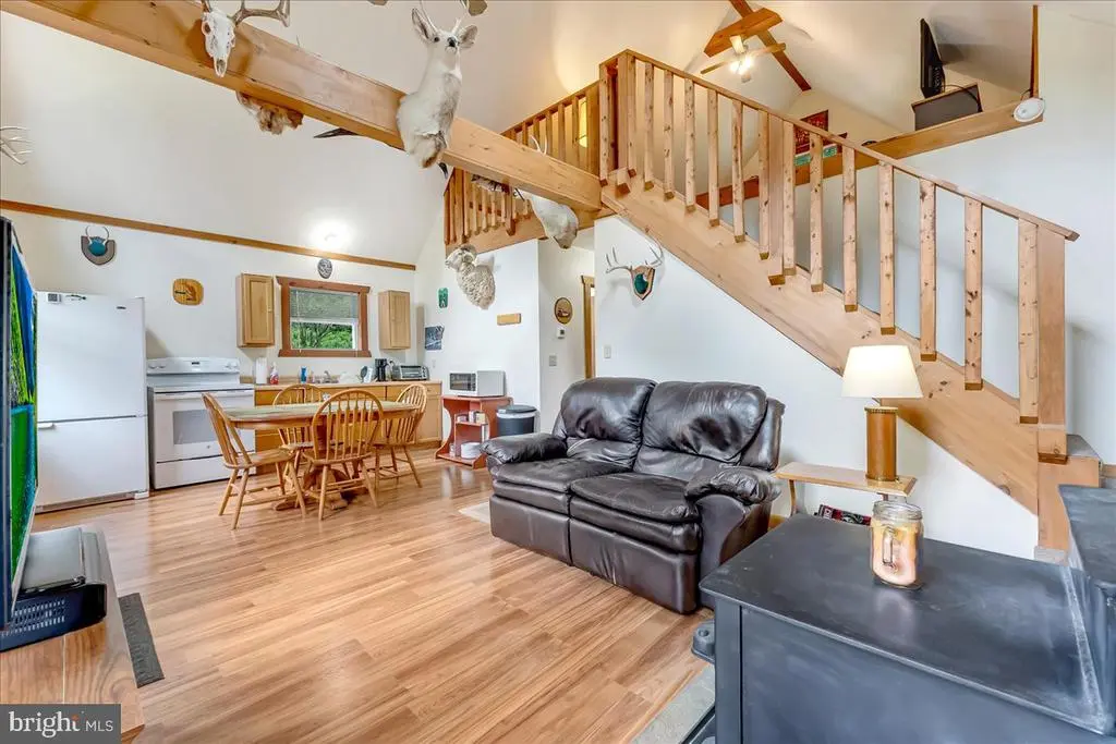 Discover the perfect mountain escape at 193 Highland Trail, a beautifully designed A-frame Chalet tucked into nearly 3 pristine acres of private woodland in sought-after Pleasant Mount. With its striking architectural lines, dramatic vaulted ceilings, and thoughtfully curated interiors, this 2-bedroom, 1-bath retreat offers the ideal balance of rustic elegance and modern convenience. Step inside to an open, airy great room featuring floor-to-ceiling windows that frame tranquil views of the forest and flood the space with natural light. The flowing floor plan connects seamlessly to a charming dining area and a well-equipped kitchen with ample prep space, and a welcoming layout perfect for entertaining or quiet nights in. The main level features two inviting bedrooms and a stylish full bath, providing comfort and convenience all on one floor. A versatile loft space upstairs serves as a third sleeping area, creative studio, or cozy lounge—ideal for guests or a private work-from-home hideaway. The home is being offered almost fully furnished, allowing you to enjoy an effortless move-in or begin hosting immediately if used as a short-term rental or seasonal retreat. Step outside onto the sprawling wraparound deck, where outdoor living becomes effortless—morning coffee, afternoon reading, or evening cocktails are all framed by serene nature views. For those craving adventure, the property includes a 12-ft Lowe Jon boat with oars and a kayak, ready for nearby lakes and ponds. The unfinished lower level offers incredible storage flexibility with wide double doors—ideal for storing large equipment like an ATV, snowmobile, or riding mower. This unfinished space also houses a backup wood-burning furnace capable of heating the entire home, and offers plenty of potential for a workshop, gear room, or future expansion. Perfectly positioned just minutes from Elk Mountain, ATV and snowmobile trails, state lakes, and over 9,000 acres of state game lands, this location is a haven for outdoor enthusiasts. The private community also features a secluded mountain pond—ideal for peaceful reflection or casting a line. With fiber optic internet available, and tasteful design throughout, this luxurious yet laid-back chalet offers the lifestyle you've been dreaming of. Whether you’re looking for a stylish mountain home, a weekend retreat, or a savvy investment, 193 Highland Trail is an exceptional find.