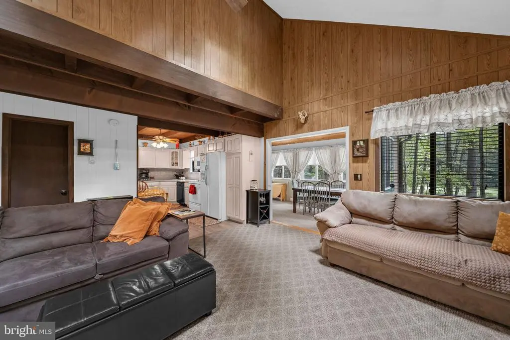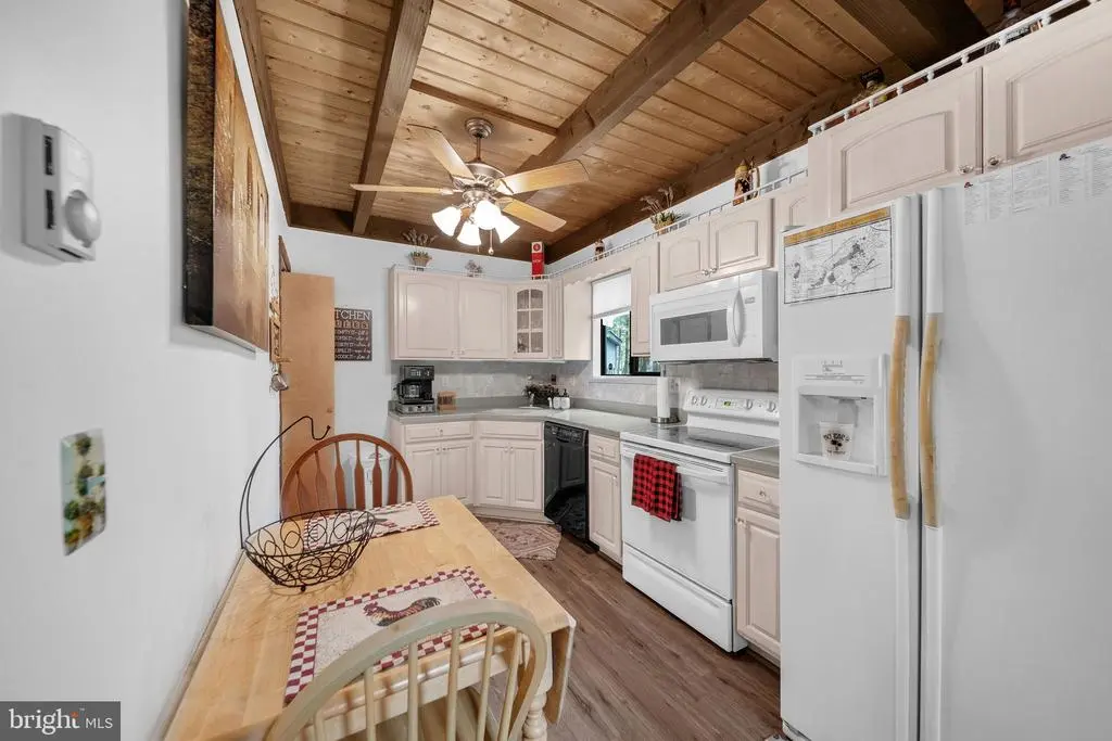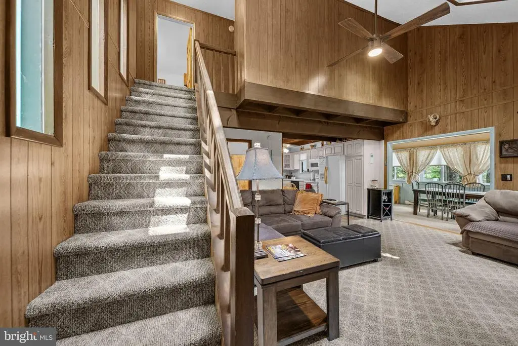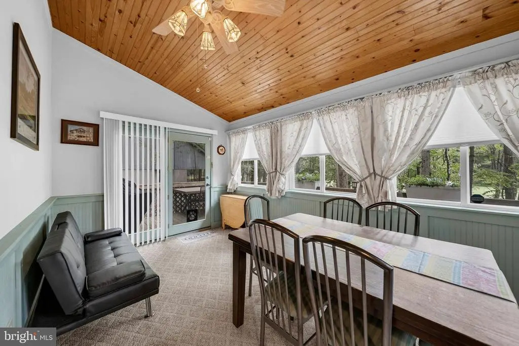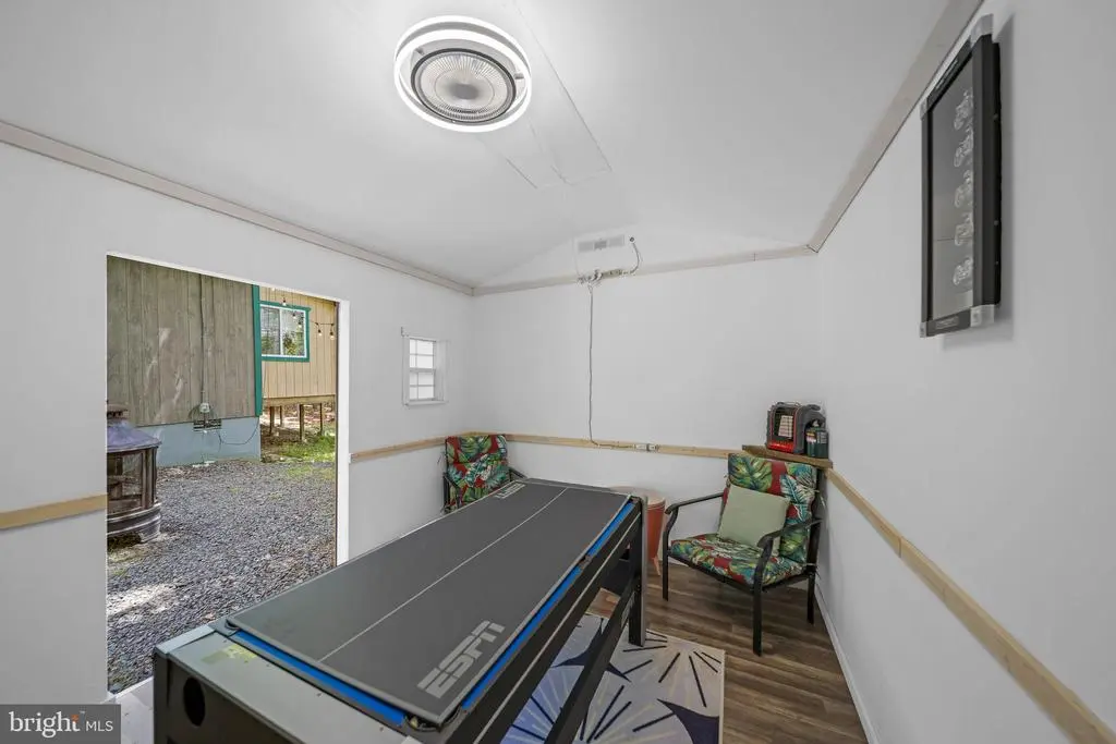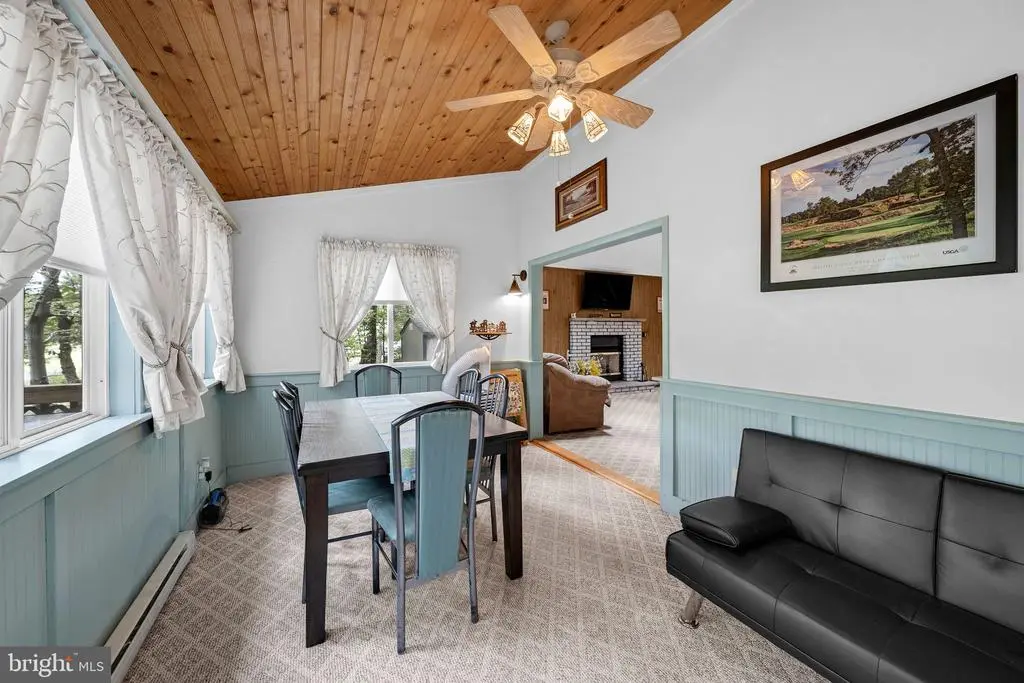 Location! Location! Location! Best words meant to describe this house situated next to a wooded area with natural stream, backing to the 1st hole of the private golf course and just steps from the clubhouse restaurant/bar and sports activities center. This thoughtfully updated Saltbox-Style home features 3-bedrooms and 2 full baths, is set on a wooded lot with a natural stream and a Brand-New roof (Nov. 2024) with architectural shingles and Two New skylights are just a few updates. Finished shed with insulation, propane heat, and vinyl flooring makes a great bonus space for a tiki bar, office or hobby room! The Horseshoe driveway provides ample off street parking. Fresh paint throughout the interior, new vinyl plank flooring (100% waterproof) in the foyer, kitchen, and baths, and a thermostat-controlled propane fireplace. The kitchen boasts Corian countertops, a brand-new over-the-range microwave, and a large pantry. The main level includes a spacious bedroom and an updated full bath. Enjoy the newer 4-season room with vaulted ceilings, abundant natural light and access to a private rear deck - perfect for relaxing in nature or entertaining with guests. Upstairs are two more bedrooms, including a large primary bedroom with a custom wood vaulted ceiling, and double closets. Also upstairs is a fully renovated bath with a spacious tiled shower and granite bench and a quaint nook in the hall currently used with a nostalgic letter writing desk. The Hideout offers 4 seasons of activities and events all while 38 N Fairway provides seclusion, charm. This home is being sold turn-key and furnished for immediate enjoyment with unbeatable access to recreation, shopping and Pocono attractions. Vacation getaway or Home in the mountains come see for yourself and decide!
