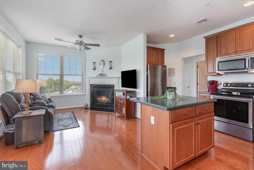 SPECTACULAR meticulously kept move-in ready condo with elevator access in the 55+ community of Regents Glen. Enjoy carefree living in this 2 bedroom, 2 full bath condo on the top (4th) floor. This home is specifically designed for those who crave a spacious open floor living experience. You’ll feel welcome once you walk down the hall and open the front door for the first time. You will notice the 9 foot ceilings, hardwood floors and the abundance of natural light. The eat-in-kitchen with island is the focal point of the condo with all other rooms around it. The kitchen has plenty of cabinets and countertops to do your day to day cooking and the appliances convey, dining area and recessed lights. Off the kitchen is the family room/sitting area with gas fireplace. The primary bedroom suite is generous in size carpet, a walk-in closet, primary bathroom with ceramic tile flooring, and step in shower. The guest bedroom down the hall is also carpeted and a nice size with the laundry room and 2nd bathroom adjacent with ceramic tile flooring and a tub/shower combination. Once leaving the hall area are the dining room and living room with sliders to the screened, private balcony where you can relax and enjoy the views as you drink your morning coffee or just relax and read a book. Other features include forced air gas heating, central air, and a few ceiling fans. Regents Glen community offers many amenities including a golf course, driving range, swimming pool, fitness center and dining. Located within walking distance to York County Rail Trail and easy access to I83. Don’t miss out in seeing this terrific home.
