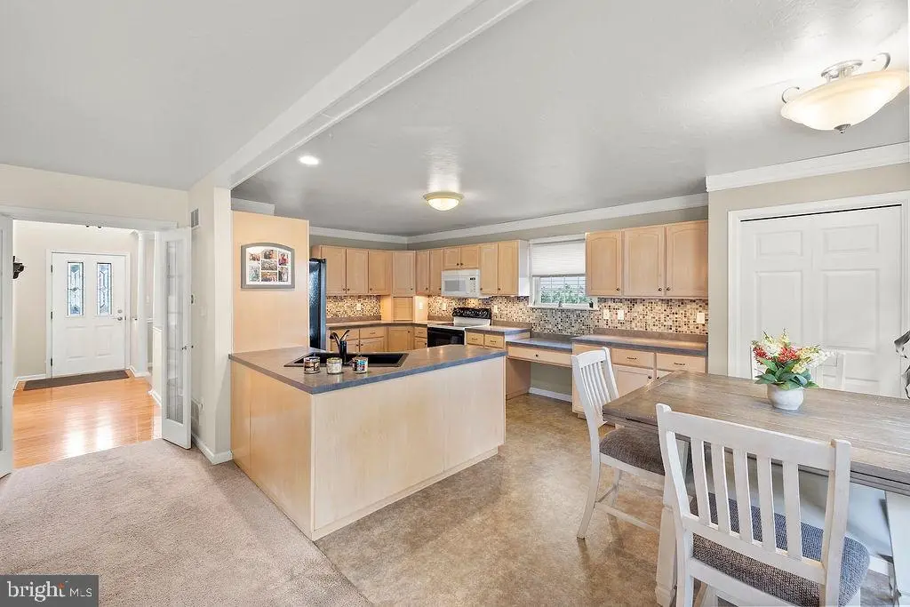 Welcome to this beautifully maintained traditional two-story home featuring 3 spacious bedrooms, 2 full bathrooms, and a convenient half bath. From the moment you arrive, you'll be impressed by the inviting curb appeal, complete with manicured landscaping and a spacious front porch perfect for morning coffee or evening relaxation. Step inside to an open and airy layout, highlighted by a vaulted ceiling in the foyer and custom window coverings throughout. The main level offers a bright and functional kitchen with a breakfast nook, custom backsplash, pantry, and newer appliances—ideal for everyday living and entertaining. The extra-large primary suite is a true retreat, featuring a walk-in closet, double vanity, and luxurious soaking tub for ultimate relaxation. Two additional bedrooms provide ample space for family or guests. Enjoy the added value of a finished basement with extra storage and room to expand—perfect for a home office, rec room, or fitness area. The home also includes a fenced back yard and two-car garage with additional nearby parking for guests. This well-appointed property combines timeless design with thoughtful upgrades. Don’t miss your chance to own this beautiful home that offers comfort, space, and style in every detail. Schedule your showing today! This is not an HOA and the property to the rear of the property is borough ownership to never be developed. In addition the patio furniture is included.