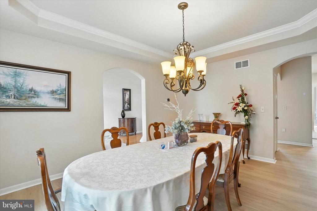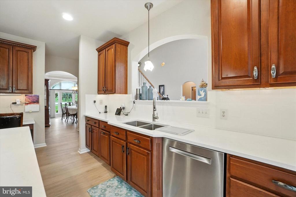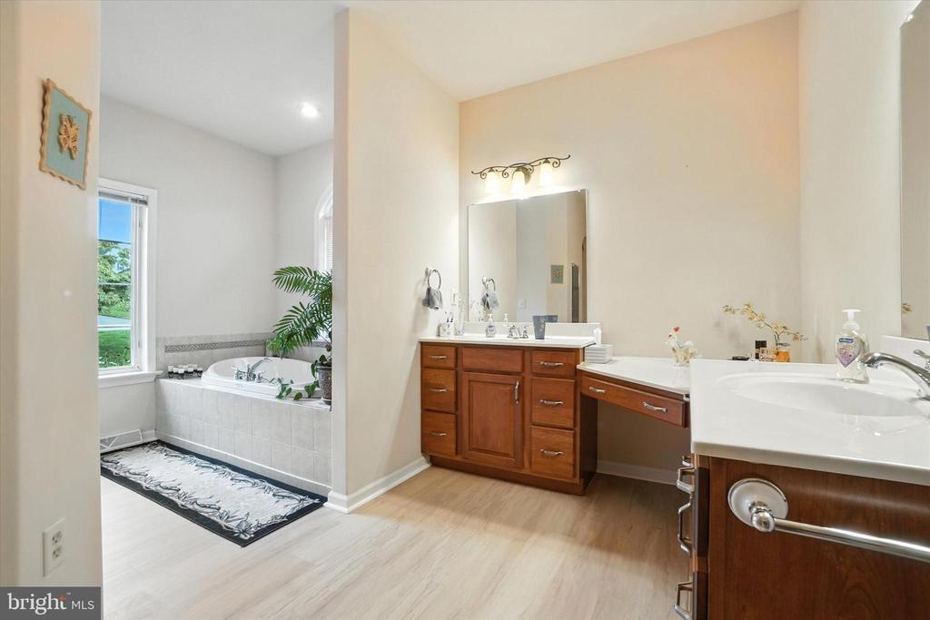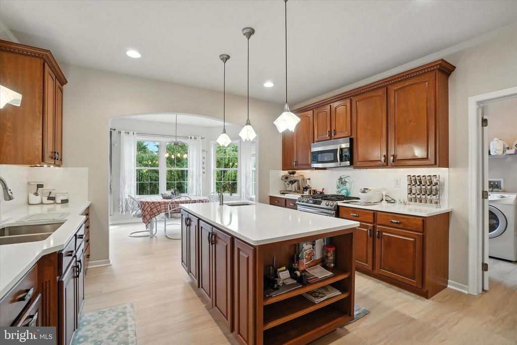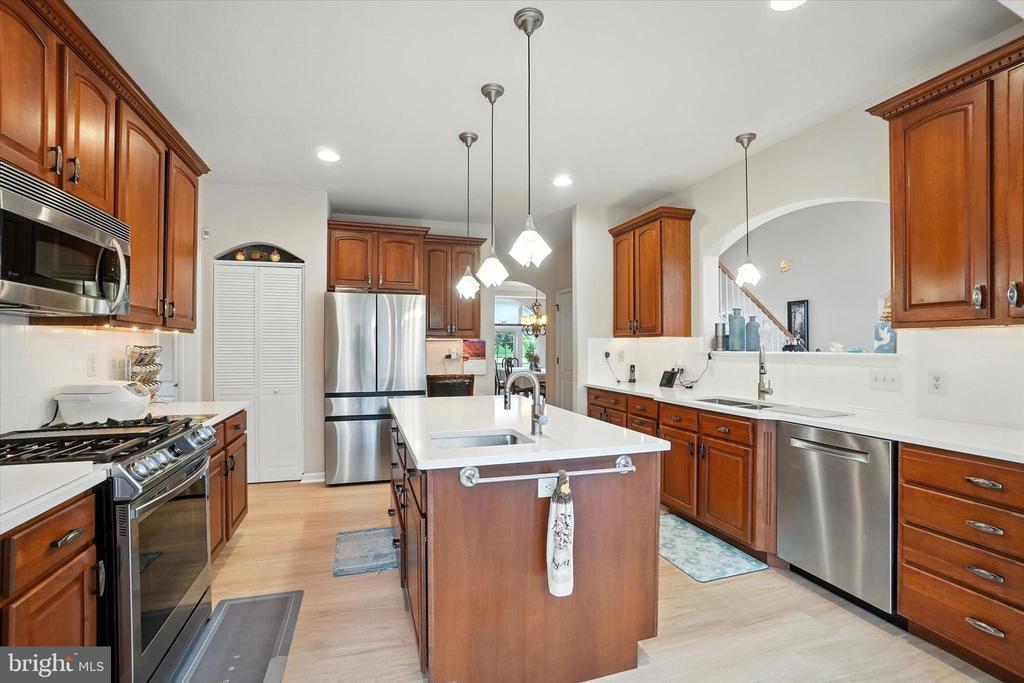 Stunning 6 Bedroom, 3 1/2 Bath Home, offering over 5,200 Sq Ft of Luxurious Living Space! From the moment you enter, you will be captivated by the Soaring 2 -Story Living Room, glowing with natural light and accented with newly installed flooring. The 1st Floor Primary Suite is a true retreat, featuring a serene spa-like en-suite bath with whirlpool tub and separate shower, impressive custom his and hers walk-in closets.. The Gourmet Kitchen will impress any chef with 2 sinks, Center Island, Pantry, New Stainless Steel Appliances, New Quartz countertops, and a Bright Breakfast Room. The Formal Dining Room has a tray ceiling with crown moldings! 2nd Floor offers 3 generously sized bedrooms, each having walk-in closets. Finished Lower Level offers a huge Family Room for Entertaining, 2 Bedrooms with a Full Bath, Walk-in Closet, a Wet-Bar, level walk-out which could be a private entrance for separate, private living quarters. Enjoy the outdoors with an over-sized deck and stamped concrete patio, overlooking a private wooded backyard-perfect for relaxing or hosting gatherings. This home is nestled in a quiet neighborhood with no HOA, offering peace and privacy while located close to everything. Spacious, elegant, and move-in ready- this home is a Custom Built Award Winning Masterpiece by Gerald Builders.