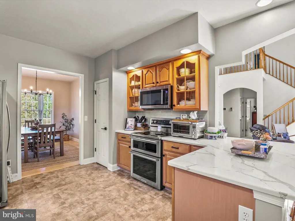 PRICE REDUCED !! Nestled in the prestigious Barrington Place, this exquisite contemporary residence with a first floor primary suite offers a harmonious blend of luxury and comfort, perfect for those seeking an elevated lifestyle. Built in 2005, this meticulously maintained home spans 2,538 square feet and is situated on a generous 0.34-acre corner lot, providing ample space for both relaxation and entertainment. As you step inside, you are greeted by an inviting open floor plan that seamlessly connects the living spaces. The family room, adorned with a cozy gas fireplace, flows effortlessly into the gourmet kitchen, featuring upgraded countertops and stainless steel appliances, including a built-in microwave, dishwasher, and electric oven/range. The adjacent breakfast area is perfect for casual dining, while the formal dining room sets the stage for elegant gatherings. The home boasts four spacious bedrooms, including a luxurious 1st floor primary suite complete with a walk-in closet and a spa-like bathroom featuring a soaking tub and a walk-in shower. Each bathroom is thoughtfully designed with modern fixtures and finishes, ensuring both style and functionality. Natural light floods the interior through double-pane windows, enhancing the warmth of the hardwood and partially carpeted floors. Recessed lighting and ceiling fans add to the ambiance, creating a welcoming atmosphere throughout. The main floor laundry hookups provide convenience, while the unfinished basement offers endless possibilities for customization. There is also a central vac system for easy cleaning. Step outside to discover extensive hardscaping, stamped concrete walkway and beautifully landscaped front and rear yards