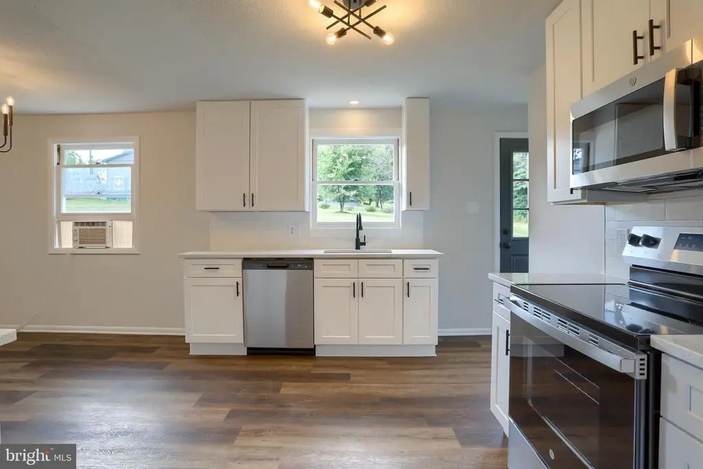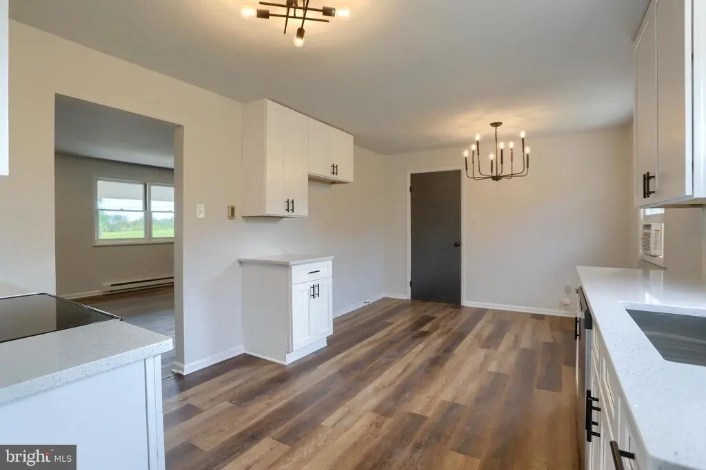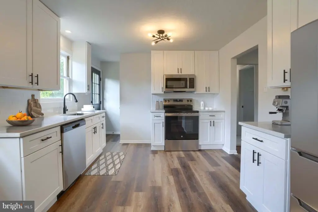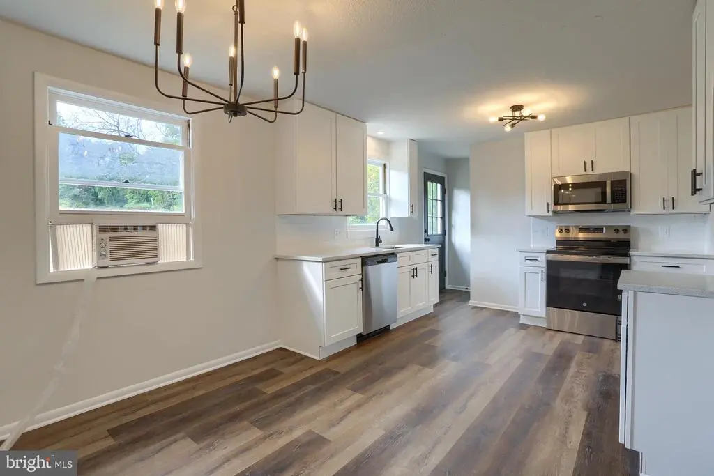 Discover the charm of single-level living in this beautifully updated home nestled on a sprawling 1 acre lot with an inviting front porch perfect for relaxing while overlooking picturesque farmland and creek! Inside, enjoy a modern kitchen with brand-new white shaker cabinetry, dovetailed soft-close drawers, solid white quartz countertops, subway tile backsplash, and gleaming stainless steel appliances. The updated bathroom boasts a full tile surround, adding a touch of elegance. A spacious one-car garage offers convenience, while the massive, clean lower level awaits your personal finishing touches to create the perfect space for your needs. ABSOLUTE MUST SEE MOVE IN READY HOME AVAILABLE NOW!