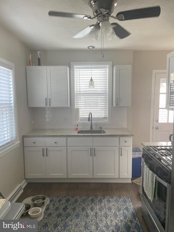 Sweet cape cod with 3 bedrooms and 1 full bath with brand new walk in shower. Home was completely remodeled in 2022. Lg bedrooms 2 on first floor and one on second floor, LVP throughout main level. Custom kitchen with granite countertops, subway backsplash and stainless steel appliances. Lg fenced yard and a 4 car parking pad in the back. New deck with electric. Ceiling fans in bedrooms on first floor and window units convey. New windows, hot water heater, lots of new plumbing work, roof new in 2022 and new HVAC..This home won't last long...