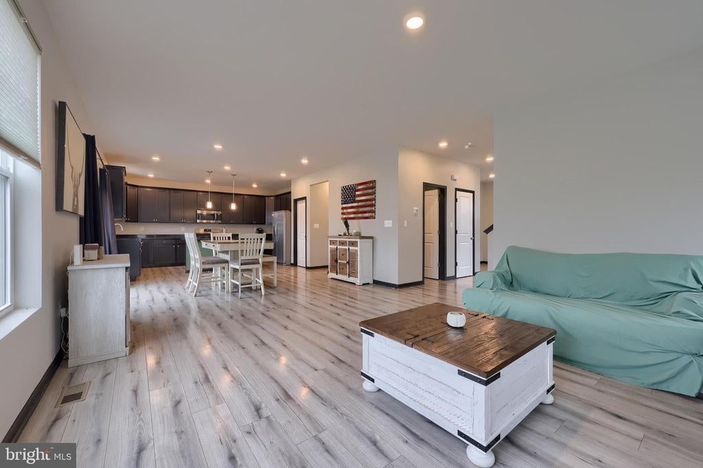Better Than New! Built in 2022, this 4-bedroom home is move-in ready and showcases a bright, open layout with stylish modern finishes. The welcoming covered front porch leads into a spacious living room that flows seamlessly into the open family room, kitchen, and dining area—perfect for both everyday living and entertaining. The kitchen is highlighted with stainless steel appliances, granite countertops, a center island, and a roomy pantry, while the adjoining dining area provides direct access to the maintenance-free composite deck for easy indoor-outdoor gatherings. Upstairs, a convenient laundry is located near all four bedrooms. The primary suite offers a walk-in closet and private en-suite bath. Three additional well-sized bedrooms and a full hall bath complete the upper level. The lower level, complete with an egress window, is ready for future expansion to fit your needs. An oversized two-car garage provides plenty of storage and parking. Conveniently located with quick access to Route 30 and I-83, this home truly combines comfort, style, and convenience.