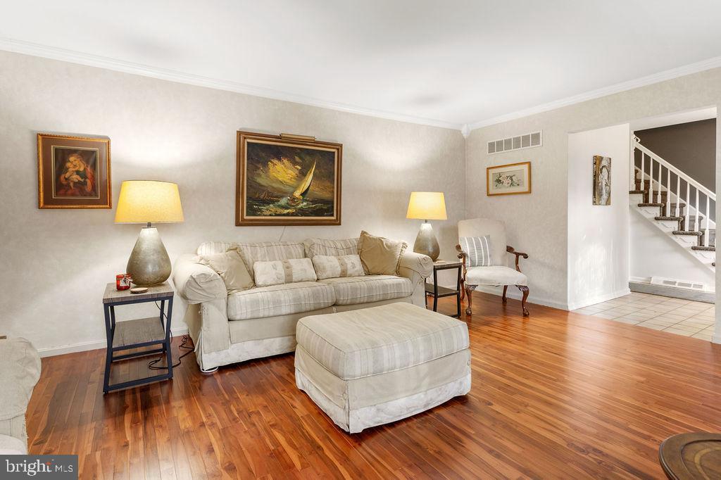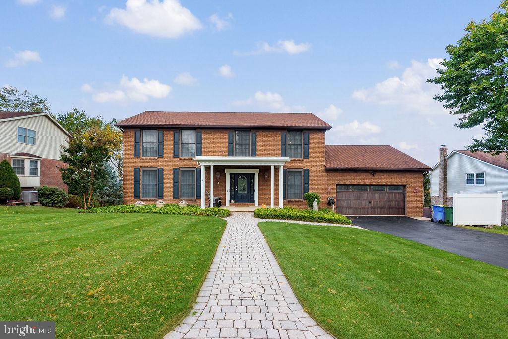 Classic Penn Oaks South two story home with five bedrooms and nearly 4000 sq ft. Recently installed nearly 450 sq ft composite deck off family room with steps to patio and yard below. Portion of deck has roof with skylights. Large concrete patio below off basement family room. Vinyl fencing for portion of rear yard. First floor features living room and formal dining room with teak flooring. Breakfast bar in kitchen and first floor laundry. Solid surface counter tops. Brick fireplace and indirect lighting in family room. Four large bedrooms upstairs plus primary bedroom has sitting area w/skylight, vanity and walk in closet. Additional attic storage behind walk in closet. Lower level is a walkout to a concrete patio with an exercise room and half bath. Modern HVAC systems and radon mitigation system. Home shows pride of ownership.