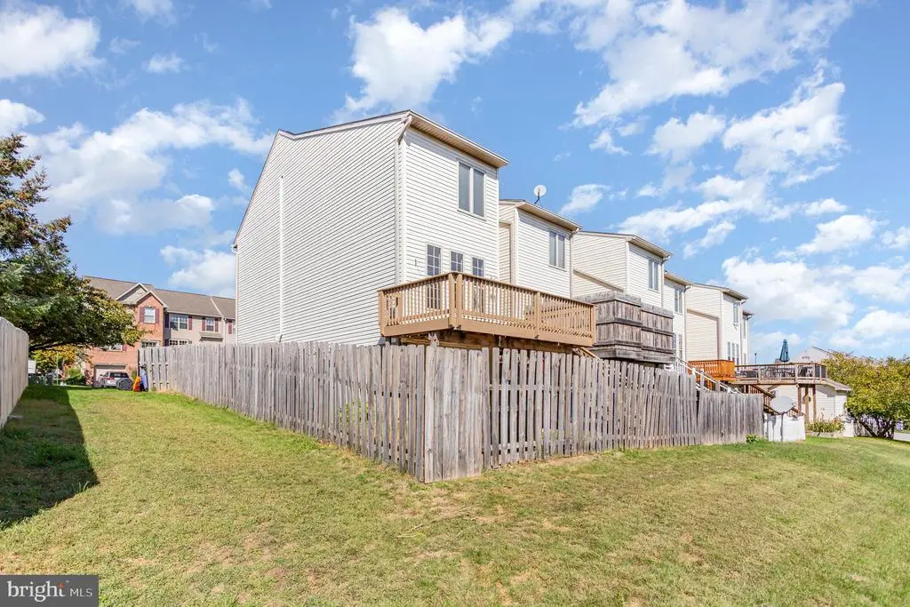 Welcome to this spacious end-of-group townhouse in Colonial Hills, offering 4 bedrooms, 2.5 baths, and a bright, comfortable layout. The main level features a large living room with luxury vinyl plank flooring, a bay window, and elegant crown molding. The country-style kitchen features two-tone cabinetry, a kitchen island, a double sink, and a convenient pass-through window to the living room. Tile flooring adds durability and character. Just off the kitchen, the sun-filled bump-out space that could be used as a dining room accented with crown molding and a large sliding glass door that opens to the deck—perfect for everyday living and easy entertaining. A half bath completes the main level. Upstairs, the primary suite offers a peaceful retreat with crown molding, 2 walk-in closets, a ceiling fan, and a private bath featuring white cabinetry, a double vanity, a soaking tub, a walk-in shower, and artistic tile details. Two additional bedrooms with crown molding and carpet, plus a stylish hall bath with a tub/shower combo, complete the upper level. The lower level expands the living space with a large family room highlighted by recessed lighting, chair rails, and access to the backyard through another sliding door. A fourth bedroom, storage area, and utility room provide flexibility and function. Step outside onto the spacious deck—perfect for morning coffee, weekend barbecues, or simply unwinding outdoors. The fully fenced backyard adds a sense of privacy and is ideal for both relaxing and entertaining. A dedicated two-car parking pad out front provides everyday convenience. With brand new carpet throughout and a fresh coat of paint, this home is move-in ready and combines charm, functionality, and great outdoor living in one appealing package.