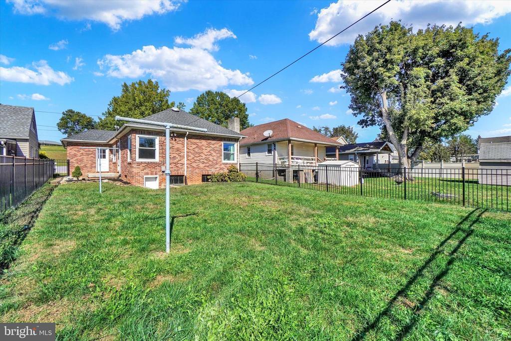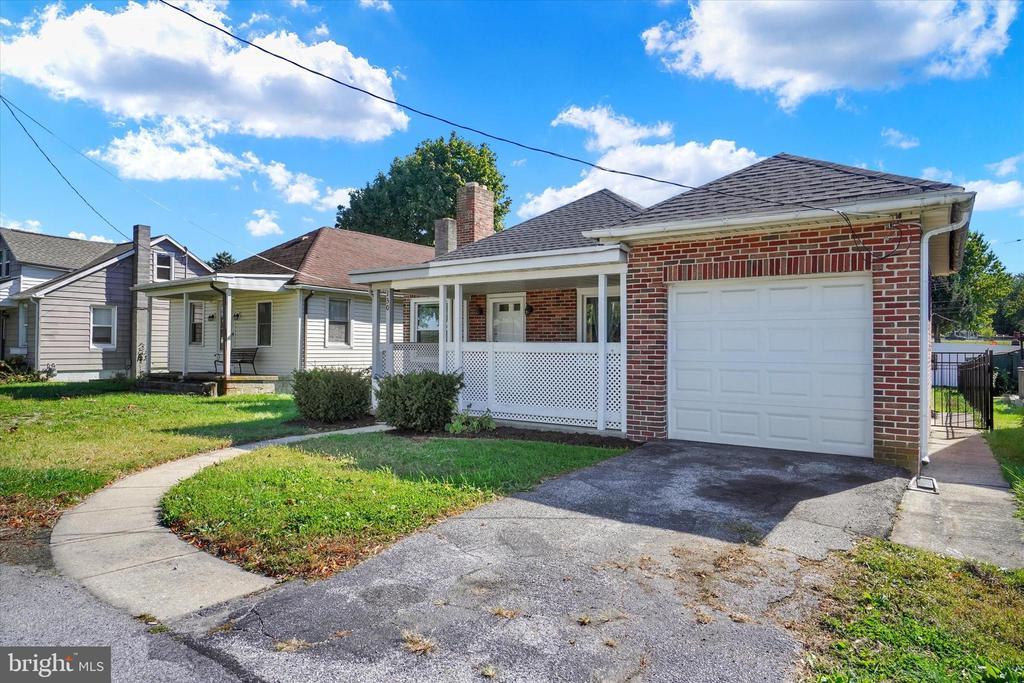 Take a look at this all brick 1-Story home in Central Schools! Step onto the large covered front porch & then into a charming Living Room with wood burning fireplace w/brick surround, built in shelving on both sides of the fireplace & lots of windows for natural light. Laminate floors continue into the Dining Room with a large picture window (replaced in 2024). The kitchen has freshly painted white cabinets, updated countertops & porcelain sink with updated faucet. All white appliances: mini-portable dishwasher, gas stove & refrigerator all included with the sale. There is an exterior door that accesses the side patio, fenced yard & access to the 1 car attached garage. The garage has an insulated garage door w/electric opener & the floor was recently painted. There are 2 Bedrooms 1 with new flooring & some updated windows! Full bath with tub/shower, pedestal sink, new medicine cabinet & light fixtures & a linen closet. There is a walk-up attic great for extra storage. Attic fan blades replaced in '21 & motor in '22. There is a full 26'x23' walk-out basement with large windows for lots of natural light! There is a washer/dryer, included with the sale & workbench stays too. Utility sink in back room. Updated PVC plumbing in 2023, Dry locked basement walls in 2021 & a new sump pump in 2021. Updated Gas Furnace, Central Air & gas hot water heater. NEW 50-YearRoof installed in 2021! All gutters/downspouts were ran underground in 2021. The backyard is fully fenced with black metal fencing, great for kids & pets. Off street parking in grass area behind the fence, room for several cars! Located minutes to all conveniences, I-83 & Rt30. NICE single family 1-Story Home! Schedule your tour today!
