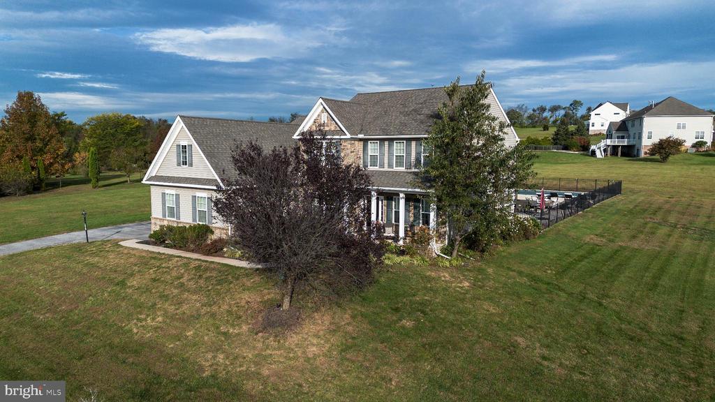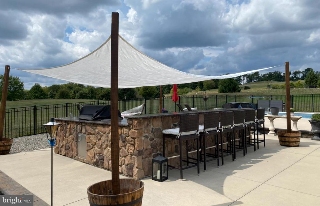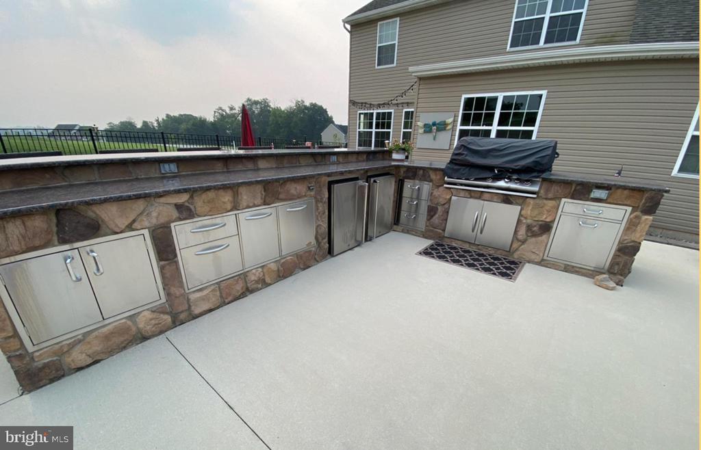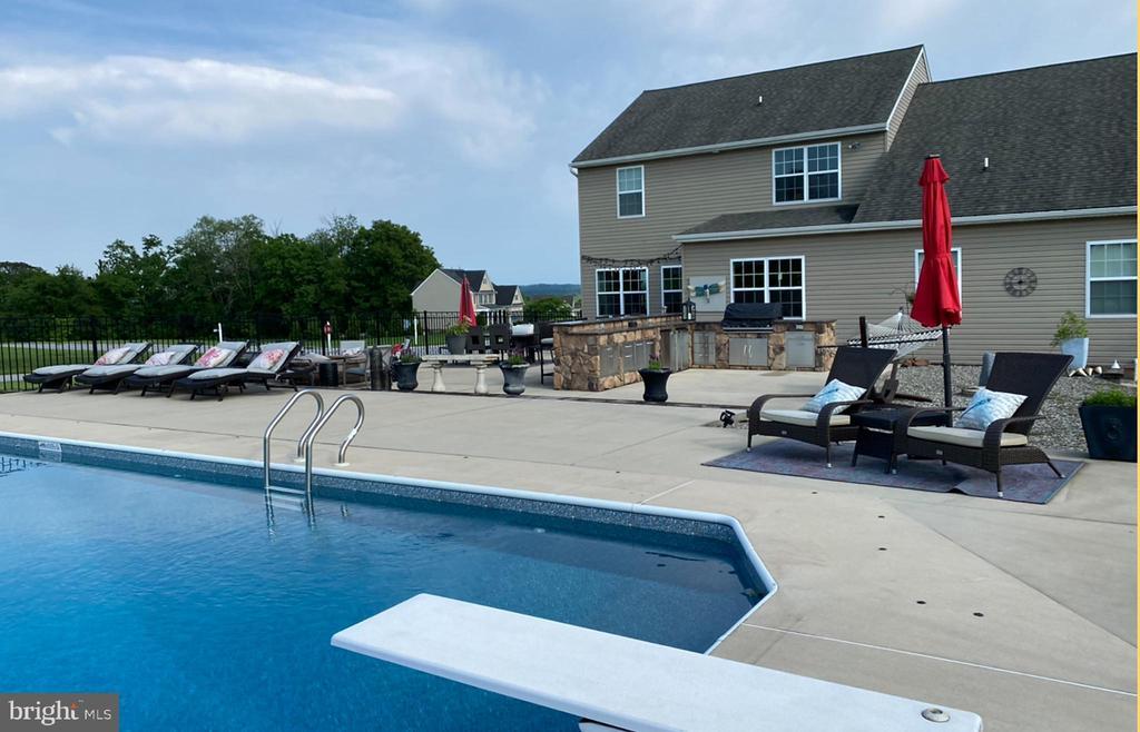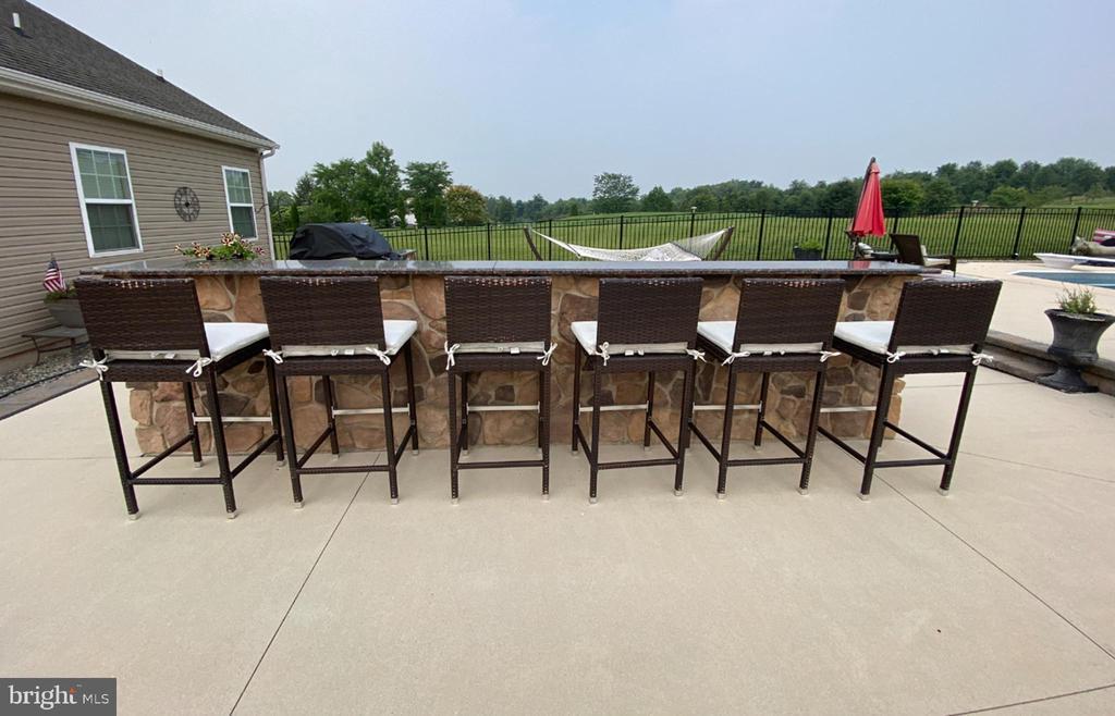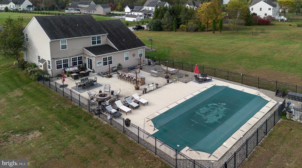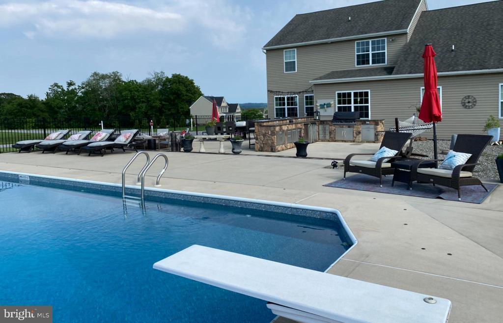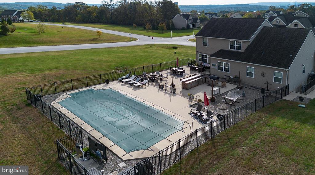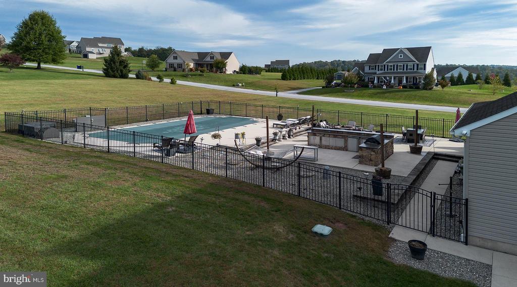 WARNING...once you enter, you won't want to leave! Beautifully maintained 5 bedroom 3.5 bath corner lot with an incredibly hard-scaped fenced backyard with an in-ground saltwater pool for your summer enjoyment. Hard-scaped backyard also has a large L shaped entertainment bar with granite countertops and a built-in grill, two refrigerators, trash can pullout, built in paper towel dispenser and 5 spacious sections for storage. Also included is a Sunshade to keep you cool while you are cooking and serving your guests drinks at the bar. Home features a main floor master suite with its own private bathroom and walk-in closet and a kitchen with granite countertops and breakfast bar and eating area which overlook the family room with a toasty propane insert fireplace. The three car garage and large driveway gives you lots of options for parking all your cars and an extra storage loft built into the garage.