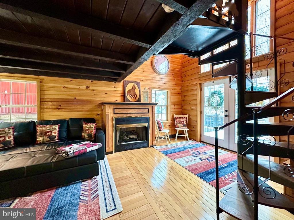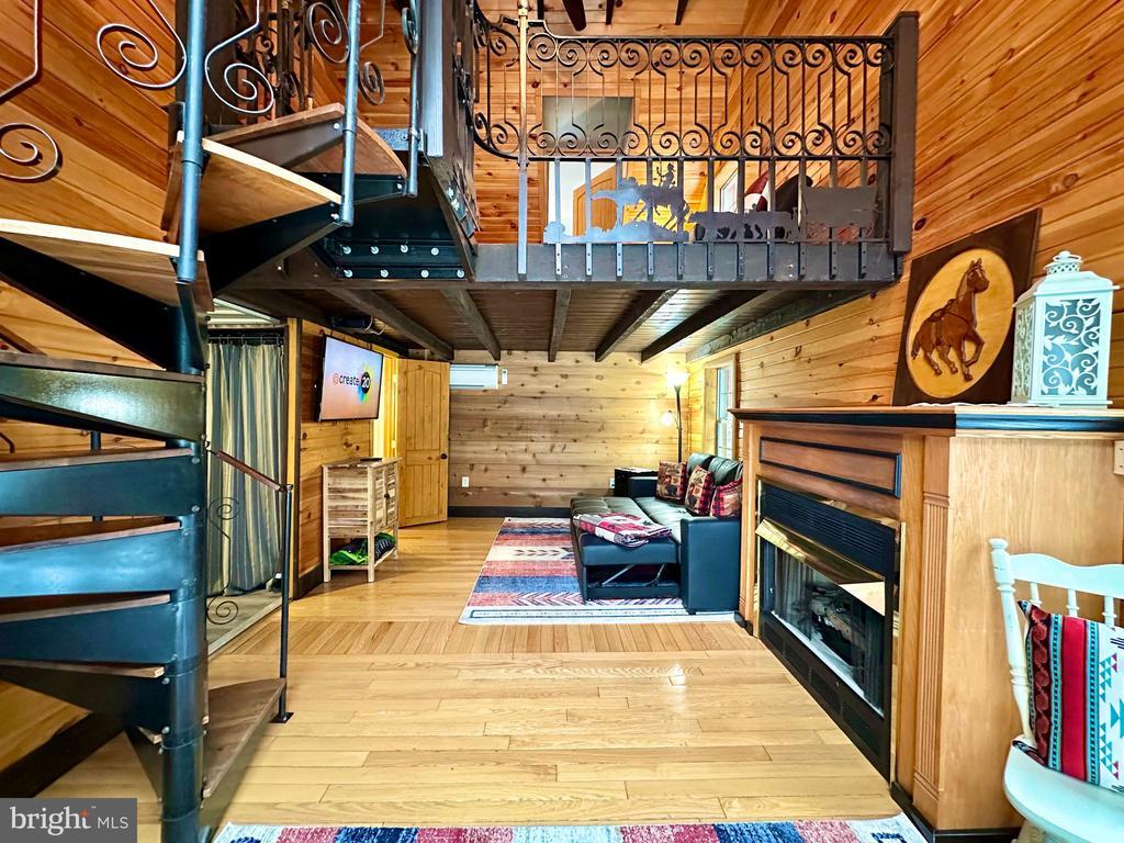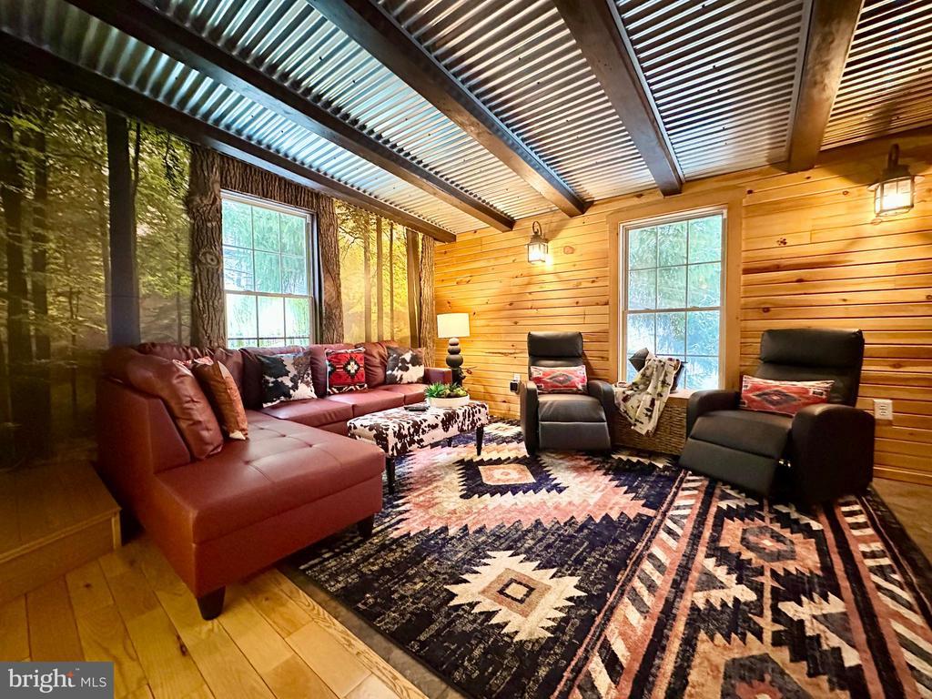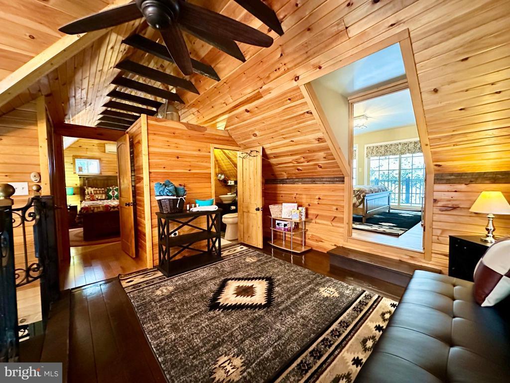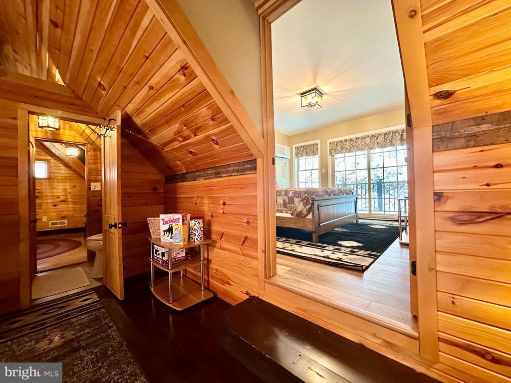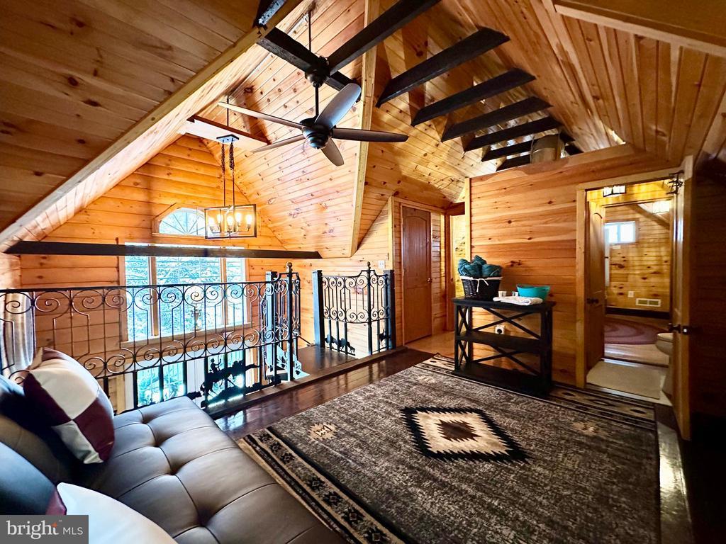 PREPARE TO BE CHARMED! This thoughtfully designed Cottage-style home is exceptionally detailed with many charming features and offers a living room with wood floors and walls, a gas fireplace and has a cathedral ceiling -open to the loft above. The kitchen has loads of counter space and cabinets and stylishly decorated yet retains the original charm with a retro kitchen sink and gas range. Open to the dining area which has a wall of windows and beautiful views of the lush greenery. There is a spacious family room with wood floors, wood walls, tin ceiling, and many unique finishing touches which are one of a kind. Upstairs the charm continues. The loft is beautifully detailed and features wooden walls and ceiling and a unique wrought iron banister, 2 nice-sized bedrooms and a full bath. You'll enjoy spending time on the spacious and low maintenance deck and enjoy the sounds of the stream which travels along a rustic stone wall. Want more privacy? Relax is the shade of the covered rear patio with metal ceiling and cool ceiling fans. You're surrounded by the greenery of your 5 Acre lot! There is an over-sized 2 car garage with full 2nd floor. A perfect workshop or could be a great game-room for when your friends and family gather. This unique property is located just a quick walk from the public boat launch in Long Level where you can enjoy boating, kayaking, hiking and abundant wildlife. It is fully equipped for year round, full time living or makes and excellent 2nd home. A great getaway without the long drive.