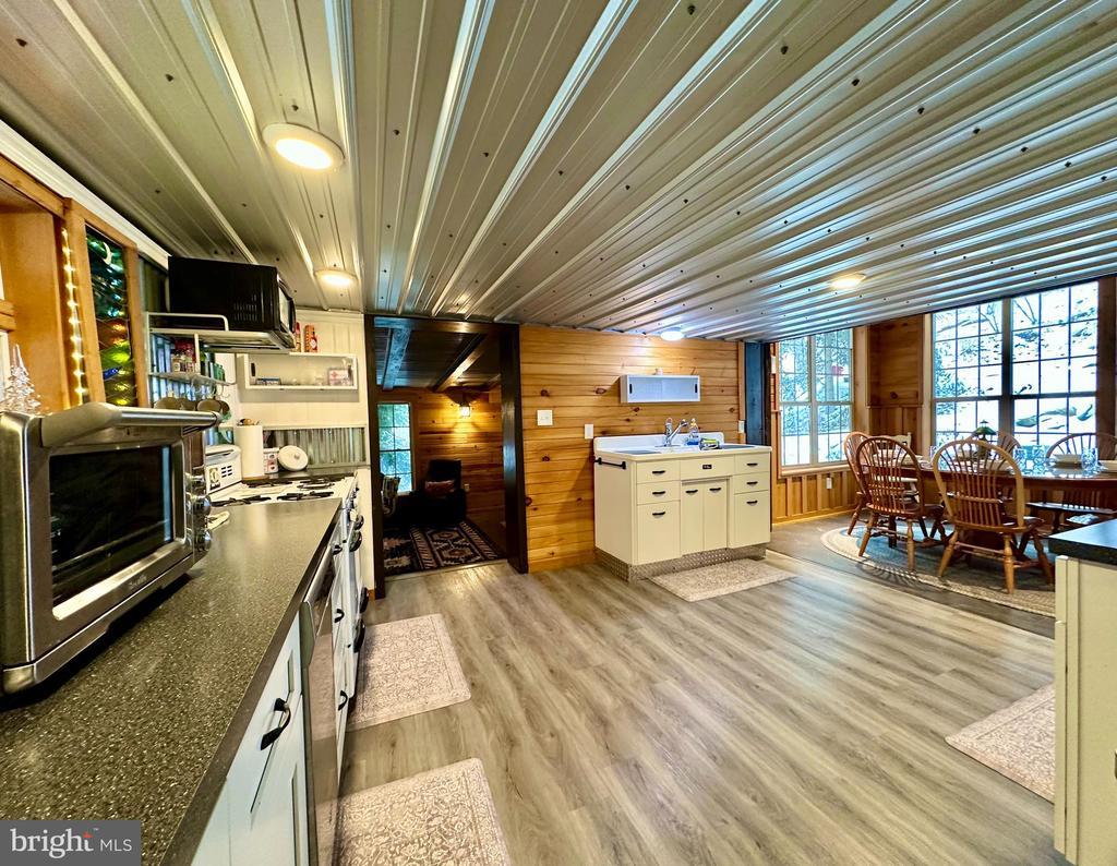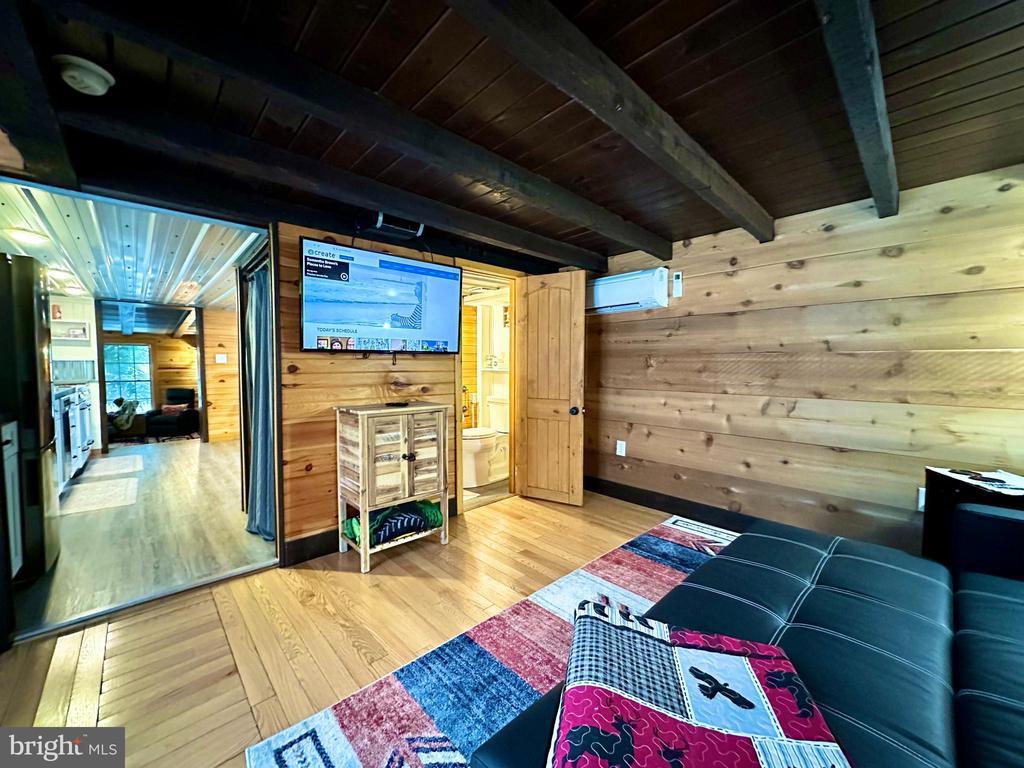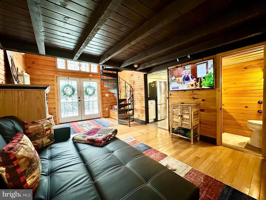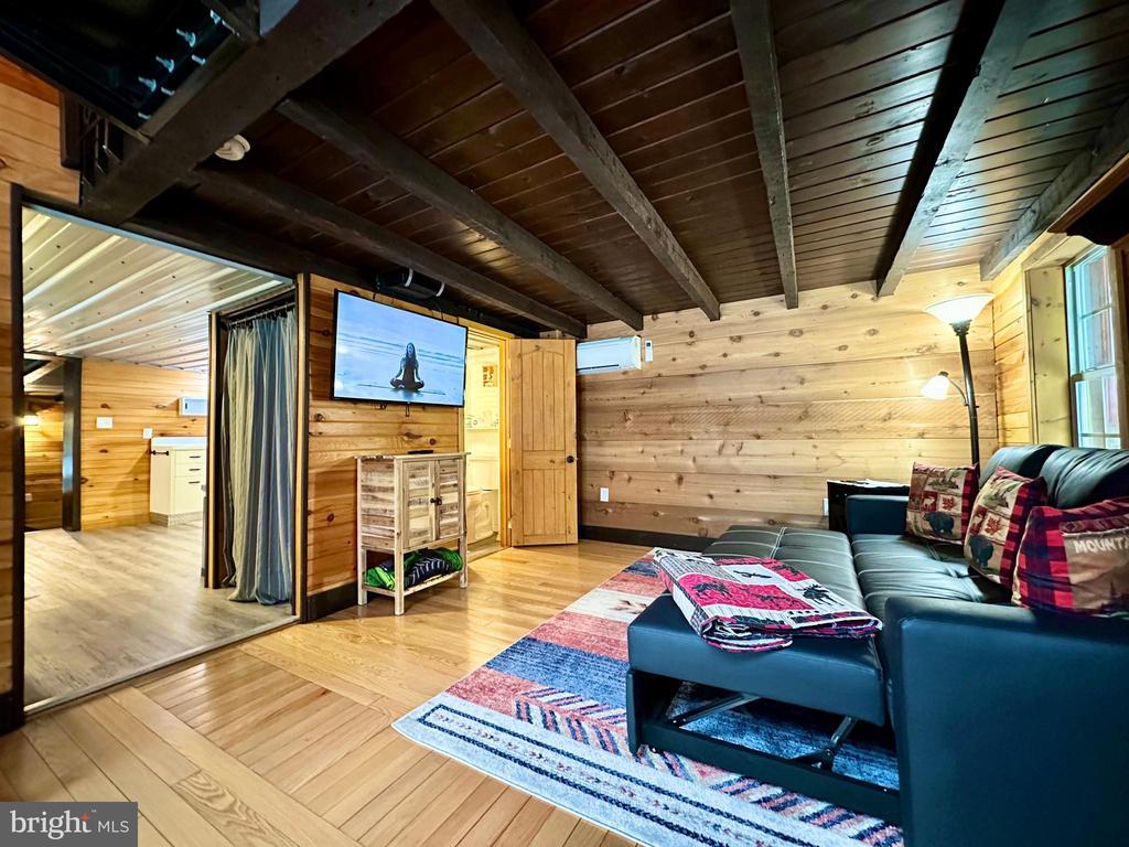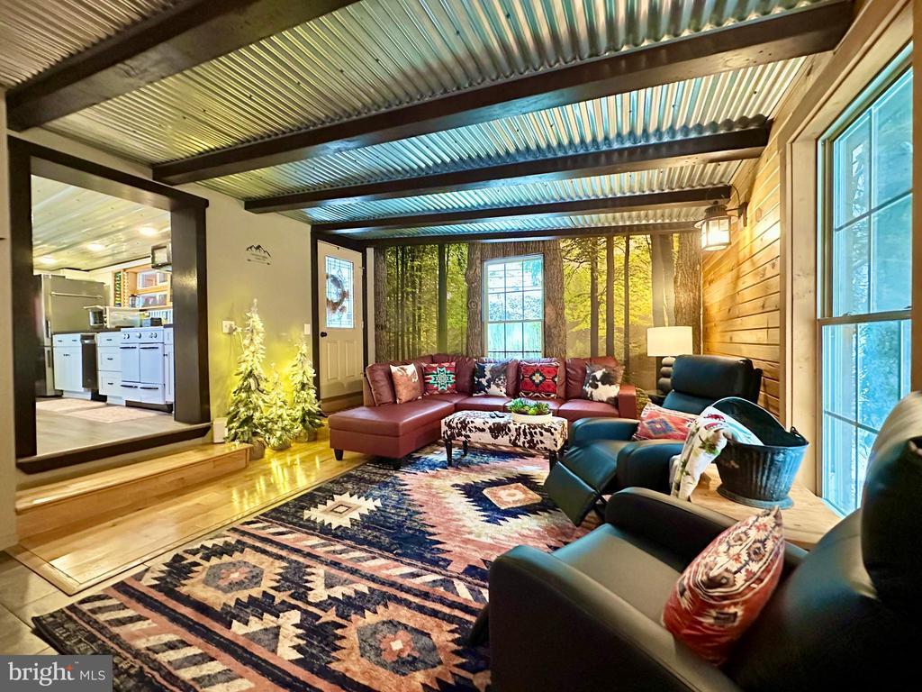 PREPARE TO BE CHARMED! This thoughtfully designed Cottage-style home is exceptionally detailed with many charming features and offers a living room with wood floors and walls, a gas fireplace and has a cathedral ceiling -open to the loft above. The kitchen has loads of counter space and cabinets and stylishly decorated yet retains the original charm with a retro kitchen sink and gas range. Open to the dining area which has a wall of windows and beautiful views of the lush greenery. There is a spacious family room with wood floors, wood walls, tin ceiling, and many unique finishing touches which are one of a kind. Upstairs the charm continues. The loft is beautifully detailed and features wooden walls and ceiling and a unique wrought iron banister, 2 nice-sized bedrooms and a full bath. You'll enjoy spending time on the spacious and low maintenance deck and enjoy the sounds of the stream which travels along a rustic stone wall. Want more privacy? Relax is the shade of the covered rear patio with metal ceiling and cool ceiling fans. You're surrounded by the greenery of your 5 Acre lot! There is an over-sized 2 car garage with full 2nd floor. A perfect workshop or could be a great game-room for when your friends and family gather. This unique property is located just a quick walk from the public boat launch in Long Level where you can enjoy boating, kayaking, hiking and abundant wildlife. It is fully equipped for year round, full time living or makes and excellent 2nd home. A great getaway without the long drive.