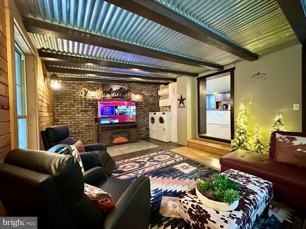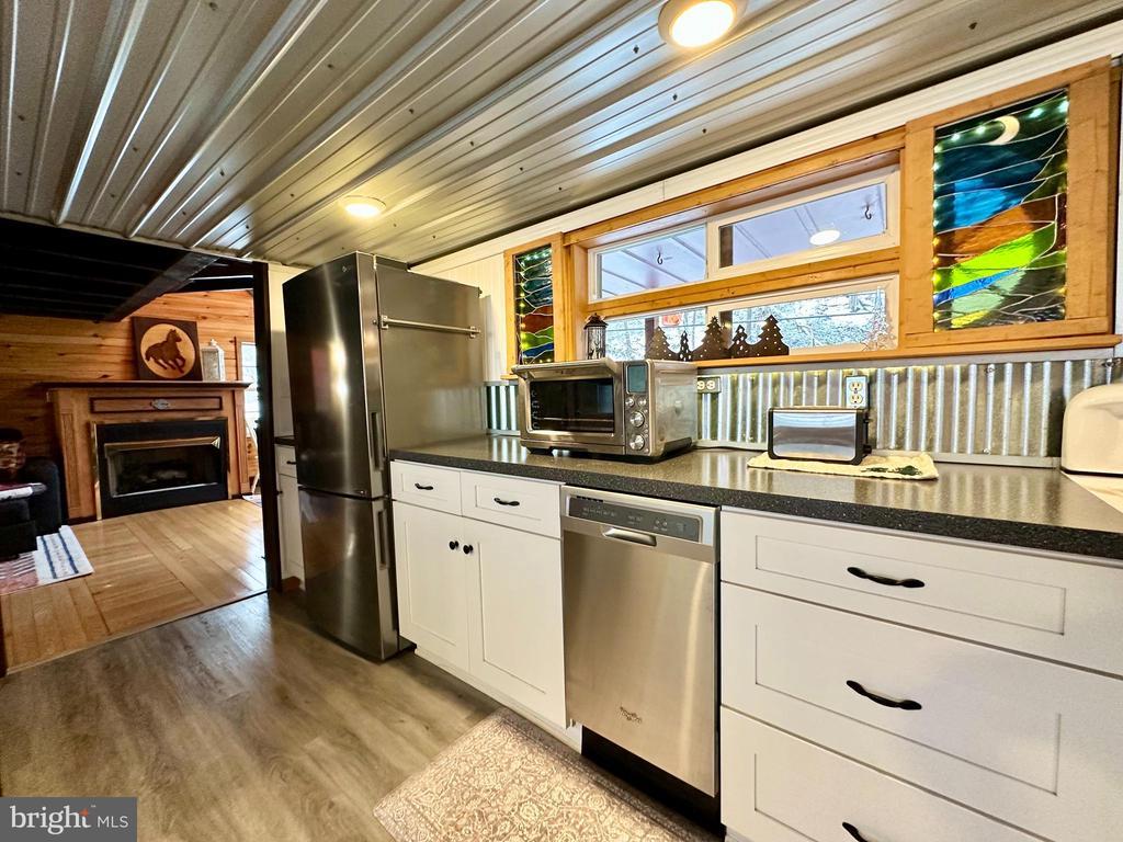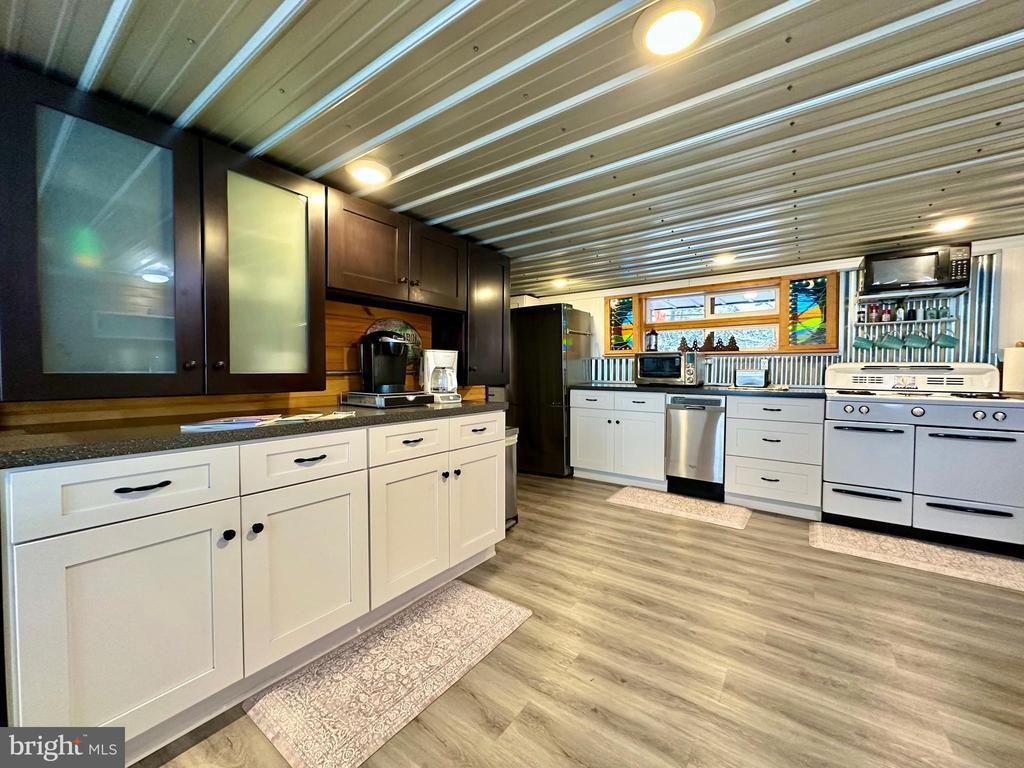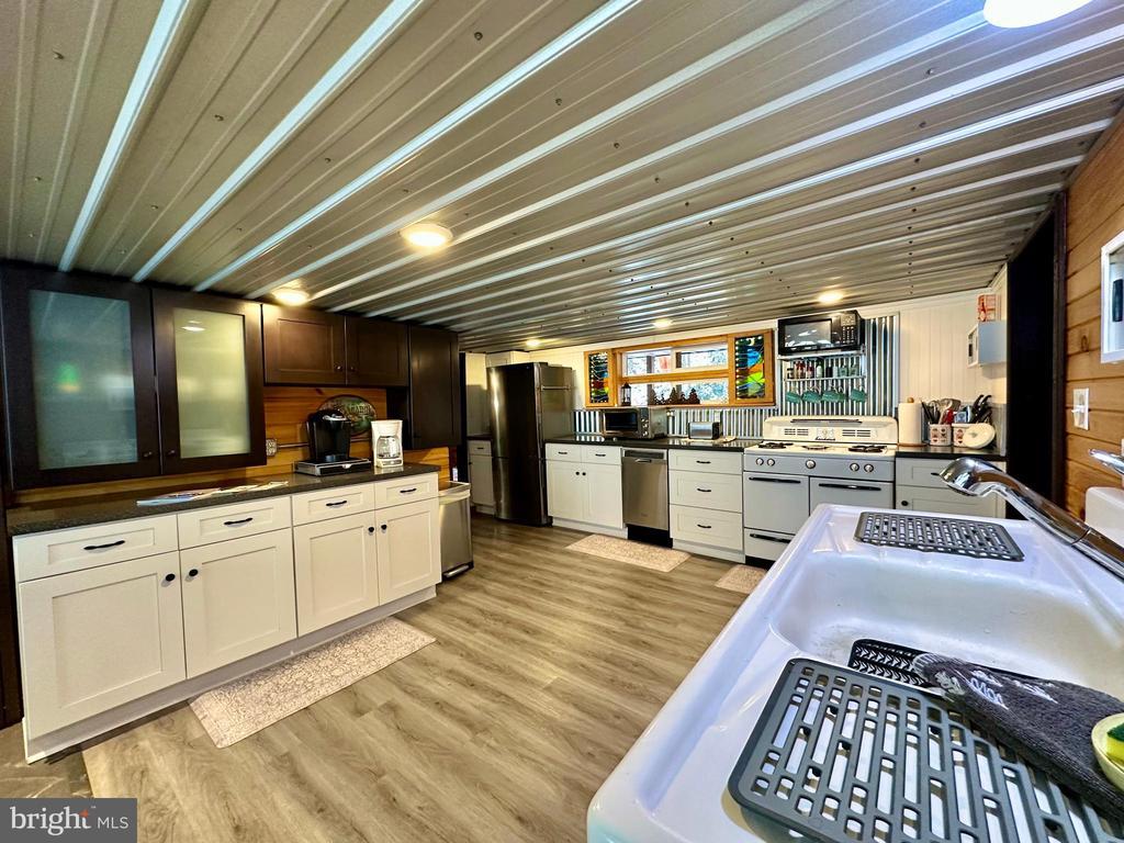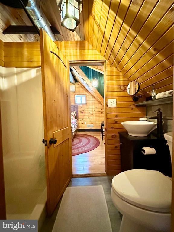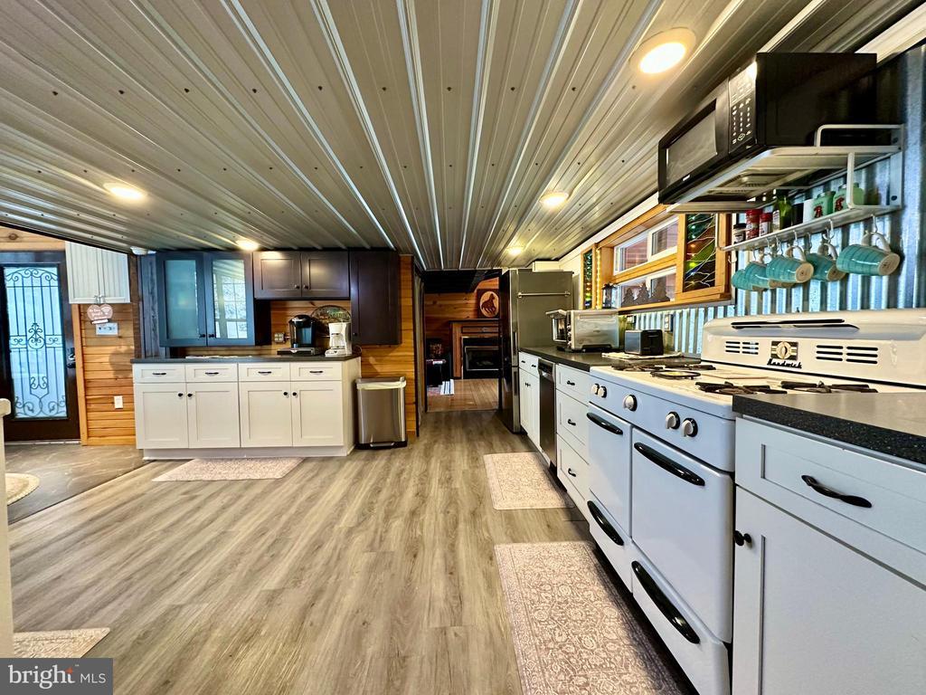 PREPARE TO BE CHARMED! This thoughtfully designed Cottage-style home is exceptionally detailed with many charming features and offers a living room with wood floors and walls, a gas fireplace and has a cathedral ceiling -open to the loft above. The kitchen has loads of counter space and cabinets and stylishly decorated yet retains the original charm with a retro kitchen sink and gas range. Open to the dining area which has a wall of windows and beautiful views of the lush greenery. There is a spacious family room with wood floors, wood walls, tin ceiling, and many unique finishing touches which are one of a kind. Upstairs the charm continues. The loft is beautifully detailed and features wooden walls and ceiling and a unique wrought iron banister, 2 nice-sized bedrooms and a full bath. You'll enjoy spending time on the spacious and low maintenance deck and enjoy the sounds of the stream which travels along a rustic stone wall. Want more privacy? Relax is the shade of the covered rear patio with metal ceiling and cool ceiling fans. You're surrounded by the greenery of your 5 Acre lot! There is an over-sized 2 car garage with full 2nd floor. A perfect workshop or could be a great game-room for when your friends and family gather. This unique property is located just a quick walk from the public boat launch in Long Level where you can enjoy boating, kayaking, hiking and abundant wildlife. It is fully equipped for year round, full time living or makes and excellent 2nd home. A great getaway without the long drive.