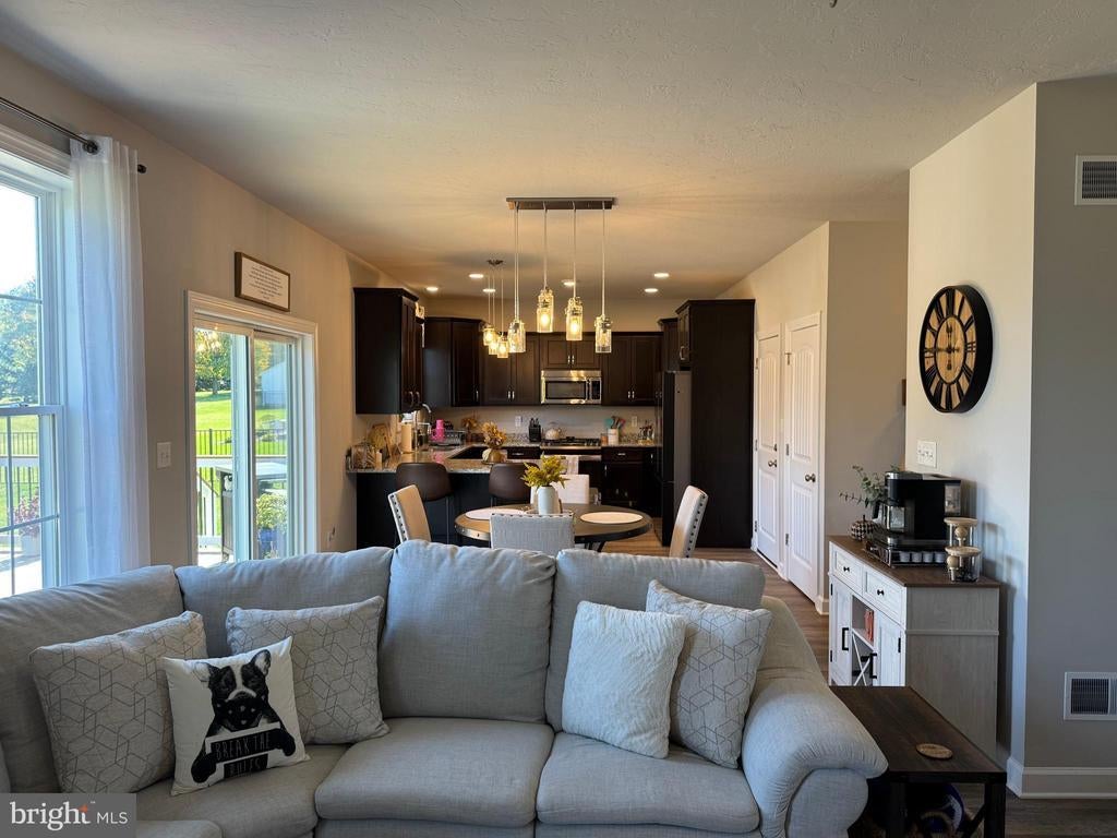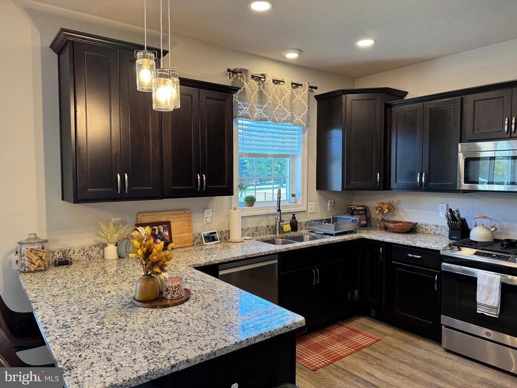 This home is absolutely stunning — a perfect blend of beauty, comfort, and modern living. From the moment you arrive, it’s clear that the property has been impeccably maintained and cared for. The exterior is crisp and inviting, surrounded by a lush, level lawn and a fully fenced backyard that’s ideal for kids, pets, or entertaining. Inside, the home feels bright and airy thanks to an abundance of natural light pouring through large windows that showcase the open floor plan. Every room feels fresh, spotless, and thoughtfully designed. The kitchen is a showpiece — featuring gleaming countertops, a spacious island, and high-end, like-new stainless steel appliances that make cooking a joy. The open layout seamlessly connects the kitchen, dining, and living spaces, creating a perfect environment for both everyday living and hosting guests. Step out back to a beautiful composite deck that overlooks the private, level backyard. Beyond the fence, the view stretches to peaceful trees and open farmland, offering a sense of space and tranquility that’s hard to find. Located in a highly desirable neighborhood with a strong sense of community, it is an exceptional choice for families. In every detail, this home feels fresh, elegant, and ready to be loved — truly immaculate inside and out.
