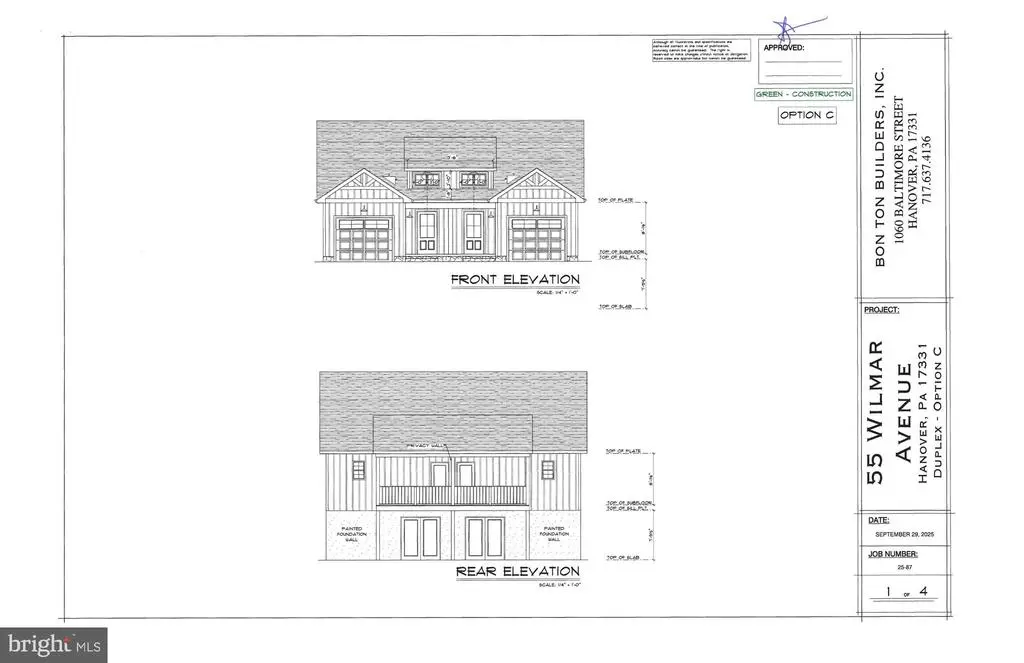 Welcome to 55 Wilmar Ave., Hanover Pa! Discover the charm and spaciousness of this beautiful 1/2 Duplex offering a generous 1,770 finished square feet of living space. With 3 bedrooms, 2.5 bathrooms, and a 1-car garage, this to be built home seamlessly blends comfort and style. Step inside the expansive foyer where you're greeted by a convenient half bath. Continue into the heart of the home: a stunning open-concept dining area, kitchen, and family room. This entire space is elevated by gorgeous exposed beams that add a touch of rustic elegance. The kitchen is a chef's dream, featuring an island for prep and seating, a separate pantry, and a first-floor laundry room for ultimate convenience. The open, large family room boasts impressive cathedral ceilings and more beams, centered around a cozy, maintenance-free fireplace—perfect for relaxing evenings. The primary bedroom is also conveniently located on the first floor, offering privacy and easy living. It includes direct access to the primary bath and a spacious walk-in closet. From the family room, step out onto a beautiful covered deck, ideal for enjoying your morning coffee or evening cocktails. Downstairs, you'll find two additional bedrooms and a full bath. The lower level also features an optional rec room that offers flexible space, which leads directly out to a lovely outside patio—a fantastic spot for entertaining guests! Don't miss the opportunity to make this exquisite duplex your new home!