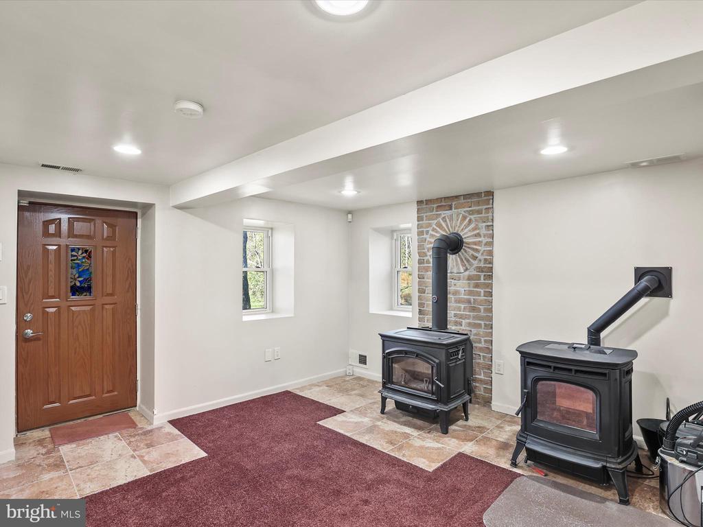 Soaking Tub, Stall Shower, Carpet, Entry Lvl BR, Master Bath(s), Stove - Pellet, Wd Stove Insrt, Walk-in Closet(s), Wood Floors