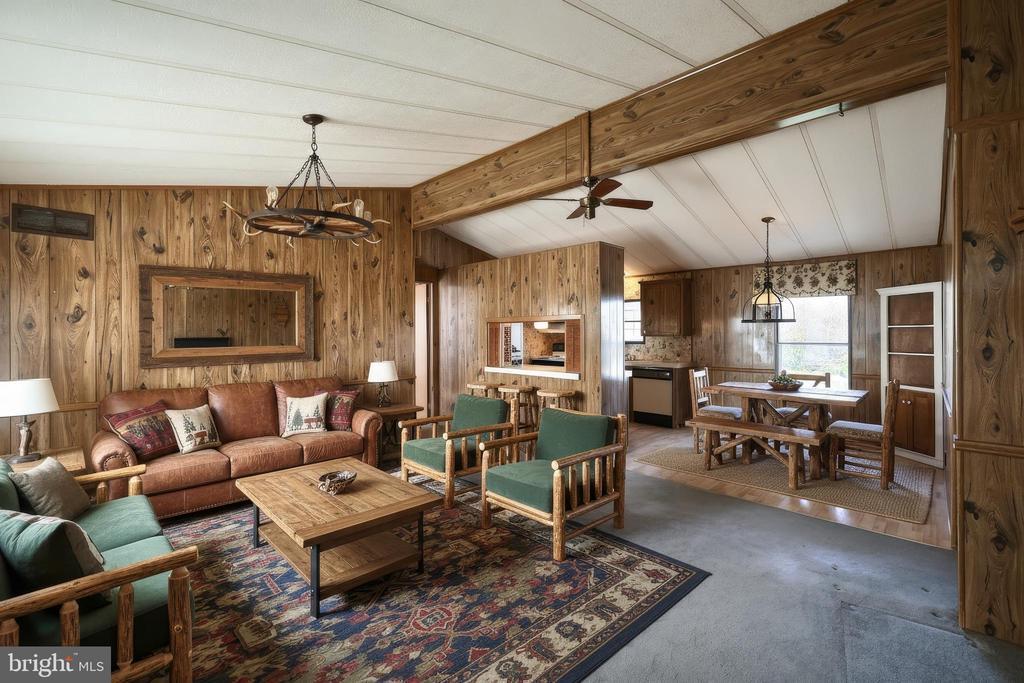Spacious double-wide home on a peaceful .69-acre lot near Seven Valleys! This home offers comfortable one-floor living with vaulted ceilings in the living room, dining area, and kitchen. The main level includes 2 bedrooms plus a primary suite with a private bath and convenient laundry area. Enjoy outdoor living on the covered deck overlooking the property or on the lower-level patio. The finished lower level features a family room, craft area, and a full shower bath—perfect for hobbies or guests. Ample storage and parking with a one-car garage and workshop under the home, plus a detached two-car garage with electric opener. Home needs some TLC inside and out but offers great potential in a beautiful country setting!