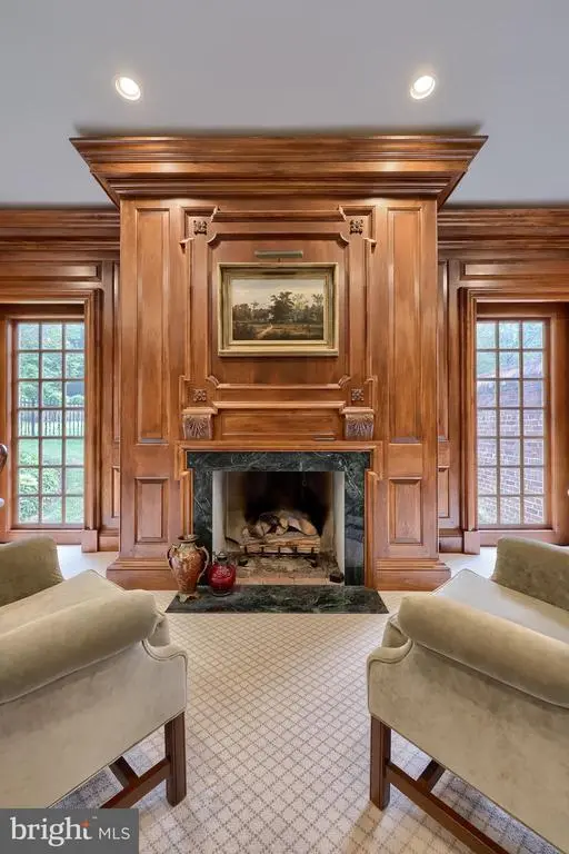 Welcome to an exceptional opportunity to own one of the most distinguished residences in the Wyndham Hills community. Every detail of this exquisite home has been thoughtfully designed and meticulously crafted, blending classic architectural refinement with modern functionality. Set on beautifully landscaped grounds, the home’s stately exterior is enhanced by brick walkways, lush gardens, a gently flowing brook, and a picturesque pedestrian bridge featuring an elegant widow’s walk atop the roof. Additional architectural highlights include handcrafted moldings, and stone lintels over the windows. Upon entering, the grand two-story foyer immediately sets the tone with detailed millwork and architectural sophistication. The formal living room exudes warmth and elegance with its floor-to-ceiling raised paneling, gas fireplace, wainscoting, dentil crown molding, and custom full-length window treatments. Designed for both work and leisure, the home features a spacious office with custom built-in cabinetry and a bay window, as well as a richly paneled den with an inviting fireplace and sweeping views of the gardens through oversized windows, perfect for quiet moments or gracious entertaining. The formal dining room is ideal for gatherings both intimate and grand, boasting intricate moldings, a gas fireplace, a solid brass chandelier, and built-in cabinetry. Throughout the home, hand-blown glass windows flood each room with natural light, while dark-stained Southern Yellow Pine flooring lends warmth and historic charm. The heart of the home is the thoughtfully renovated kitchen, a true chef’s delight outfitted with custom cabinetry, top-of-the-line Sub-Zero, Thermador, and Bosch appliances, Brizo fixtures, and a charming breakfast area with bay window views of the rear patio and gardens. A custom walnut desk and pantry add both function and beauty to this inviting space. From here, a rear staircase leads to a private suite complete with a fireplace, full bath, and sitting area, ideal for guests or a private retreat. Additional main-level features include a mudroom with brick flooring, a charming powder room, and a flexible room that could serve as an additional bedroom or office. The second floor offers three generously sized bedrooms, each with walk-in closets, built-in cabinetry, and hardwood flooring. A spacious hall bath with double vanities and marble countertops serves these rooms. The luxurious primary suite is a true sanctuary, featuring floor-to-ceiling paneling, a gas fireplace, a beautifully appointed bath with oversized walk-in shower and custom cabinetry, and a dressing room with solid cherry built-ins. A dedicated laundry room, exercise room, and walk-in storage closet complete the upper level. Outside, a covered walkway leads to the detached, all-brick, oversized three-car garage. This two-story structure features a private guest suite, currently used as an entertainment space. Complete with kitchenette, full bath, and flexible living/sleeping areas. Set on breathtaking grounds, the property also includes an all-brick gardening building, perfect for hobbyists or outdoor entertaining. This exceptional residence is a rare offering that combines timeless design, luxurious finishes, and a setting of unmatched beauty. Don’t miss the opportunity to experience this remarkable home, schedule your private tour today.