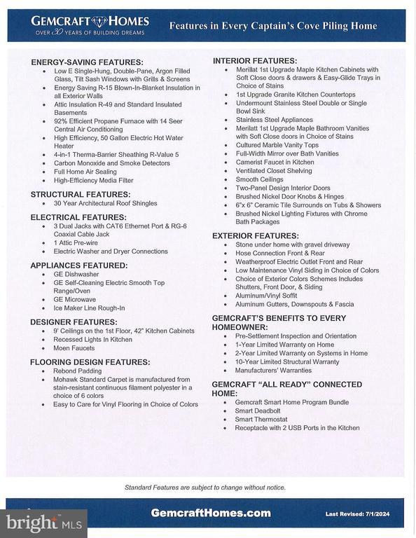 Move-In Ready - Inlet ll B Model offered by Gemcraft Homes New Construction CC LLC. Two Story Piling home 4BR/3BA 1792 sq ft,w/ 32x10 decks. Main Level features Owners Suite w/Tray ceiling and large owners bath with double bowl sink, shower and walk-in closet & 2 additional BR's & laundry area. Second floor boosts a spacious great room with 60" electric allusion fireplace, open kitchen with center kitchen island, granite counter tops, SS appliances, large pantry along and a 4th BR and full BA to completes the second level. New Bulkhead approx 32'. Builder Incentives...call for your private showing today! Pictures may have upgraded features. Captains Cove Golf & Waterfront Community amenities offer: 9 Hole Pristine Golf Course, 3 Pools (2 Outdoor/1 Indoor), Fitness Center, & more. Pictures may have upgraded features. Captains Cove Golf & Waterfront Community amenities offer: 9 Hole Pristine Golf Course, 3 Pools (2 Outdoor/1 Indoor), Fitness Center, Boat Ramp, Basketball & Pickle-Ball Courts, Walking & Biking Trails, Dog Park, Security and more. Call for more information.