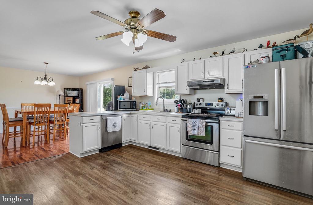 Welcome to your dream home nestled in the highly sought-after Captains Cove community, where coastal charm meets modern elegance. This captivating 3-bedroom, 2.5-bathroom Cape Cod-style residence promises comfort and sophistication across its thoughtfully designed floor plan. The spacious living room, adorned with chic LVP floors, provides the perfect setting for relaxation and entertainment. Adjacent, a dining area flows effortlessly into a well-appointed kitchen, featuring a convenient breakfast bar that seamlessly integrates with the living room. Equipped with sleek stainless appliances and two pantry closets, this kitchen is a culinary enthusiast's delight. Tucked away on the first floor, the primary bedroom offers serene privacy, boasting an ensuite bathroom with a luxurious soaking tub and a walk-in shower—a perfect retreat after a long day. A mud room/laundry room and a handy half-bath complete the main level's functional layout. Venture upstairs to discover two generously sized bedrooms, offering ample space and versatility. A full bathroom with elegant tile floors and a stunning Palladium window invites natural light, creating an ambiance of tranquility. Step outside to enjoy the expansive rear deck and inviting patio, ideal for alfresco dining and entertaining under the stars. A large shed provides excellent storage solutions for all your outdoor essentials and hobbies. This exceptional home harmonizes timeless style with contemporary comforts, ensuring a lifestyle of convenience and leisure in a vibrant and friendly community. Don't miss your opportunity to own this captivating Cape Cod gem. Septic drainfield was replaced in 2024