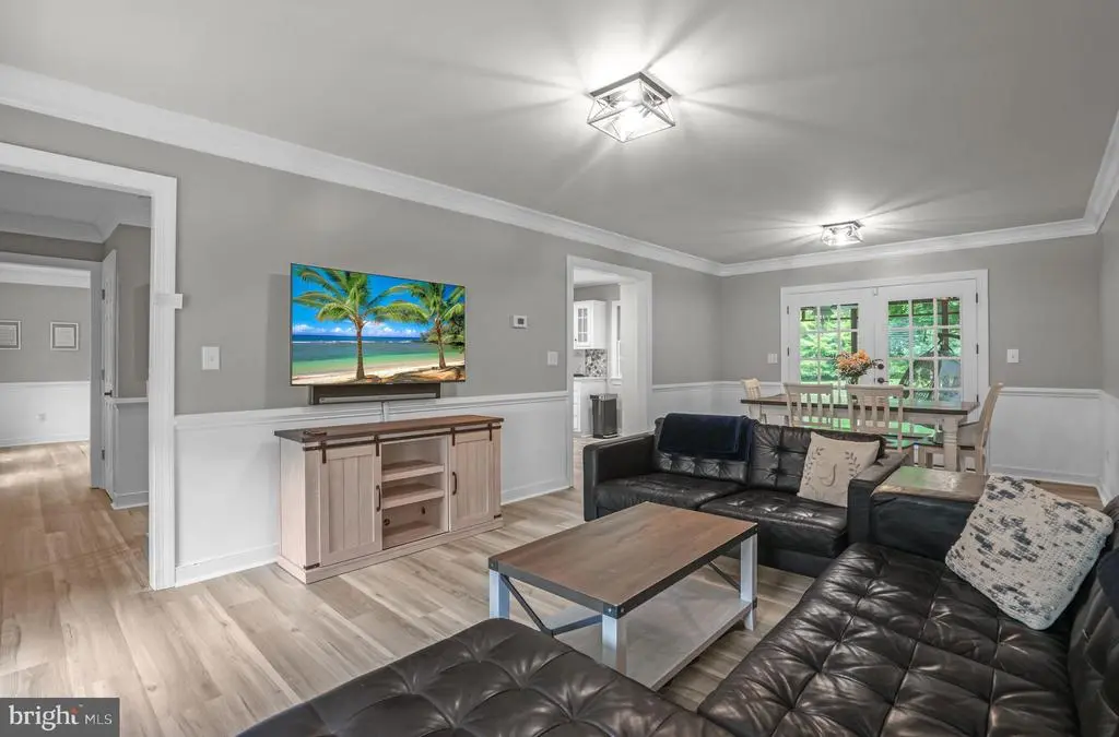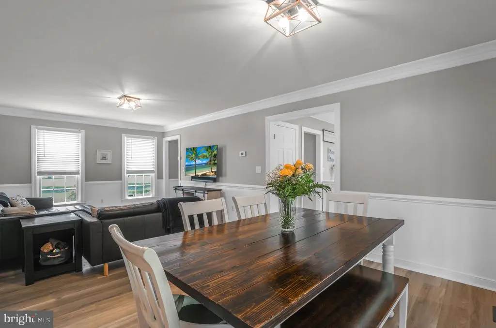 Discover your dream home nestled in serene surroundings just minutes from Wallops Nasa Facility, Chincoteague Island, and Route 13. This elegant 3-bedroom, 2 1/2-bathroom colonial style home sits on a sprawling 3-acre property and offers a harmonious blend of comfort and sophistication. Step inside to find a spacious living room where luxury vinyl plank (LVP) flooring flows seamlessly throughout, creating a warm and inviting atmosphere. Adjacent is a formal dining room, perfect for hosting gatherings or enjoying intimate family meals. The kitchen boasts a modern design with a striking tile backsplash, slate black kitchen appliances, and ample workspace, complemented by a versatile open concept pantry/mudroom/laundry combination to keep everything organized. The home features a water filter system for pure, clean water throughout. Upstairs, the primary bedroom serves as a peaceful retreat, complete with a private bathroom. There are two additional bedrooms, ideal for family or guests, and a full bathroom. An office space is also included, catering to all your work-from-home needs. Crown molding throughout the home adds a refined architectural touch. Relax on the screened-in porch or bask in outdoor leisure on the beautiful 24x20 backyard brick patio. A playground area provides fun, while additional storage is provided by a large shed on the property. Adding to the allure is a 2-car garage with custom wood garage doors and a captivating bonus: a separate living space that's currently a successful vacation rental. This space features a full kitchen, full bathroom, and a large bedroom with a cozy sitting area, offering a perfect setup for guests or potential rental income. The home has a new roof installed in 2021 and an AC compressor replaced in 2024, ensuring peace of mind for years to come. The property offers a total of 2.96 acres with a 1.44-acre lot that would be perfect for a pole barn or horses. This exquisite property blends generous space, modern amenities, and a prime location, promising a lifestyle of comfort and convenience.