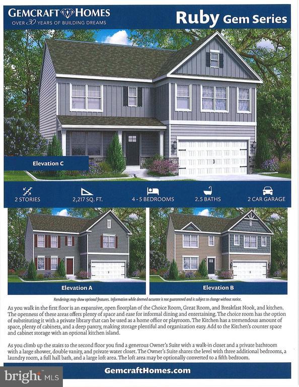 Ruby Model Elevation A offered by Offered by Gemcraft Homes New Construction. Two -Story single-family home, 4BR/2.5 BA, 2217 sq ft, 2-car garage. The openness of the first level offers plenty of space for entertaining for the whole family to enjoy. Large open kitchen layout w/plenty of cabinets, deep pantry, SS Appliances. Optional Library, Second level features Owners Suite w/large Walk-in Closet, 4 BR's. and Loft. Pictures may have upgraded features/options not included in base price. Home is "TO BE BUILT". Additional elevations and options are available to design your own customized home with all your personal touches. Call for mare information and your private showing. Captains Cove Golf & Waterfront Community amenities offer: 9 Hole Pristine Golf Course, 3 Pools (2 Outdoor/1 Indoor), Fitness Center, Boat Ramp, Basketball & Pickle-Ball Courts, Playground, Walking & Biking Trails, Picnic Area, Dog Park, Security and so much more. Captains Cove is located on Virginia's Eastern Shore and conveniently located close to major Metropolitan Areas along the East Coast. Within 3 Hours of Baltimore MD/Washington DC/Philadelphia PA, 5 hours from New York, 1 Hour from Ocean City MD, 2 hours from Virginia Beach/Norfolk/Hampton VA and only 20 minutes from the notorious Chincoteague Island VA.