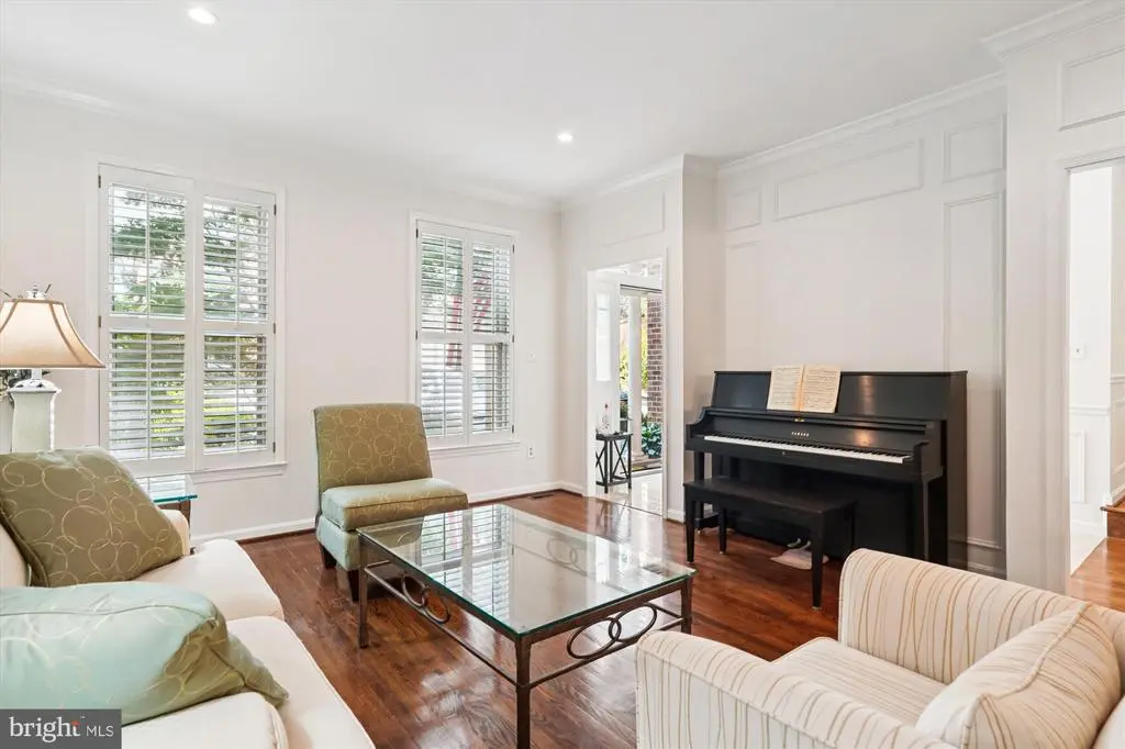 OPEN HOUSE - Sun, 11/16 from 1-4pm. You will love this magnificent brick interior townhouse in highly sought after Carriage Hill -- a small community of 13 homes in zip code 22207 North Arlington and only 1 mile to Chain Bridge. Thank you. Main Level. As you enter the foyer, with marble flooring, there is a large closet for guests' coats and powder room. The two-landings staircase to upper one set off the dramatic entry. The elegant living room to your right has just the perfect place for your piano and the almost floor-to-ceiling windows have custom plantation shutters. The framed doorway in living room leads to an elegant dining room. The well designed gourmet kitchen with island and eat-in area opens to a charming deck and serves as a great outdoor living space. The family room, adjacent to the kitchen, is highlighted by a wood burning fireplace with custom plantation shutters on almost floor-to-ceiling windows on each side of fireplace. Glowing hardwood floors on two levels. Just painted throughout with dove white paint, chair railing and crown molding too. Upper One. Primary bedroom suite has a spectacular walk-in closet and French doors to balcony. Bedrooms two and three are large sized. Two full baths and all hardwood flooring. Lower One. A recreation room with wet bar, wood burning fireplace and almost floor to ceiling windows on each side of fireplace which leads to a patio. Fourth bedroom, full bath and a large laundry/storage room. There are two assigned parking spaces, plenty of guest parking and sidewalks to walk your doggies. A beautiful gazebo, as you enter Carriage Hill, where the mailboxes are located. Top Arlington County Public Schools. This beautiful home is sited away from traffic noise and overlooks the quiet landscaping of the common area. The answer to your dreams. Thank you.