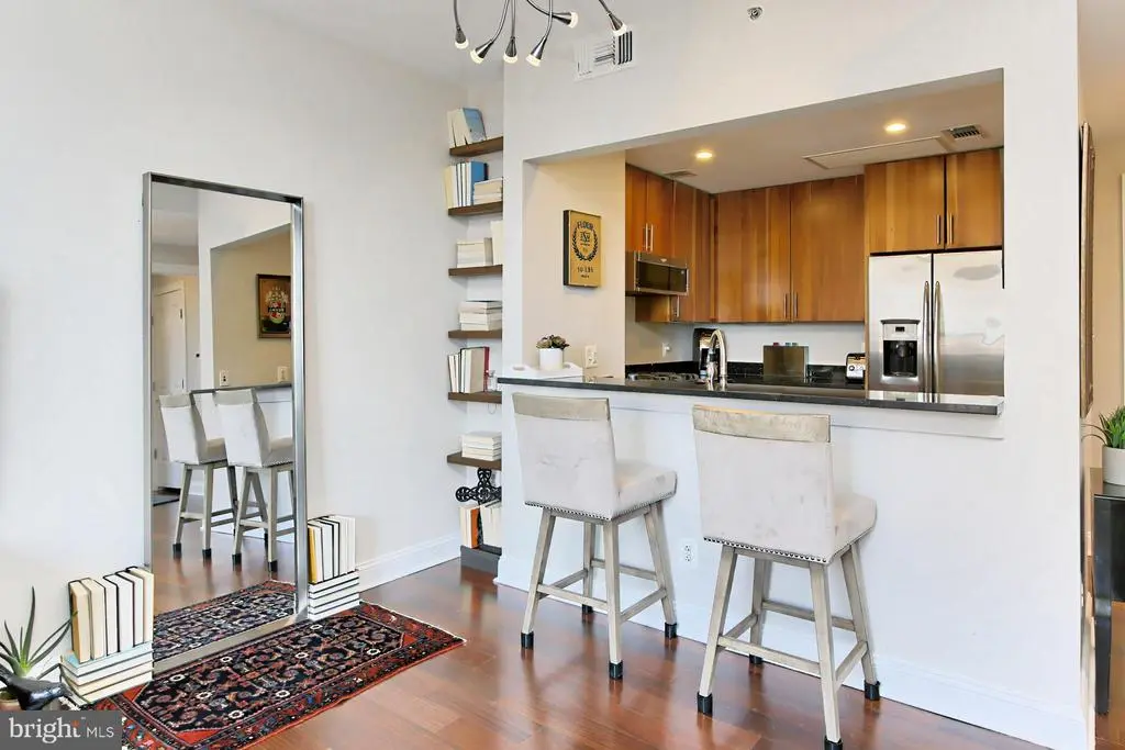 Sophisticated Urban Living in the Heart of Historic Old Town Welcome to your dream home in the sky—this beautifully appointed 1-bedroom, 1-bath condo on the 14th floor offers a perfect blend of modern luxury and unbeatable location. Step into a sun-drenched, open-concept living space featuring gleaming hardwood floors, fresh neutral paint throughout, and plush, upgraded carpet in the bedroom for ultimate comfort. The gourmet kitchen is a chef’s delight, outfitted with granite countertops, stainless steel appliances, and a convenient pass-through breakfast bar, making it perfect for both casual mornings and elegant entertaining. An in-unit, front-load washer and dryer add everyday ease to this stylish space. This boutique building includes a concierge, secure entry, and a reserved garage parking space (#76) with fob access. Enjoy the stunning rooftop terrace with panoramic views of the DC monuments and the iconic Masonic Temple—an ideal spot for relaxing or entertaining guests. Residents also have access to optional Westin Hotel amenities (available for a nominal fee), including a fitness center and free EV charging station (coordination required). Situated just one block from the pedestrian tunnel to King Street Metro and an easy stroll to both King Street-Old Town and Eisenhower Metro stations, this location truly can’t be beat. You're surrounded by vibrant city living—steps from charming Old Town’s restaurants, retail, Whole Foods, Wegmans, AMC Theaters, and the scenic Potomac River waterfront. Ride the free trolley to the river, or take a water taxi to Georgetown, National Harbor, Nationals Stadium, or Audi Field. Condo fee includes: Gas, sewer, trash & recycling, building insurance, common area maintenance, professional management, concierge services, and custodial maintenance. Residents pay for individually metered electricity and water. Only minutes from Amazon’s HQ2, Reagan National Airport, the Pentagon, and downtown D.C., this stunning condo is the perfect combination of comfort, style, and convenience. Whether you’re looking for a tranquil retreat or an exciting city lifestyle—this is the place to call home. Don't miss your opportunity to own this exceptional residence in one of Alexandria’s most sought-after neighborhoods. Welcome to life at The Jamieson. Welcome home