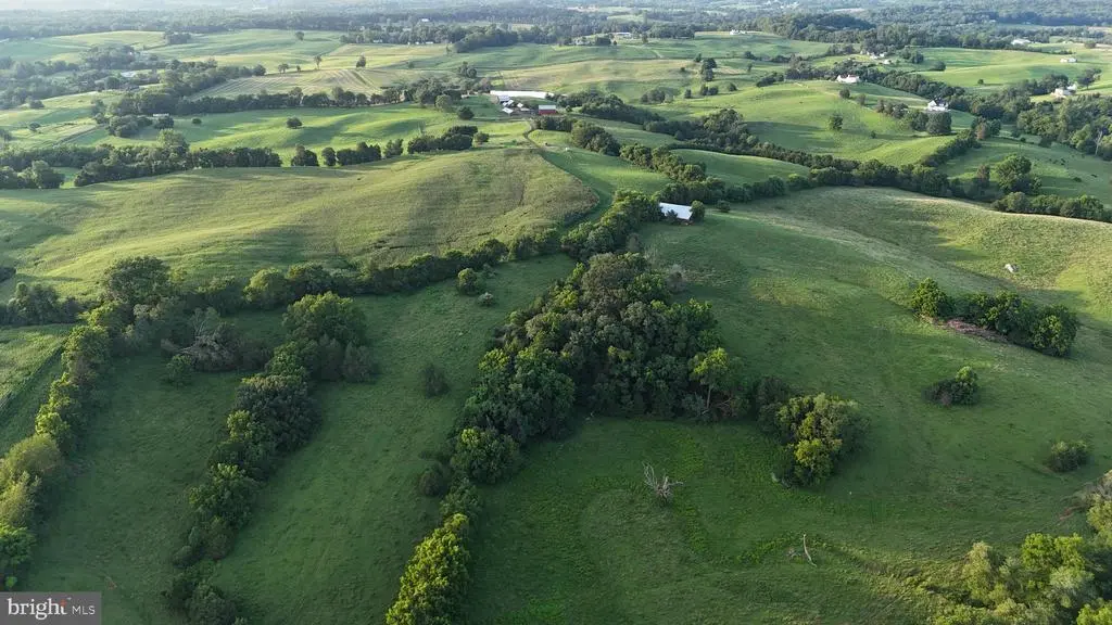 An incredible investment opportunity, Spring Hill Farm has nearly 300 acres of pasture, woodlands, and crop land interspersed with streams, a pond, and a scenic bold run (Muddy Run) that traverses the back of the property. The land has been carefully maintained over the centuries and it is one of the few remaining larger tracts in the neighborhood of upscale large lot homes. While there is significant development potential in the farm given recent growth in the area, there is also an opportunity for a substantial conservation easement on this larger intact tract. The current agricultural operation is easily continued as a family farm, converted to an equestrian center, or developed as a vineyard/winery. There are a number of stunning building sites to take advantage of the pastoral beauty of the landscape and the Blue Ridge mountains in the distance. The recently renovated farmhouse is in move-in condition, and can easily be rented out, but it also affords an opportunity for expansion into a substantial manor house. Whatever your goals, Spring Hill Farm offers a diverse array of options for future use. Built in 1837, the farmhouse has been added on to over the years – most significantly in 1950 and then again in 1994. Today the indigo farmhouse with a red roof has been updated with new clapboard and other trim repairs as well as a new HVAC system upstairs and a new expanded upstairs bath. The rooms reflect the expansion over the centuries, but all are well proportioned and easily accessible. A large (attached) three car garage has an unfinished upper level that can be easily converted into an apartment or office space. The current configuration of the main house is three bedrooms but a fourth bedroom is easily arranged from the office/study rooms on the upper level. The house has a mix of older wavy glass and modern double paned windows. The cellar features old stone walls that have been partially plastered. The water source for the house is an underground spring that provides a good supply of water. An additional 40 gallons per minute well is located elsewhere on the farm. There are a variety of outbuildings on the farm. Most are clustered together within walking distance from the house. These buildings, with the exception of the log cabin, are all stable and usable. However, only one is equipped with electricity. They include a three bay ‘carriage’ shed by the house suitable for lawn mowing equipment. A red barn with a stone foundation is used for storage and home for barn cats. A corn crib barn is nearby. A log cabin frame is situated next to the corn crib. The machine shed barn is a large structure with seven bays for storing tractors and farm equipment. The larger red barn has a concrete floor and has electric service. It has a series of smaller rooms used for a workshop and storage. A large 60 x 75 hay barn is located some distance away and can service as hay storage and bunk feeding for cattle. The 298 acres of Spring Hill Farm are divided between 77 acres of crop land (currently planted in beans and corn) and 160 acres of fenced pasture/hayfield, and approximately 60 acres of woodlands. The woodlands are a mix of pine and hardwoods of limited timber value. The farm is currently tenanted with a farmer running a cow/calf operation and maintaining the crop lands. There are smaller fenced paddocks for working the cattle, but handling facilities are at a minimum. Fencing in pastures is a mixture of board fencing, high tensile wire and barbed wire. A large 1 acre spring-fed pond is stocked with fish and provides a water source for cropland irrigation if necessary. The farm is currently divided into three separate tax parcels, but further subdivision could be applied for with Culpeper County. Or, alternatively the farm could be protected with a conservation easement. There are numerous building sites throughout the farm that afford spectacular views while keeping farmland intact.